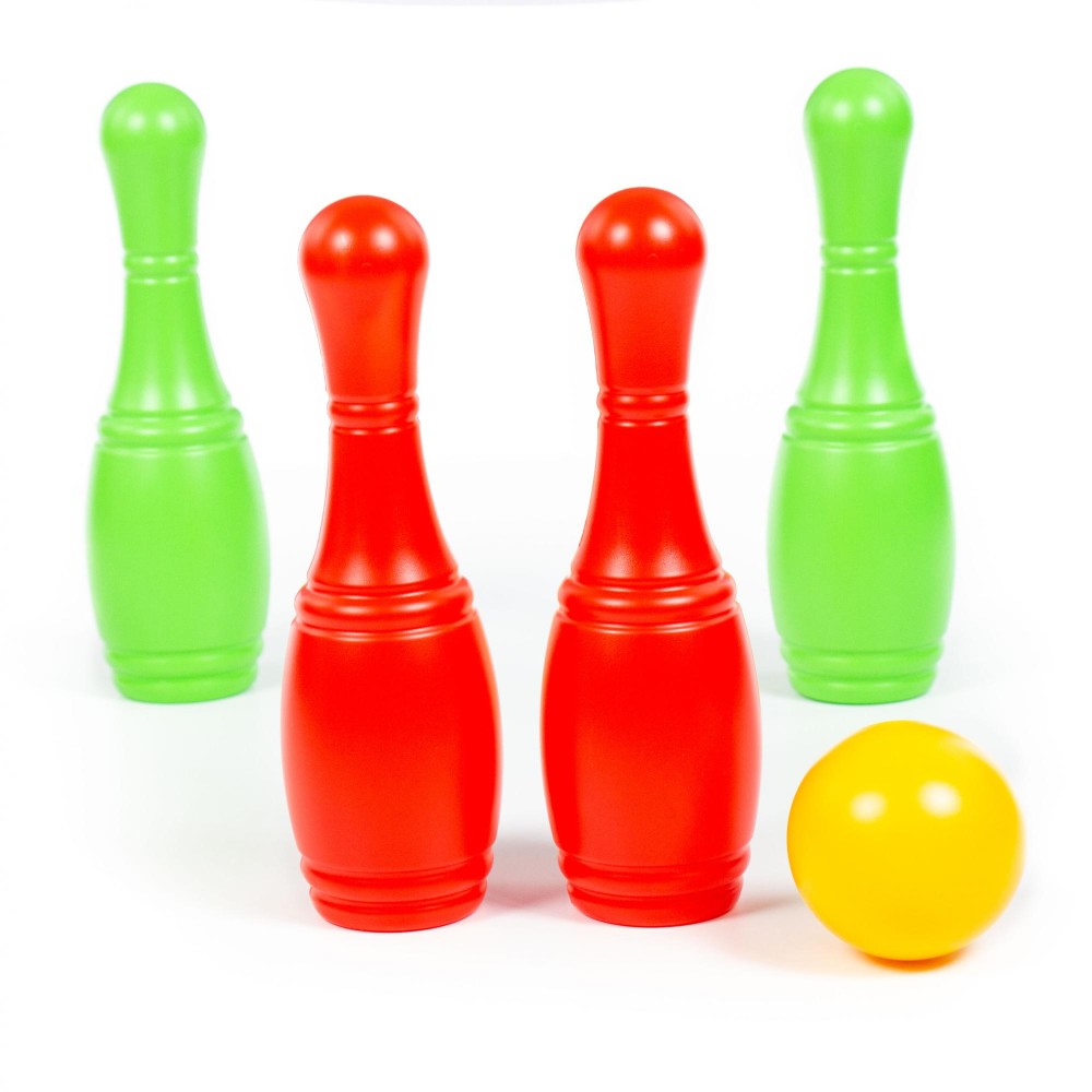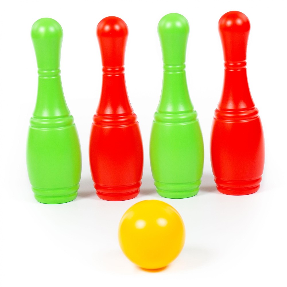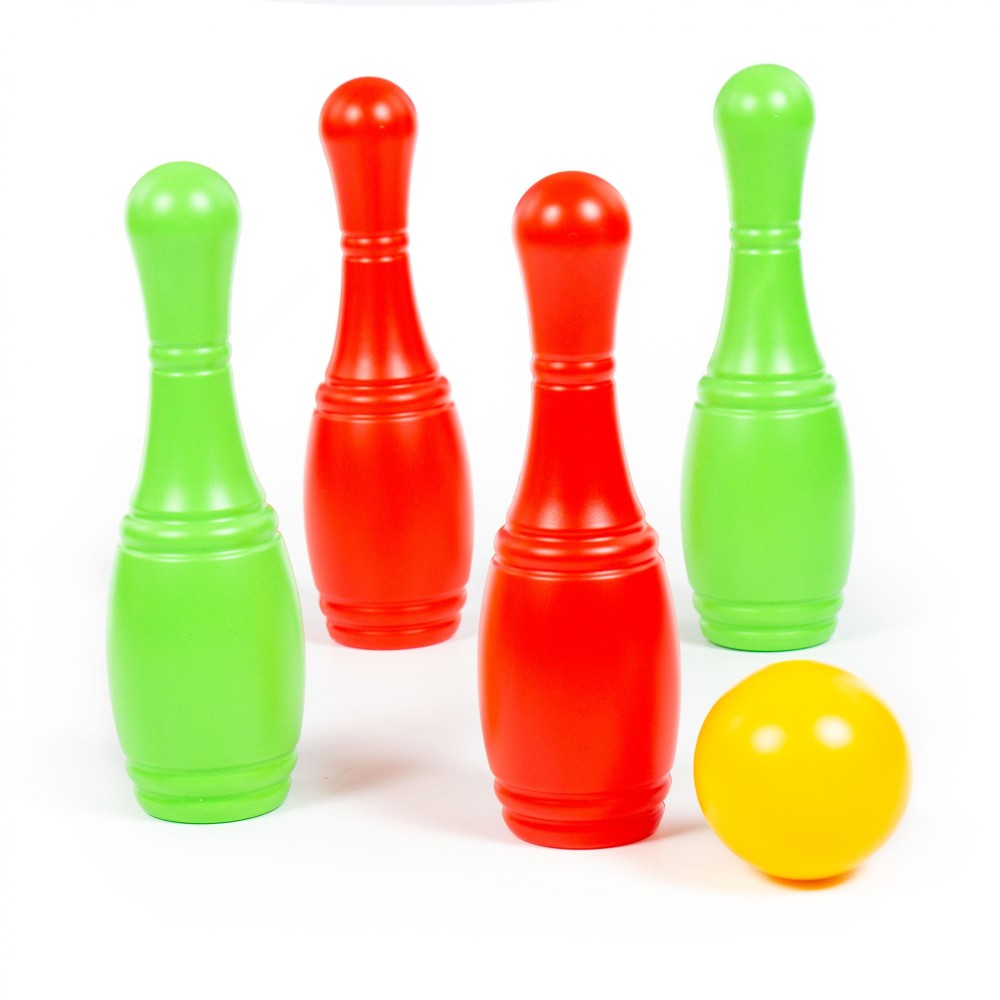 Боулинг — это занимательная активная спортивная игра для всей семьи, в которую можно играть как на улице, так и дома. Главными атрибутами данной игры являются шар и кегли. Фабрика «Полесье» представляет набор «Кегли, 4 штуки», который разнообразит летние дни и позволит провести весёлые семейные соревнования. Для повышения уровня сложности игры кегли можно выставлять в разной конфигурации. Боулинг способствует физическому развитию и координации движения детей. Групповая игра развивает социализацию ребенка и соревновательный дух. В комплекте 1 мяч.