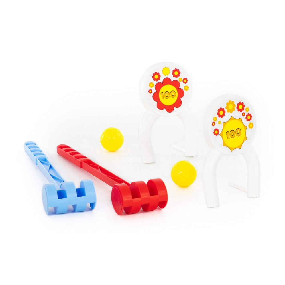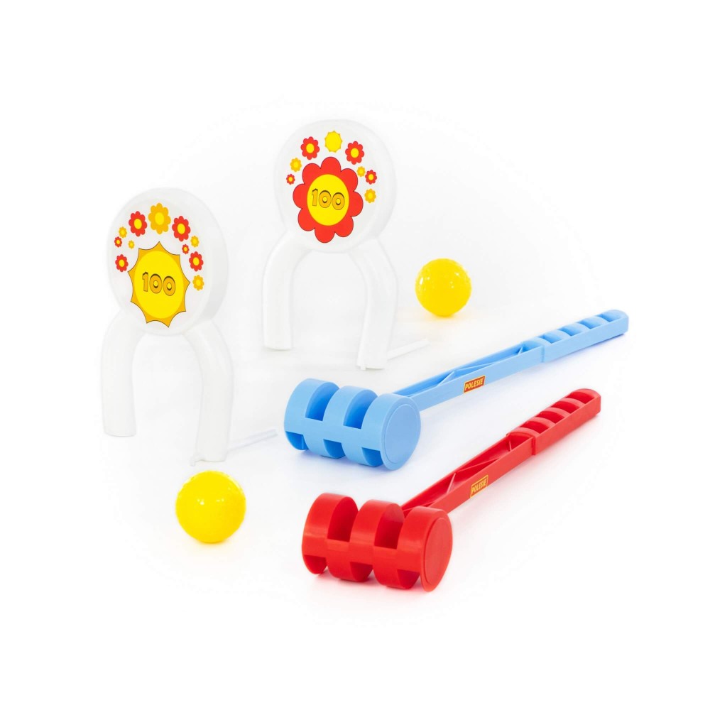Игровой набор «Крокет» позволит ребёнку чаще проводить время на свежем воздухе. В набор входят два молоточка, два мячика и ворота для крокета с изображением заработанных очков. Игра «Крокет» развивает координацию движений, меткость ребёнка, способствует улучшению его физической формы и прививает любовь к активным играм. Такие игрушки также помогают ребёнку развить умение играть в команде.