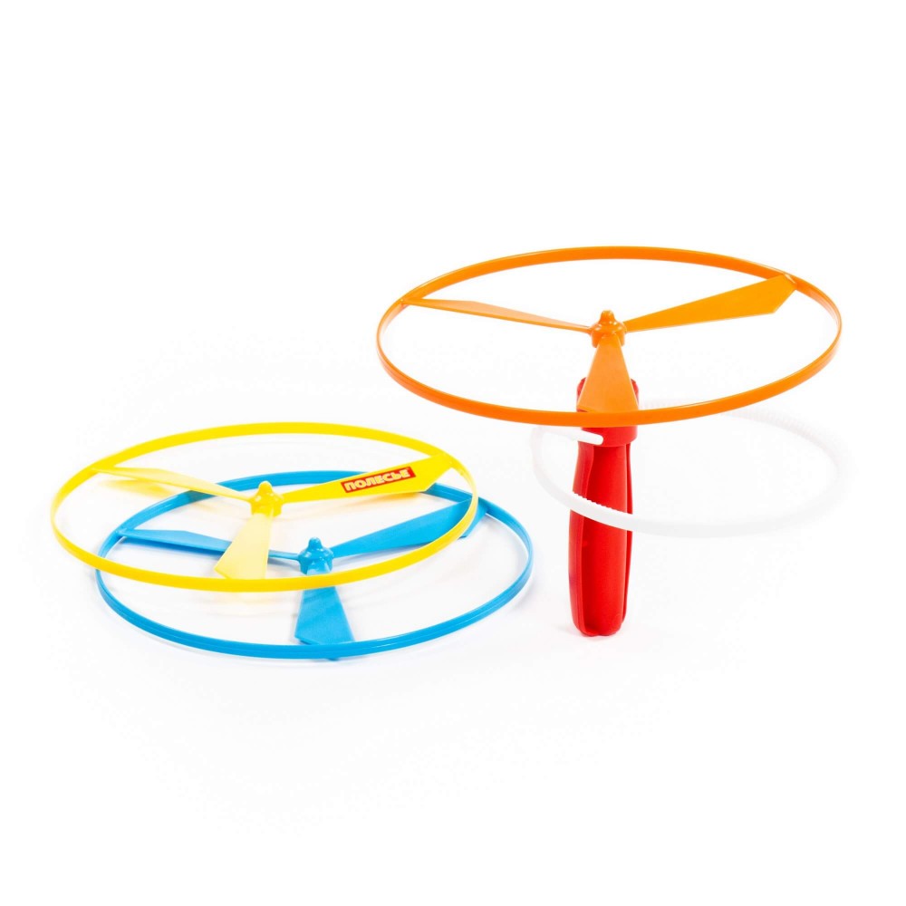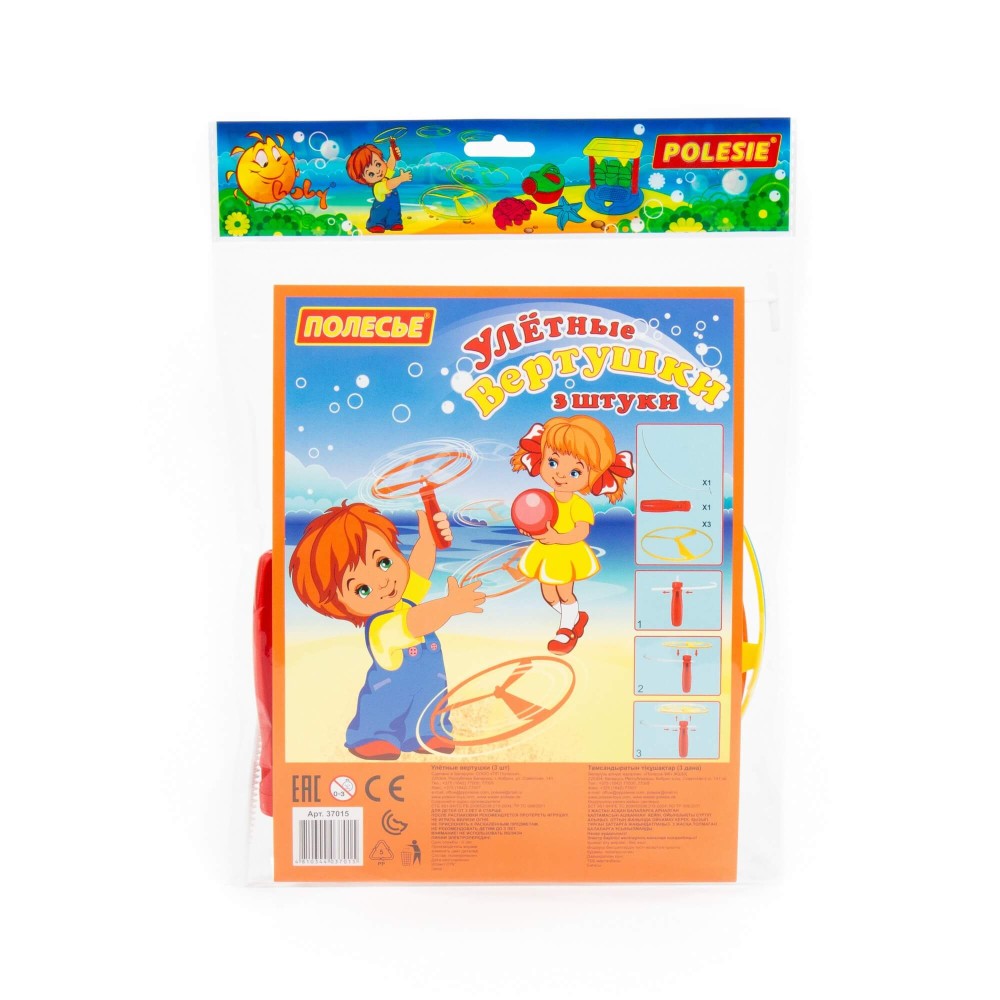 Ещё одной замечательной игрушкой для игры на свежем воздухе является «Улётная вертушка» от фабрики «Полесье». Конструкция вертушки предполагает наличие механизма, который запускает диск с лопастями в воздух. Механизм состоит из пластикового ремешка с зазубренной поверхностью, который вставляется в отверстие, расположенное в ручке вертушки. Резко потянув ремешок, вы запустите пусковой механизм. В комплекте идёт 3 игрушки. Игра с «Улётной вертушкой» разнообразит прогулку, позволит весело и активно провести время всей семьёй!