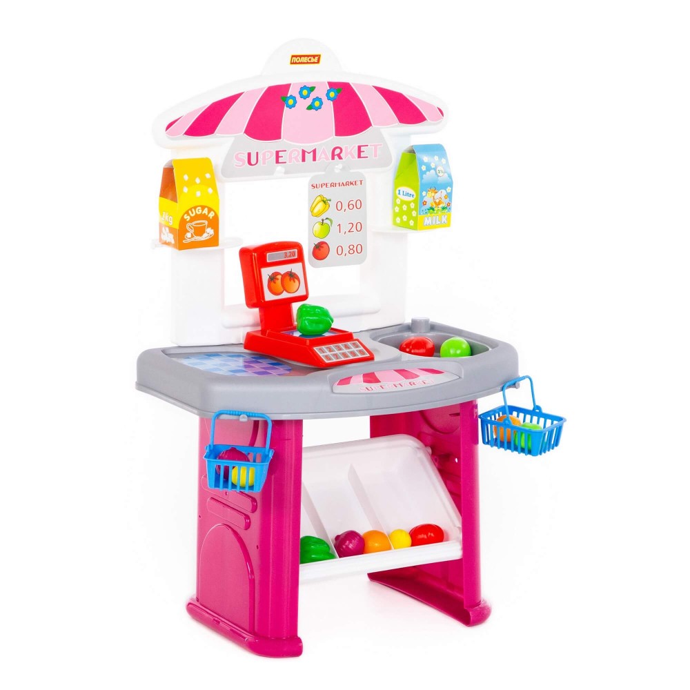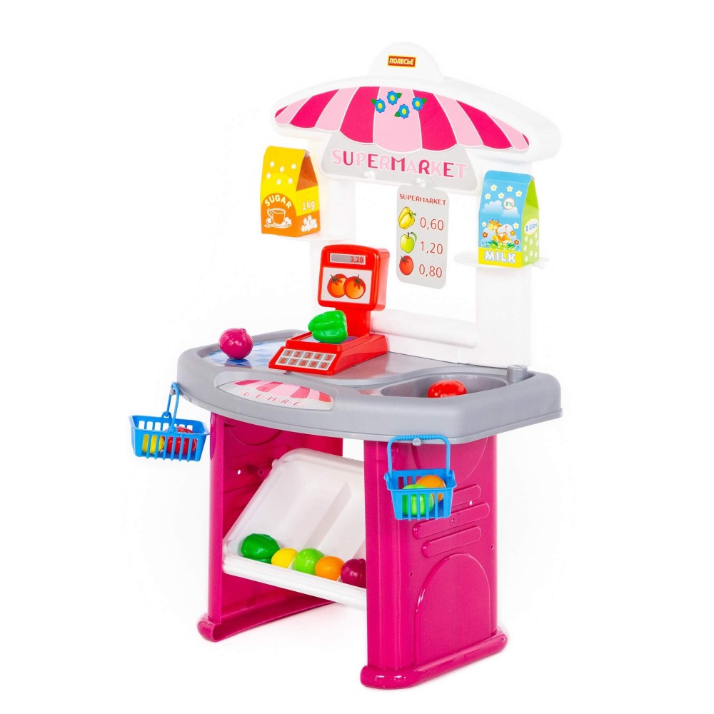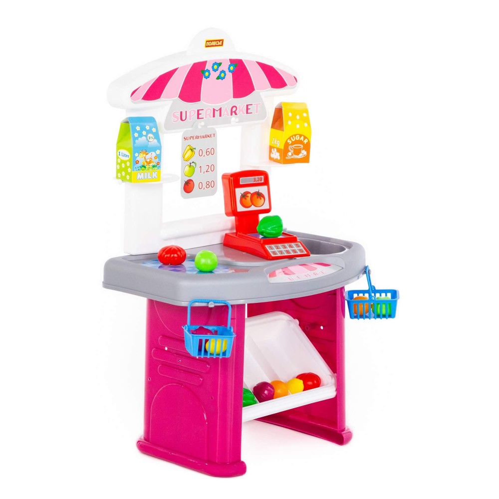 Продукты можно взвесить на весах и уложить в корзинку для покупок. Игра с набором "Супермаркет" научит ребёнка самостоятельно совершать покупки, разыгрывая роли продавца и покупателя; считать стоимость покупки и распределять бюджет.