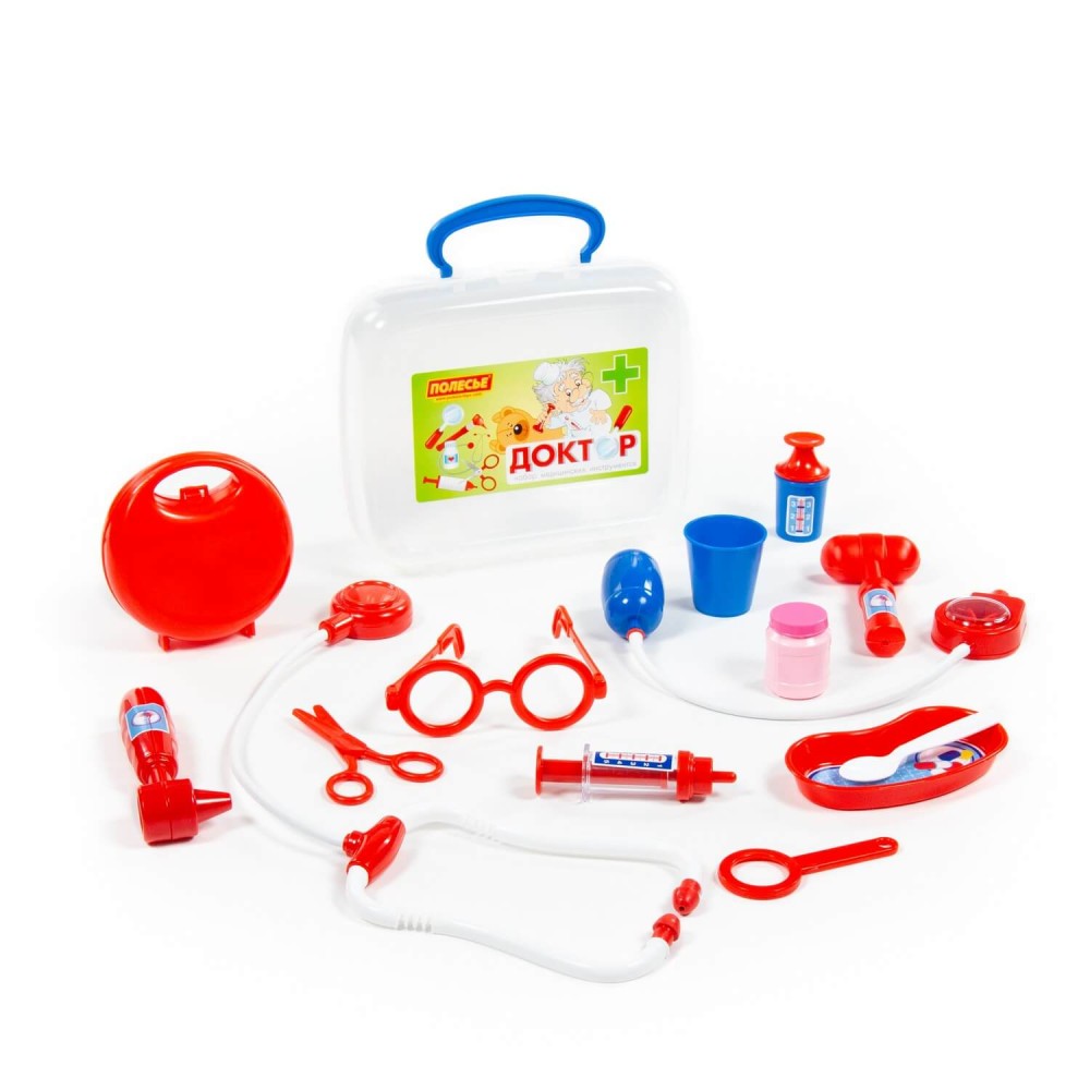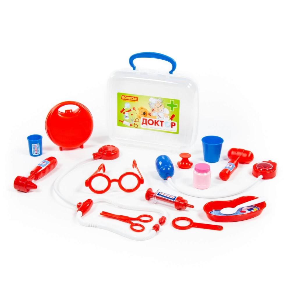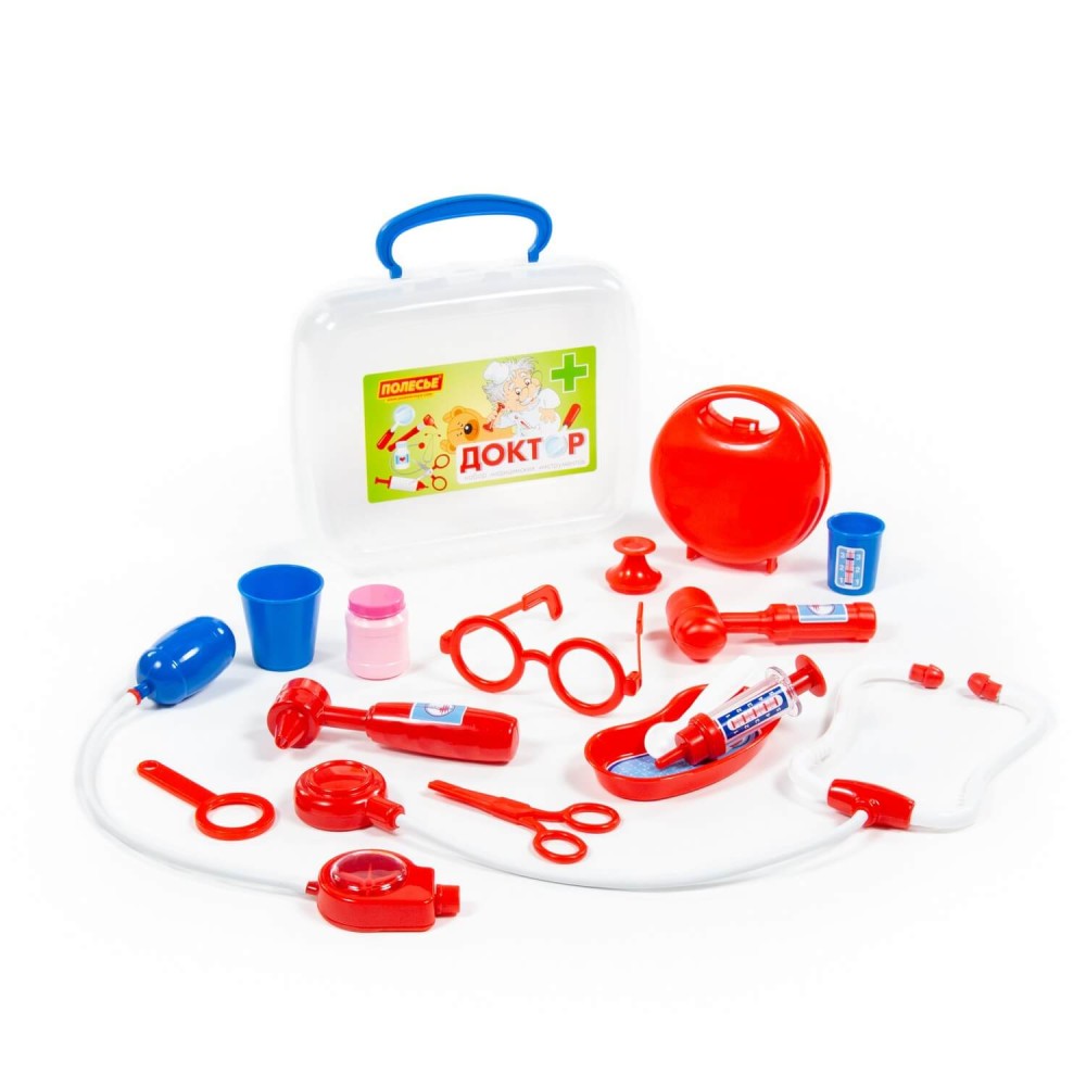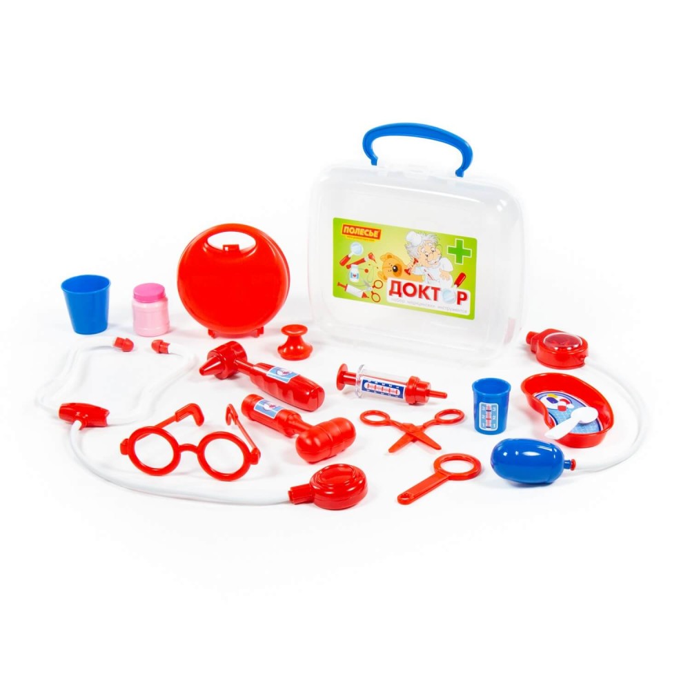 Игра «в доктора» станет ещё интереснее с набором от компании «Полесье». Малыш сможет быстро оказать помощь своим пациентам и, возможно, именно с этой игрушки у ребёнка проснётся интерес к профессии врача. В этом ему помогут игрушечные медицинские принадлежности в чемоданчике, которые удобно хранить и перемещать. В состав набора входят: