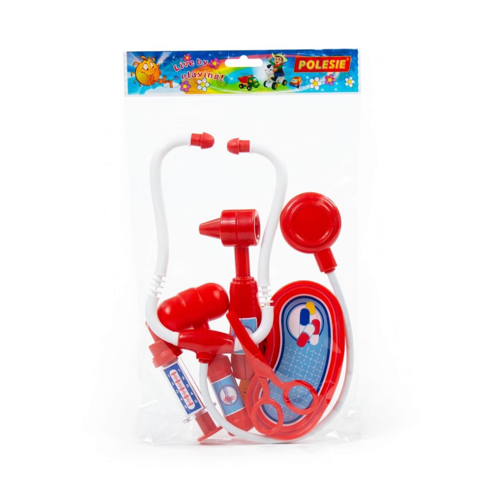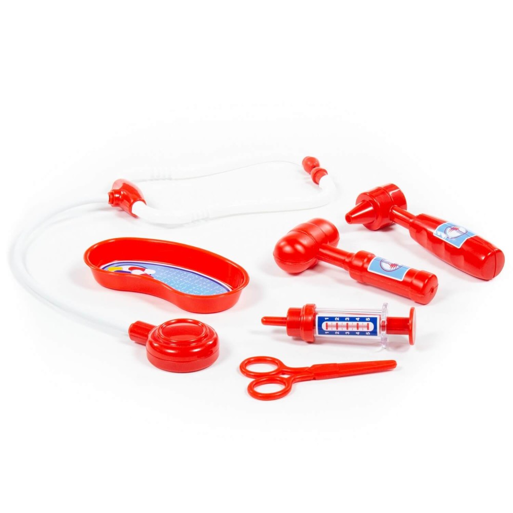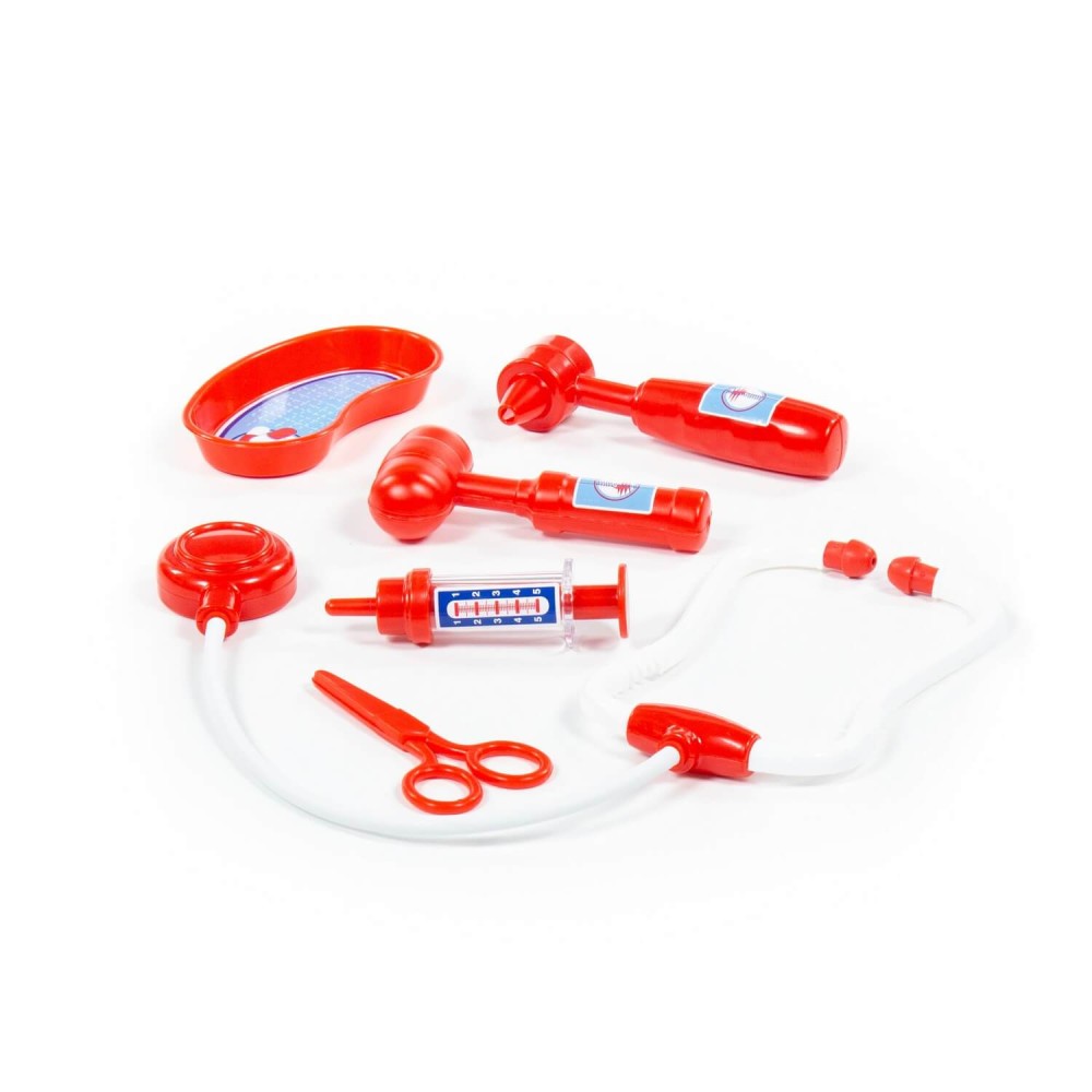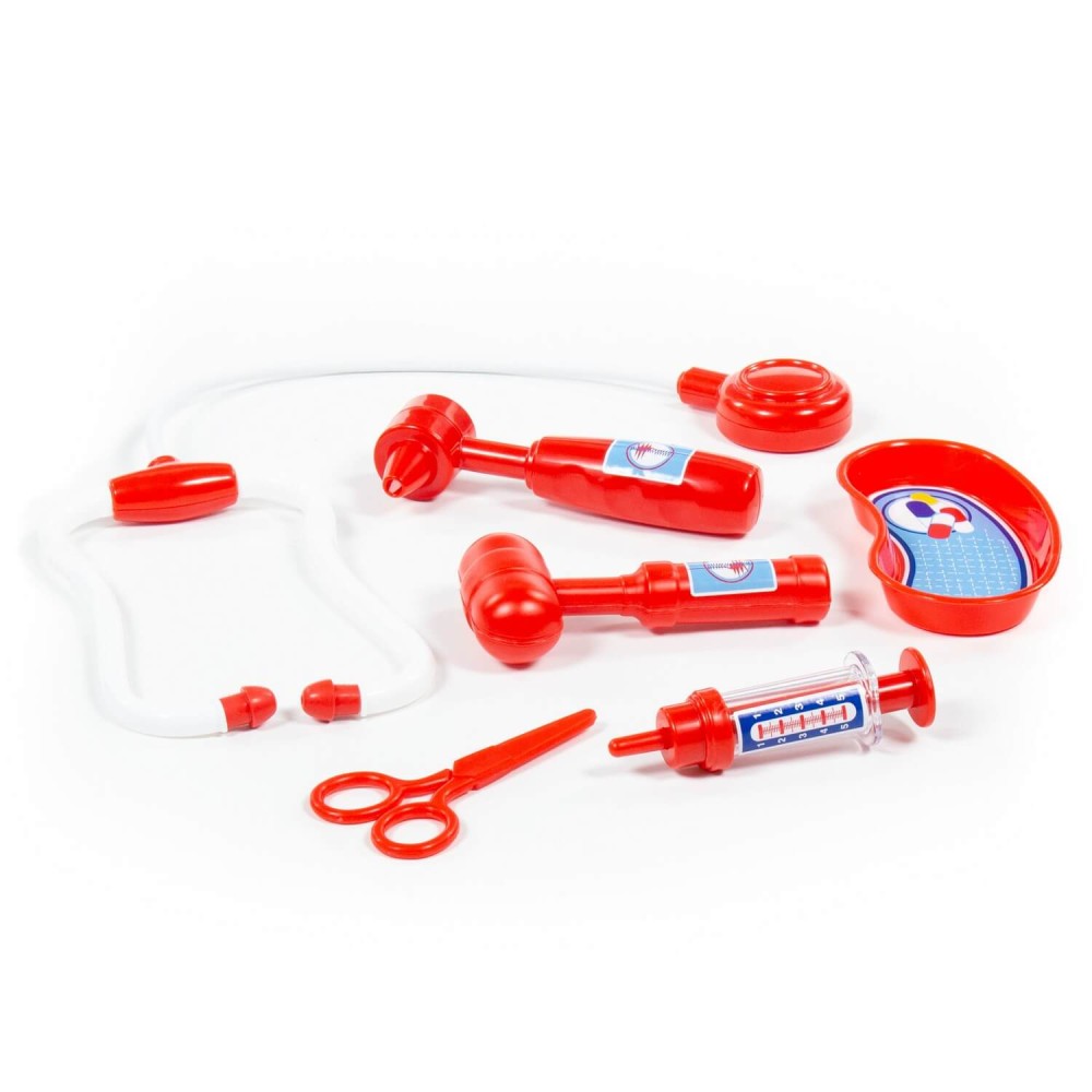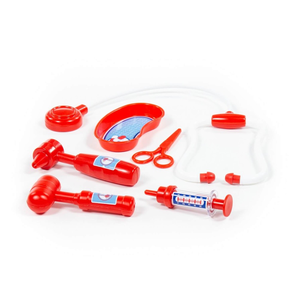 Игра «в доктора» станет ещё интереснее с набором от компании «Полесье». Малыш сможет быстро оказать помощь своим пациентам и, возможно, именно с этой игрушки у ребёнка проснётся интерес к профессии врача. В этом ему помогут игрушечные медицинские принадлежности. В комплект входят: