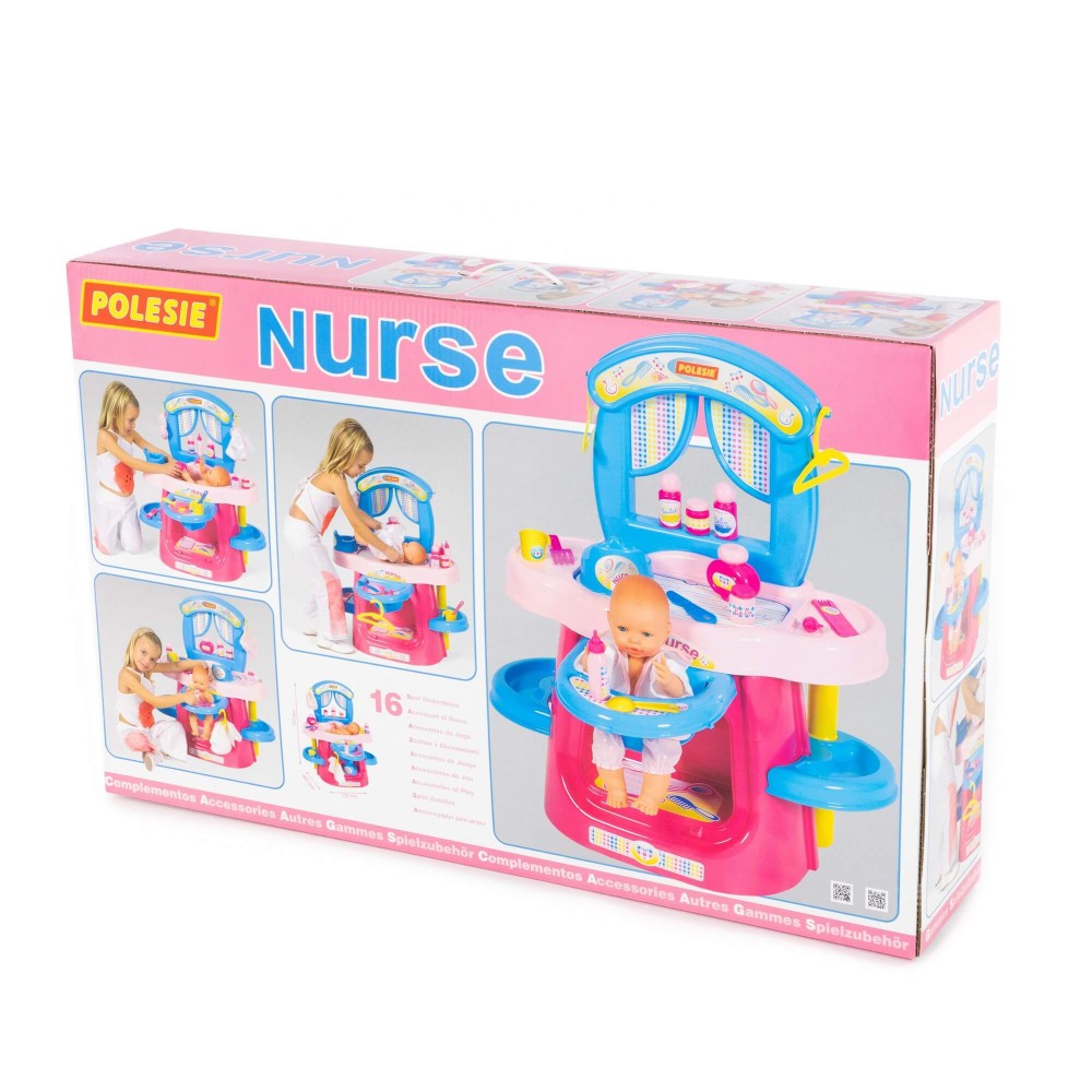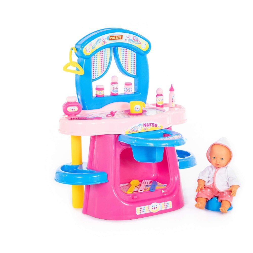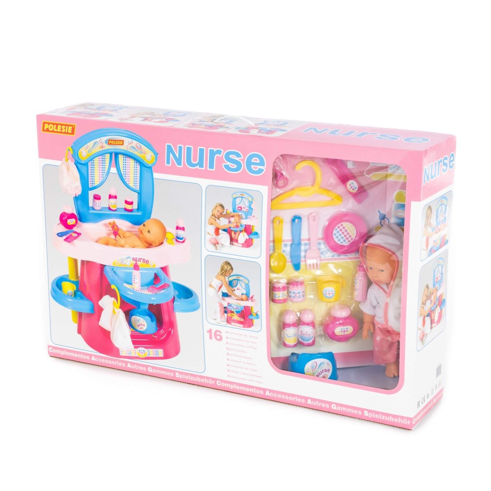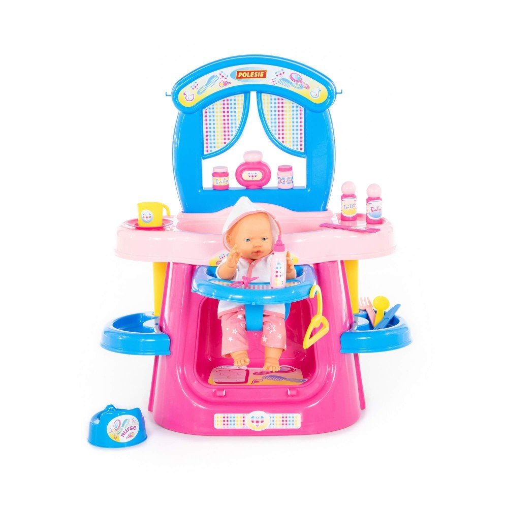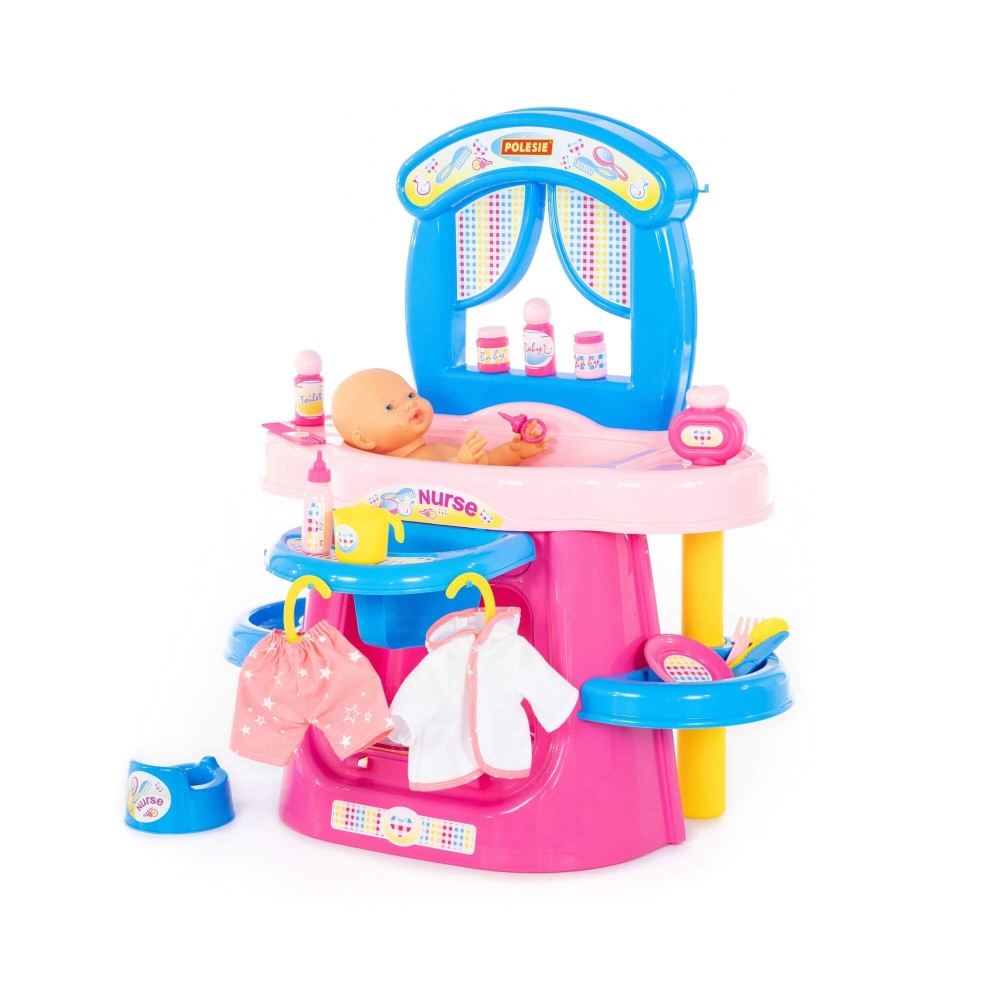 Сюжетно-ролевой игровой комплекс "Няня" предназначен для деток от 3 лет. Это увлекательный набор, который включает в себя принадлежности по уходу за пупсом. Пупс входит в комплект. На стойке расположен столик для кормления, ёмкость для купания пупса. Также вы найдете ночной горшок, соску, бутылочку для кормления, флакон для присыпки, баночку для шампуня, вешалки, блюдце, чашку, ложку, нож, вилку. Игра в "дочки-матери" прививает детям заботу о младших, чувство ответственности, развивает воображение и фантазию.
