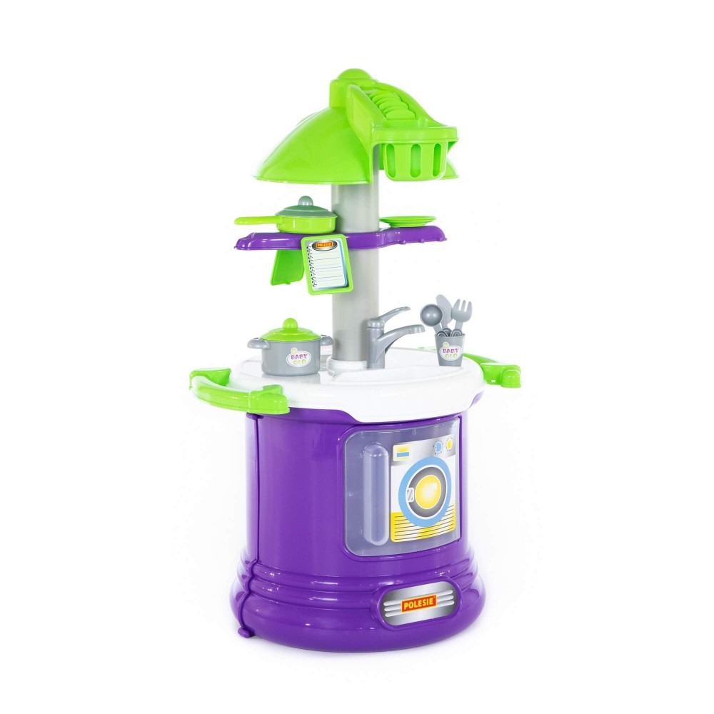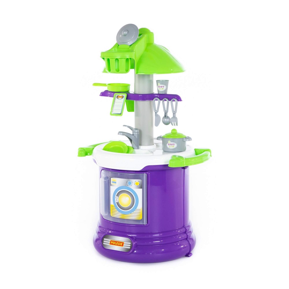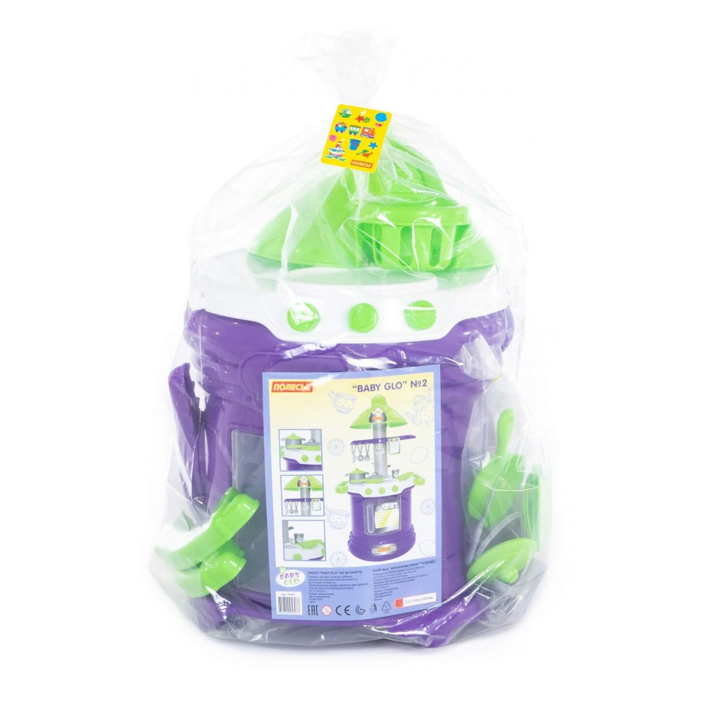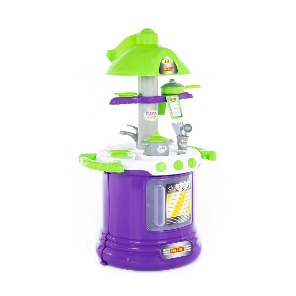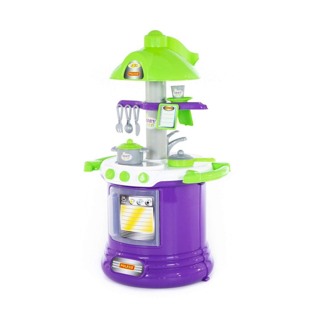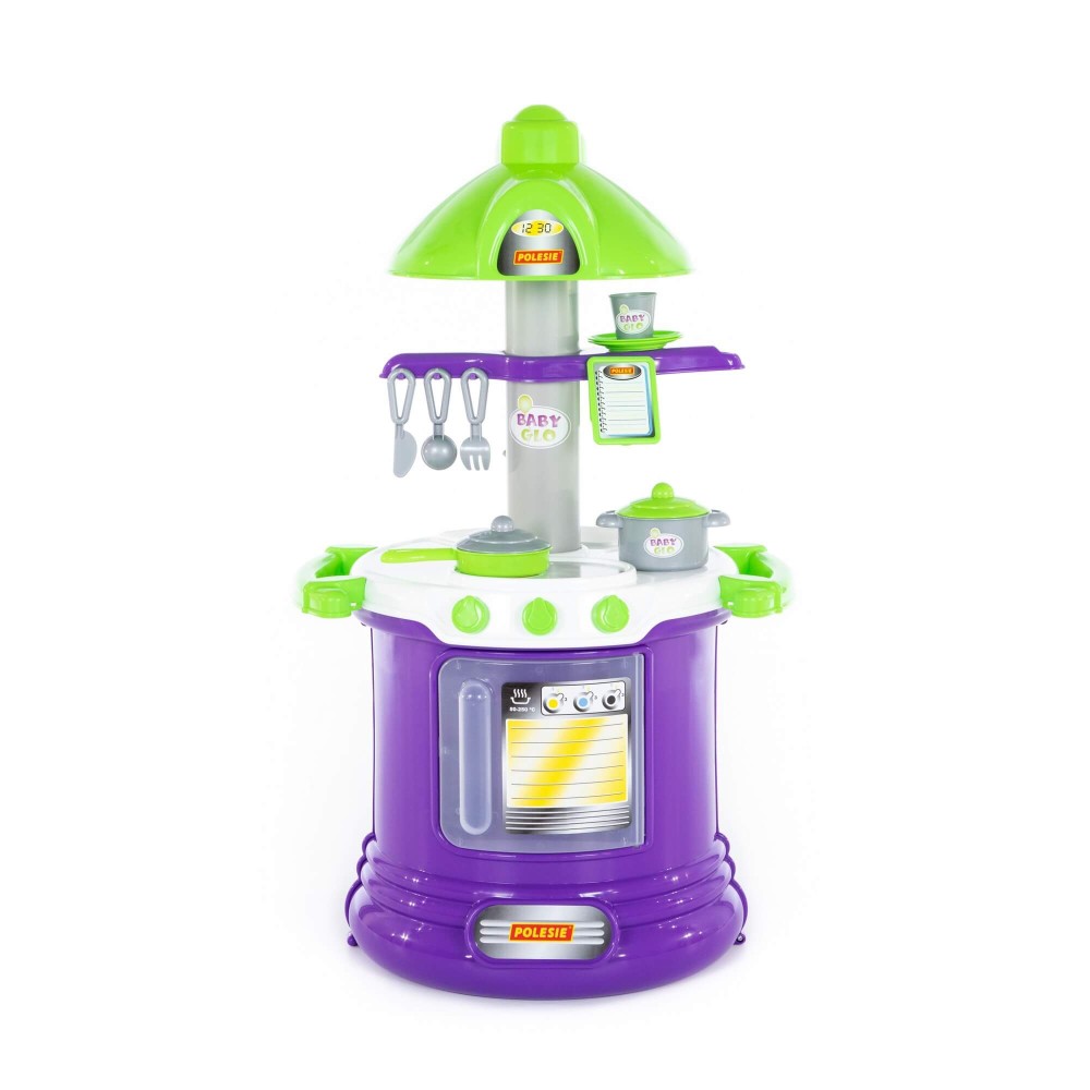 Прекрасно укомплектованный игровой комплекс "BABY GLO" №2 представлен в виде кухни с современным дизайном, который предполагает округлую форму конструкции. Столешница кухни многофункциональна – имеет две зоны: для приготовления пищи и для мытья посуды. На верхней части набора закреплена имитация вытяжки, которая делает игровой комплекс более реалистичным, тут же расположены планшеты для записей. Нижняя часть оснащена духовым шкафом. Набор "BABY GLO" №2 дополняют: сковорода, кастрюля, стакан, блюдца (2 шт.), вилка, ложка и нож.
