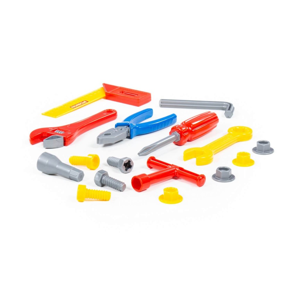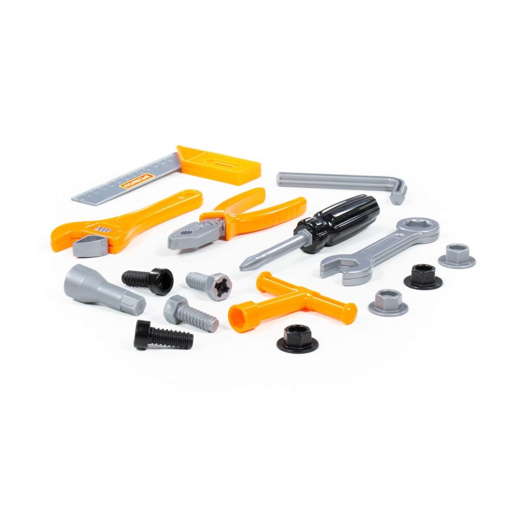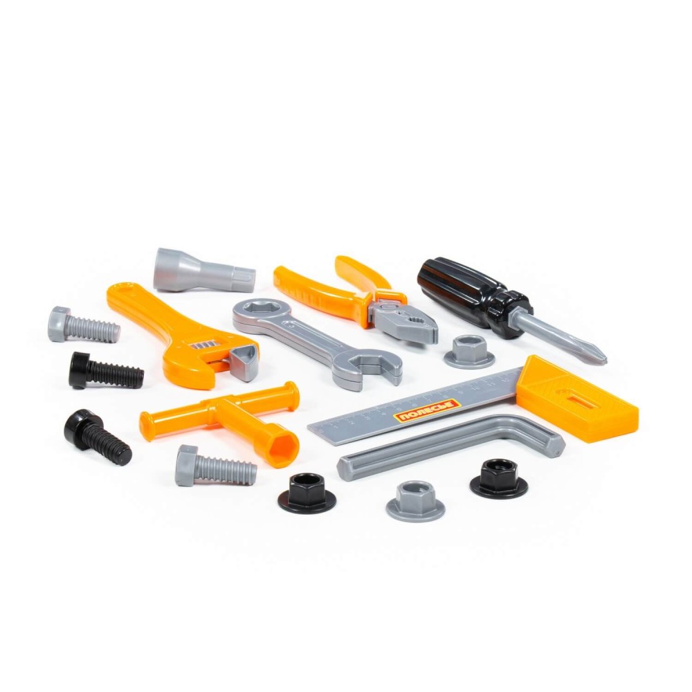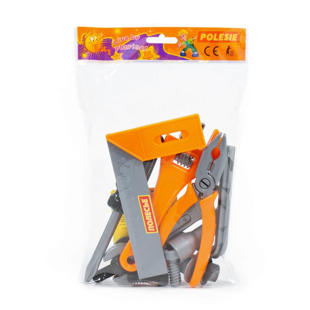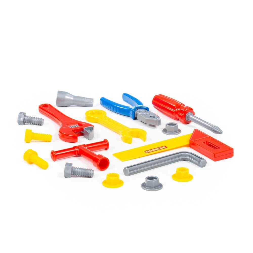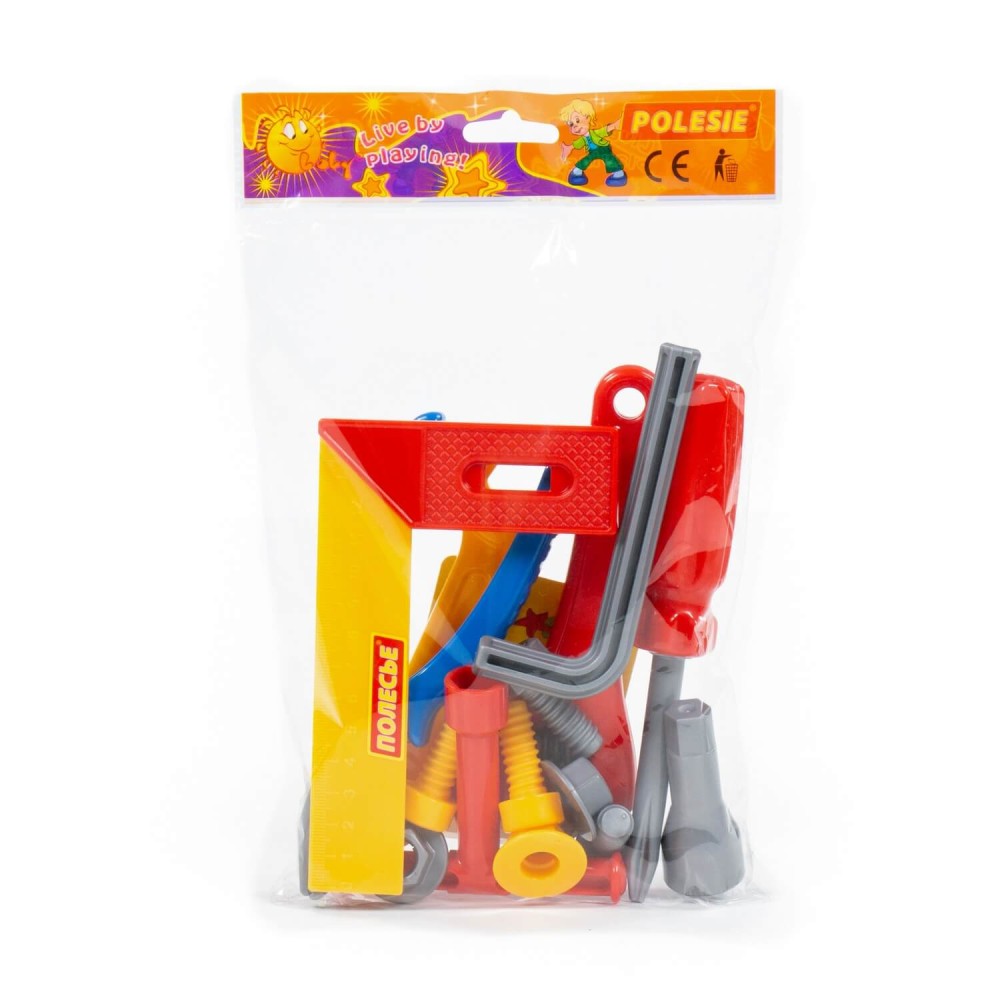 Наборы инструментов, производимые компанией «Полесье», могут использоваться как для проведения групповых занятий в дошкольных учреждениях, так и для самостоятельной игры ребёнка. Все инструменты, входящие набор, функционально идентичны взрослым аналогам и позволяют развивать мелкую моторику и координацию ребенка: ловкость и гибкость пальцев и кистей, точность движений. Набор инструментов помогает познакомить детей с основными особенностями взаимодействия отдельных частей и деталей, развивает пространственное воображение. Комплект включает в себя:
