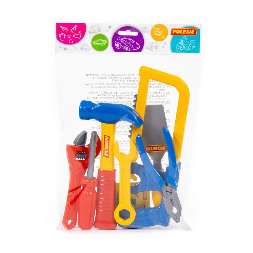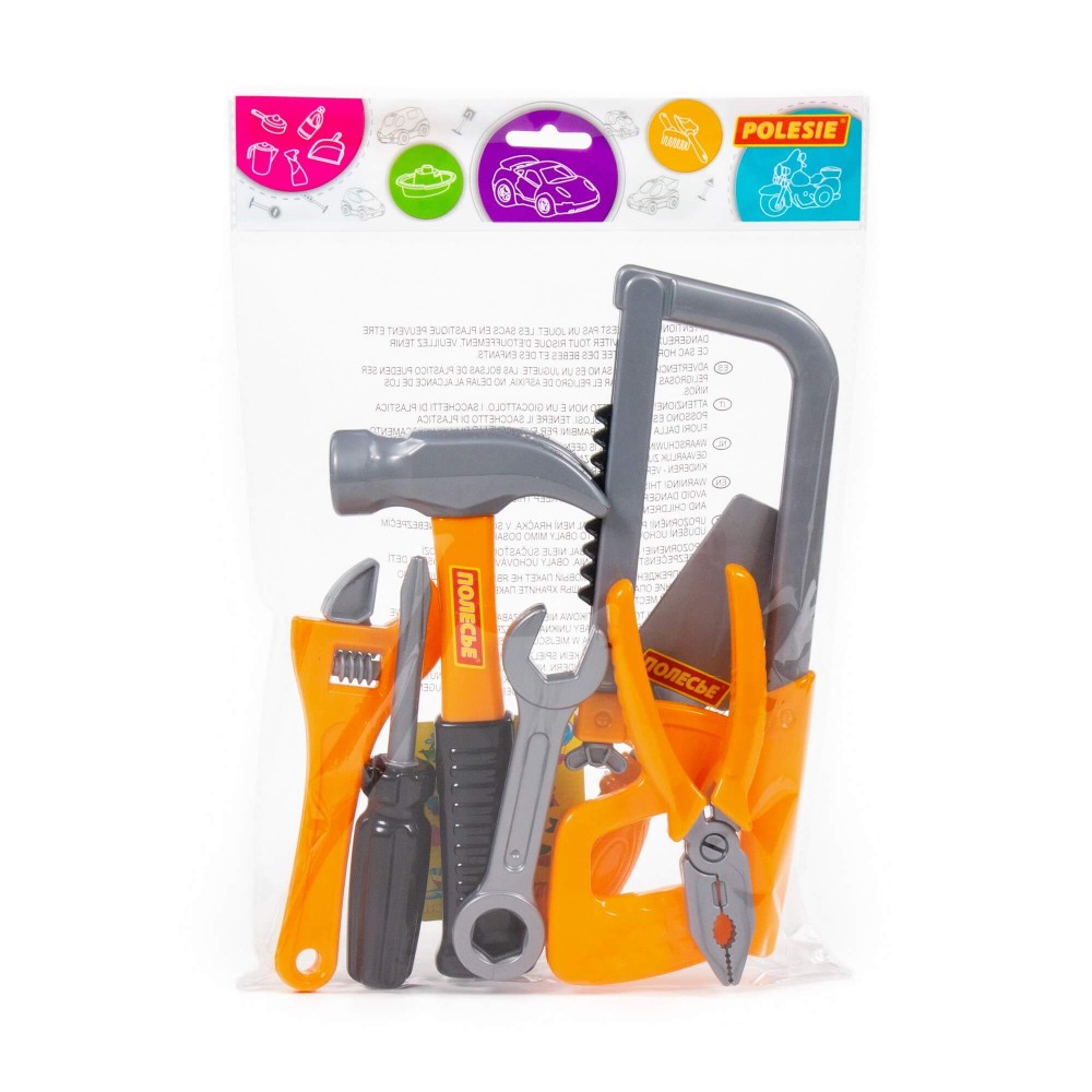 Наборы инструментов, производимые компанией «Полесье», могут использоваться как для проведения групповых занятий в дошкольных учреждениях, так и для самостоятельной игры ребёнка. Все инструменты набора функционально идентичны взрослым аналогам и позволяют развивать мелкую моторику и координацию ребенка: ловкость и гибкость пальцев и кистей, точность движений. Набор инструментов помогает познакомить детей с основными особенностями взаимодействия отдельных частей и деталей, развивает пространственное воображение. Комплект включает в себя: