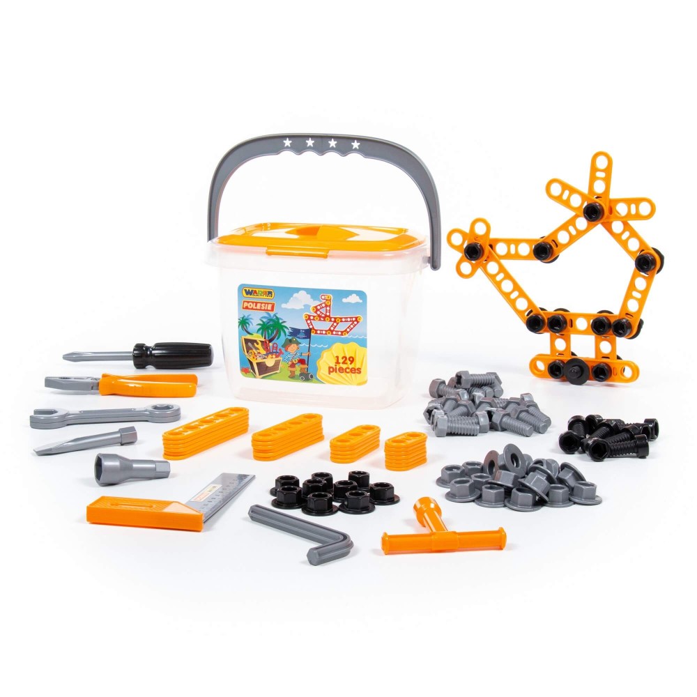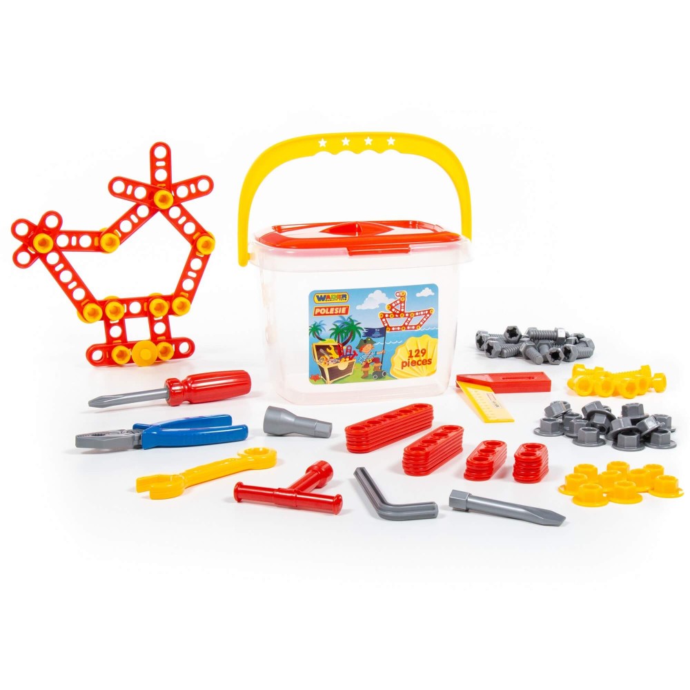 Наборы инструментов, производимые компанией «Полесье», могут использоваться как для проведения групповых занятий в дошкольных учреждениях, так и для самостоятельной игры ребёнка. Все инструменты, входящие набор, функционально идентичны взрослым аналогам, позволяют развивать мелкую моторику и координацию ребёнка: ловкость и гибкость пальцев и кистей, точность движений. Набор инструментов помогает познакомить детей с основными особенностями взаимодействия отдельных частей и деталей, развивает пространственное воображение. Комплект включает в себя: