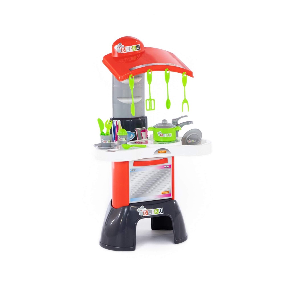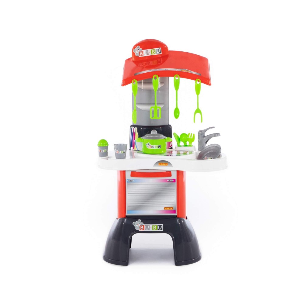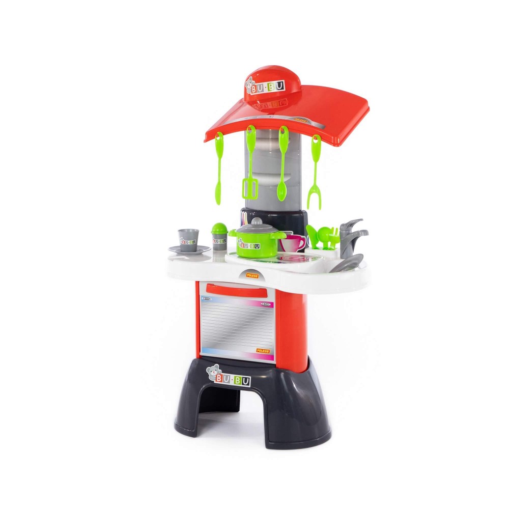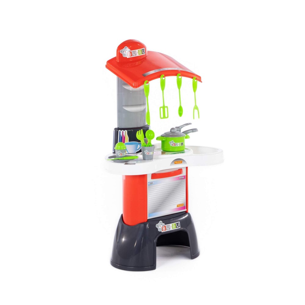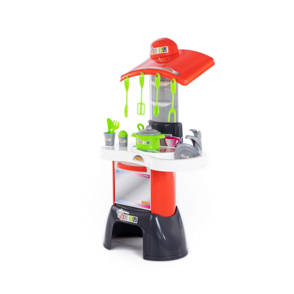 Игровой комплекс "BU-BU" №1 – это яркая кухня, в наборе с которой идут все необходимые приспособления для готовки. Она имеет зону для приготовления пищи, зону для мытья посуды, а также духовой шкаф. Набор дополнен игрушечной посудой:
