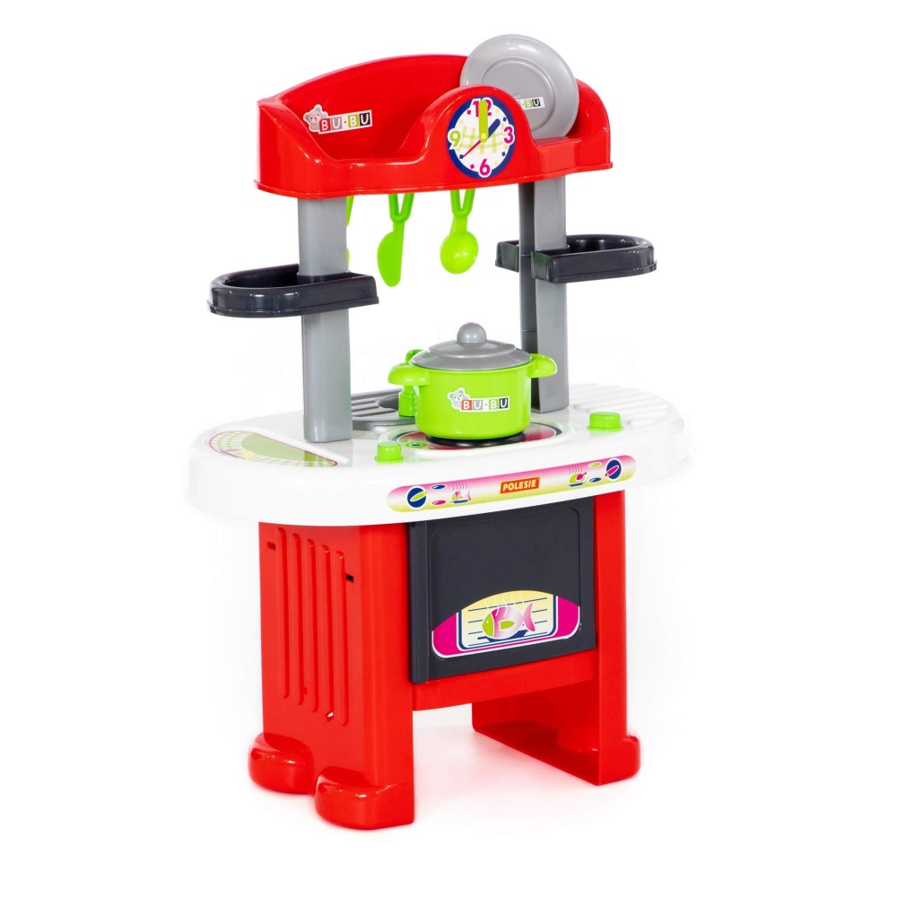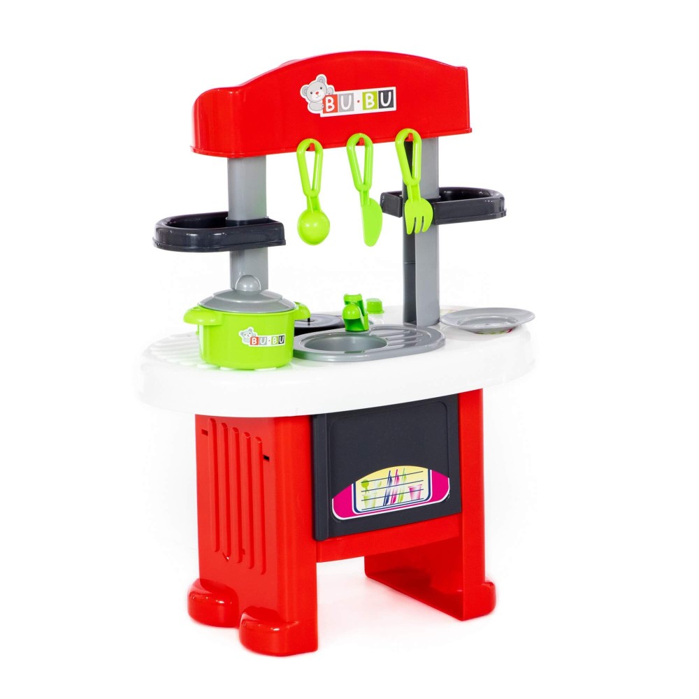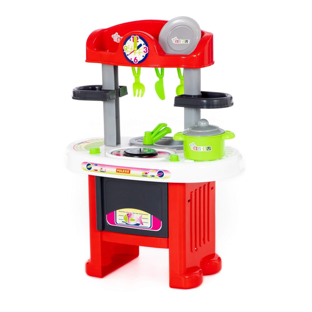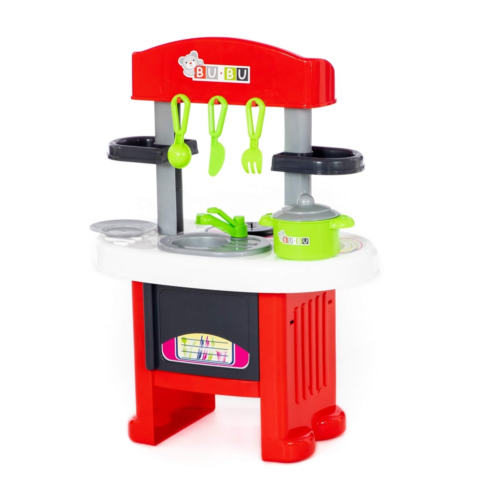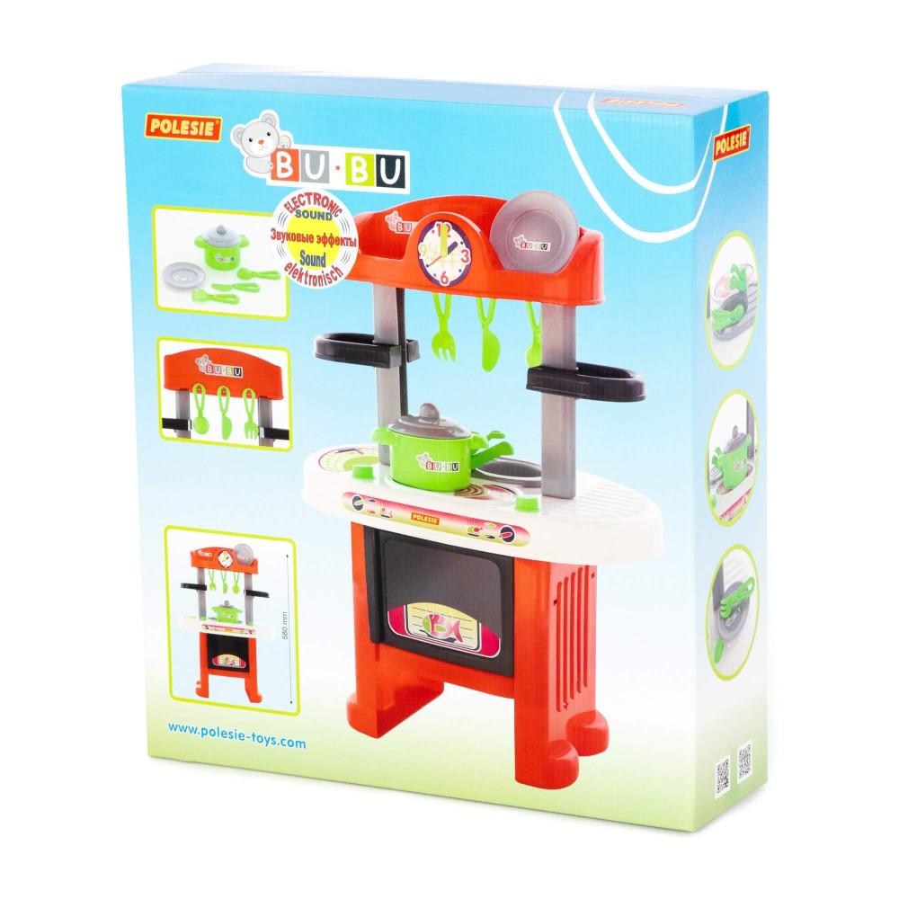 Набор "BU-BU" №9 - это кухня для маленьких хозяюшек, оснащенная электронным элементом, который имитирует звук работы настоящей плиты, если поставить на нее сковороду или кастрюлю. Набор дополнен игрушечной посудой: