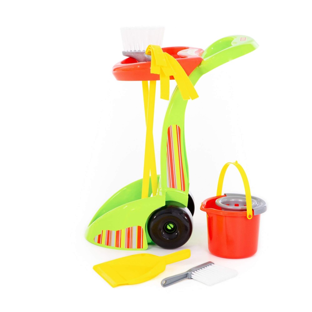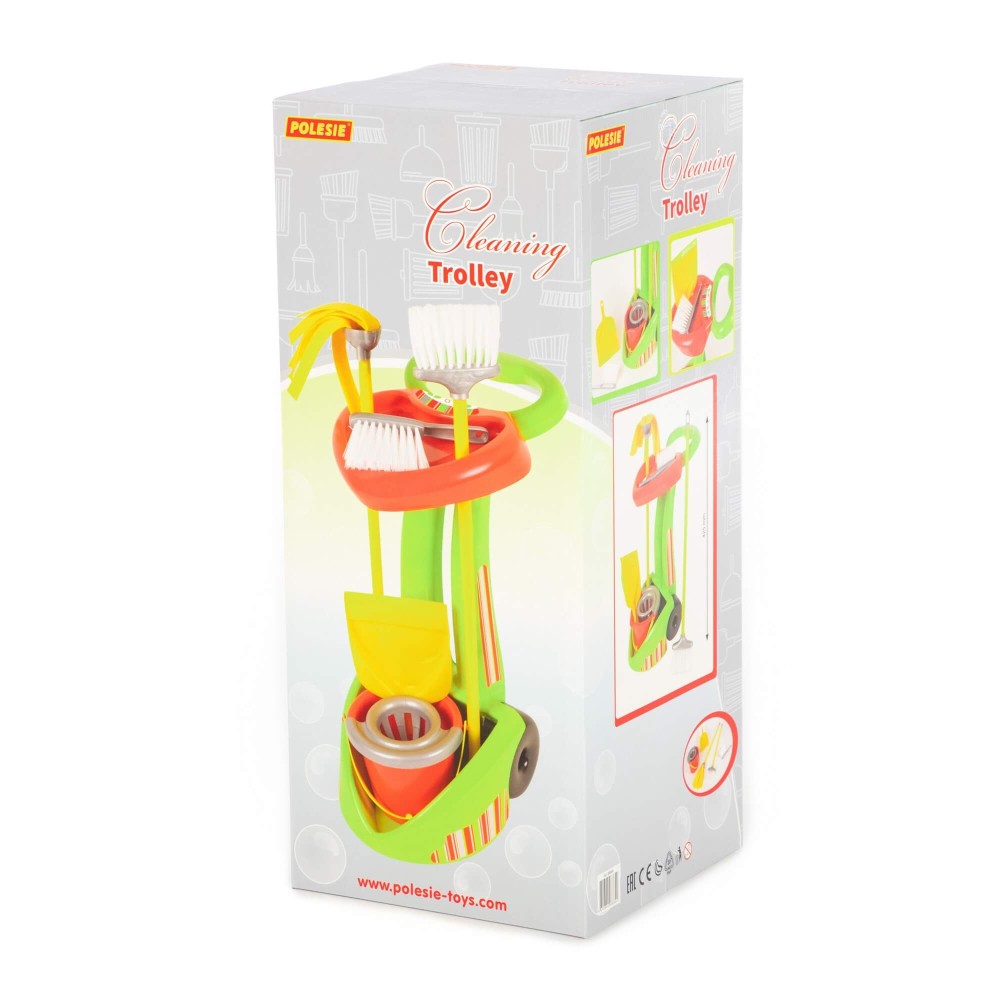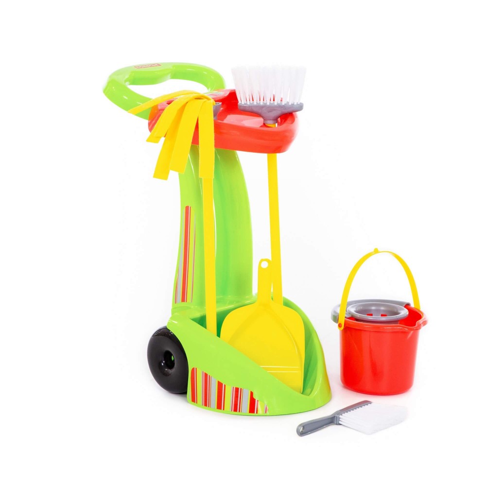 С набором «Чистюля» малыш играет и одновременно приучается к порядку. Игрушечный комплект полностью соответствует оригинальным приборам, которые используют современные хозяйки. Все принадлежности компактно расположены на передвижной тележке. В наборе имеются: швабра, большая и маленькая щётки, совочек, ведро с отжимом. У каждого прибора - своё место для хранения (для этого на тележке предусмотрены специальные платформы и ниши). Тележка на колёсах, поэтому её легко перемещать. Игрушечный комплект хозяйки компактный и занимает мало места. С его помощью ребёнок учится быть самостоятельным, развивается координация движений, моторика рук и воображение. Играть с набором «Чистюля» можно как в одиночку, так и командой. Инвентаря для уборки хватит на целую семью!