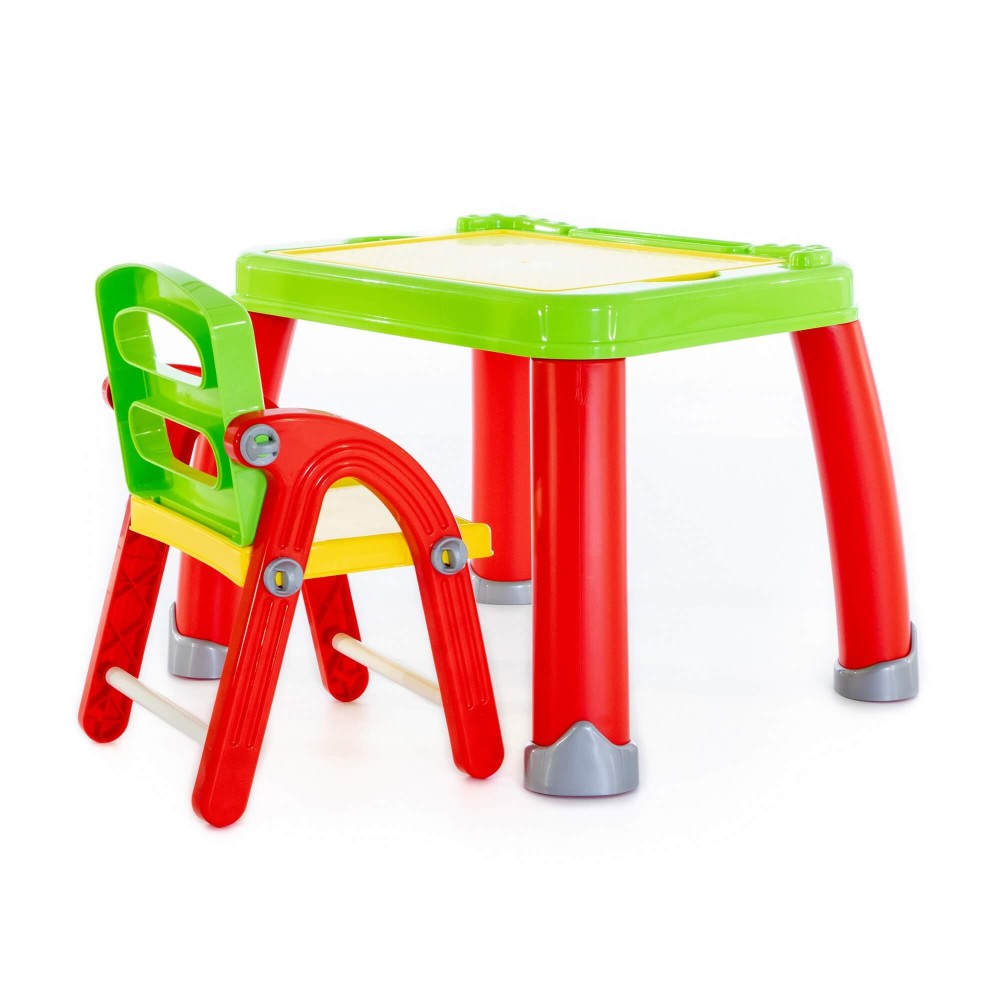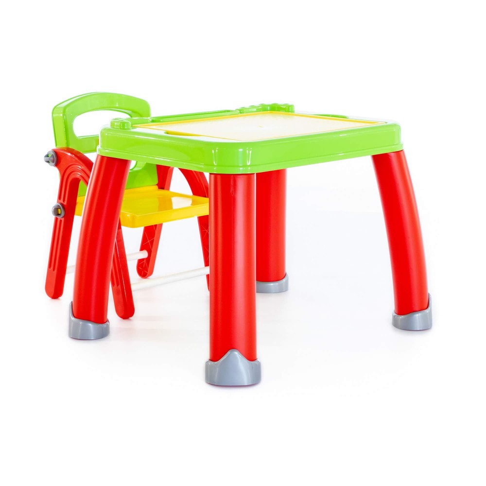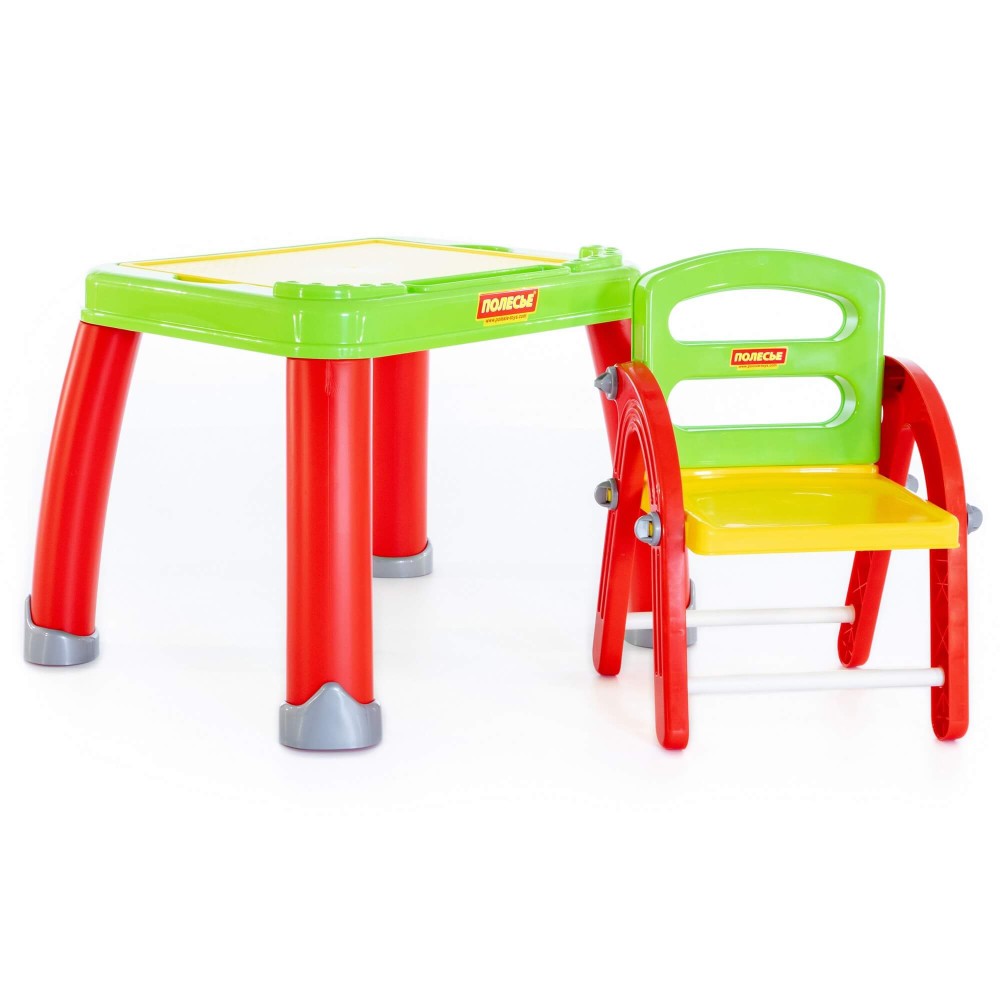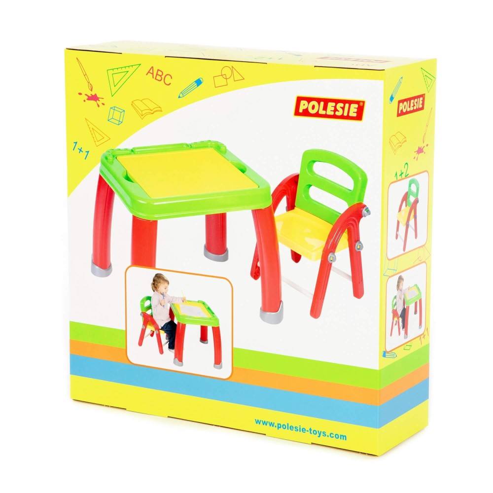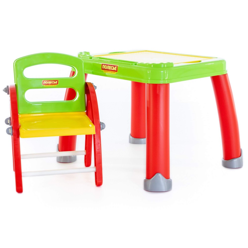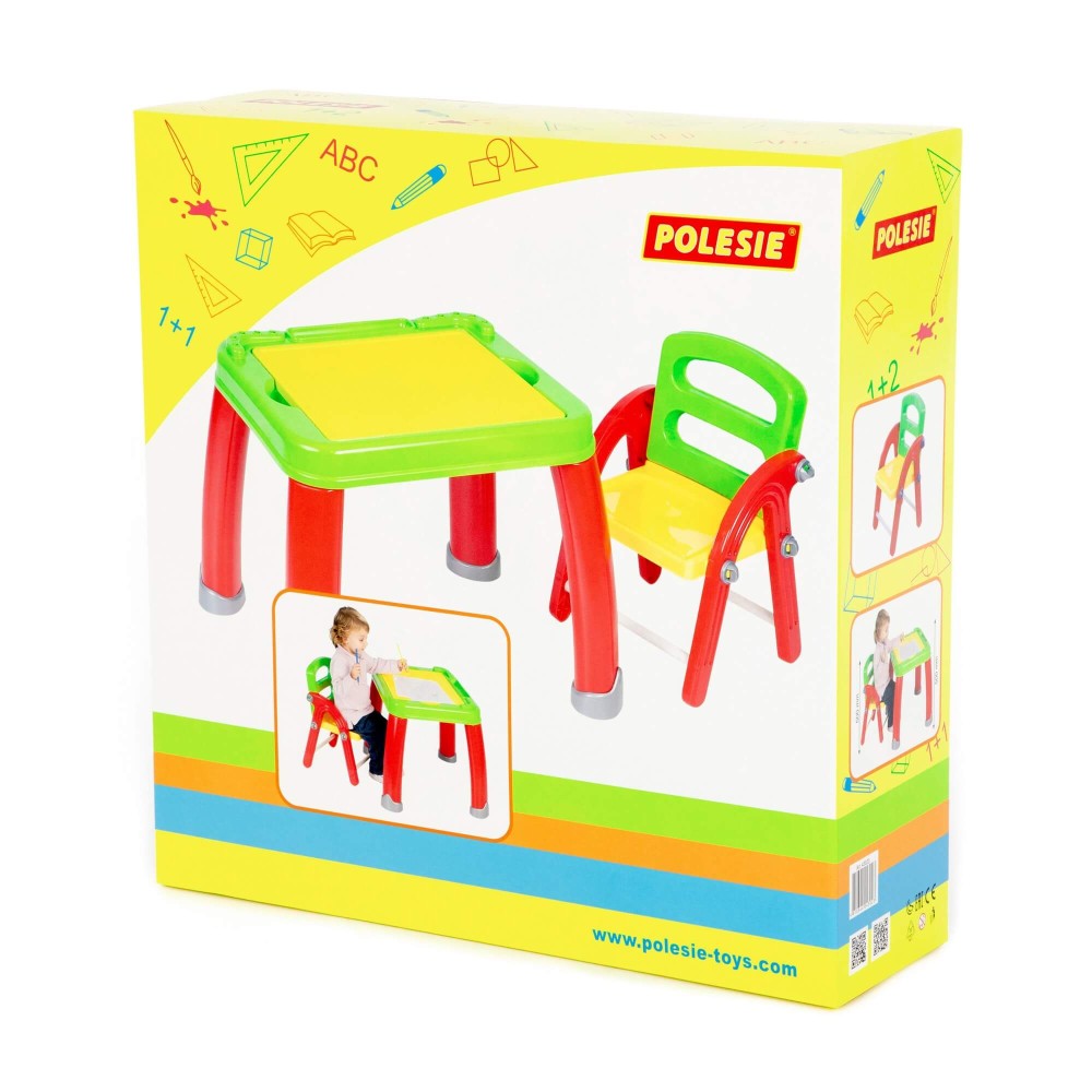 Набор представляет собой столик на 4 ножках и разборный стульчик. Поверхность столика - съемная, её легко помыть после увлекательных занятий малыша. Под панелью находится органайзер, куда быстро и легко можно убрать все канцелярские принадлежности. При отсутствии необходимости использования стульчика его можно хранить в разобранном виде.