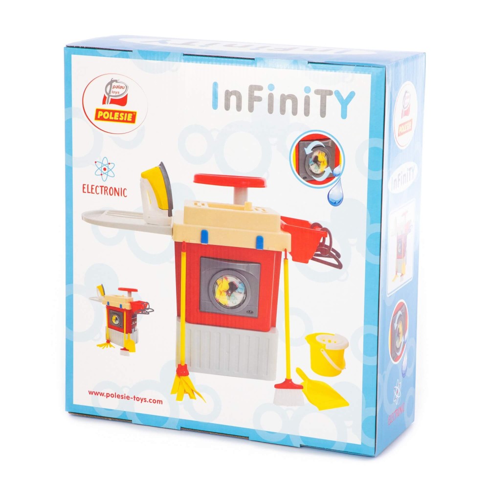 Для поддержания чистоты и порядка в мире игрушек девочке непременно понадобится игровой комплекс со стиральной машиной. Набор "INFINITY basic" №3 (в коробке) специально создан для девочек. Реалистичная стиральная машина с электронным вращающимся барабаном, утюжок, гладильная доска и прочие принадлежности помогут развить в девочке желание быть хозяйкой, стремление беречь уют домашней обстановки и, возможно, помогать маме в уходе за младшими братьями или сестрами. При этом обучение малышки происходит ненавязчиво, в режиме интересной игры. Очень скоро мама сможет почувствовать настоящую помощь дочери в ведении хозяйства. Но, пока этого не произошло, следует проявить еще немного терпения и помочь ребенку научиться домашнему быту. В этом Вам поможет серия игровых модульных комплексов «INFINITY». Все модули из серии игровых комплексов «INFINITY» стыкуются между собой и дополняют друг друга.