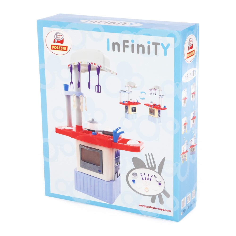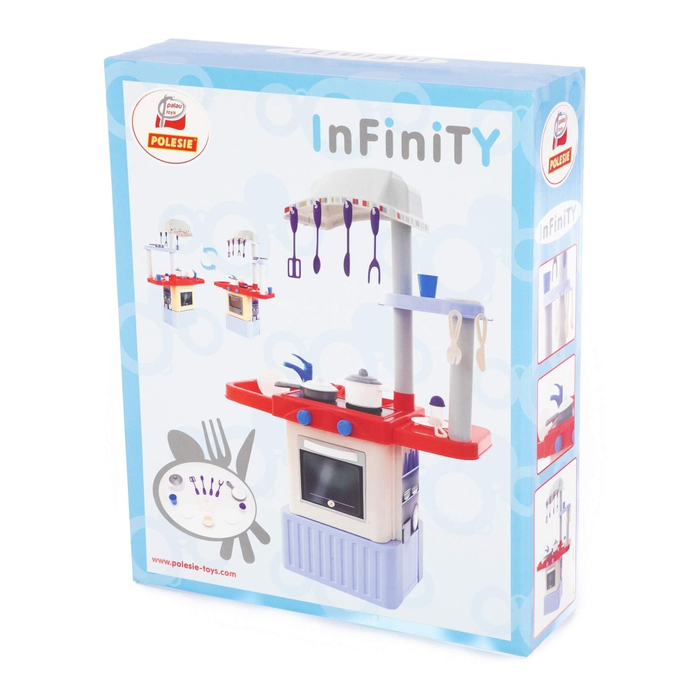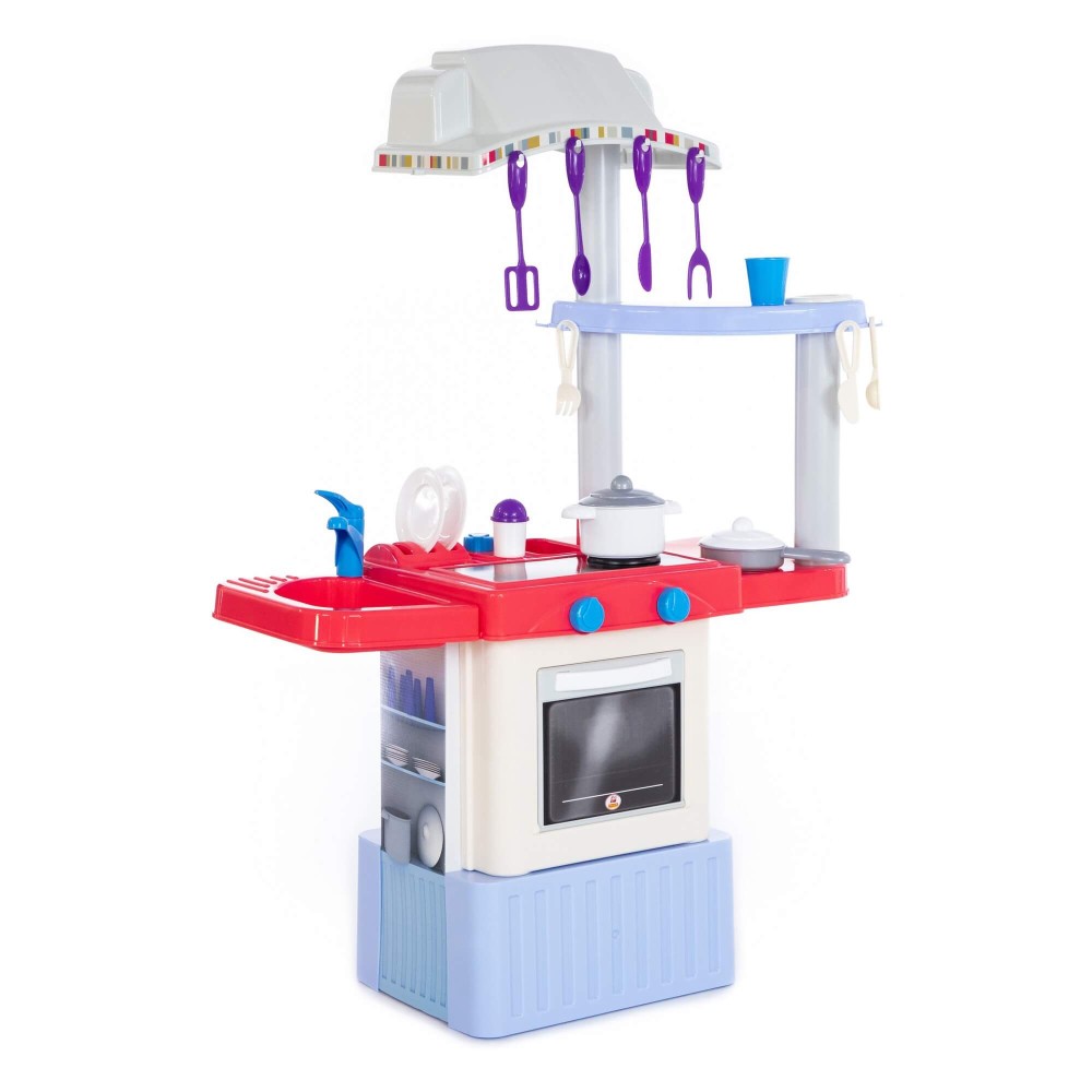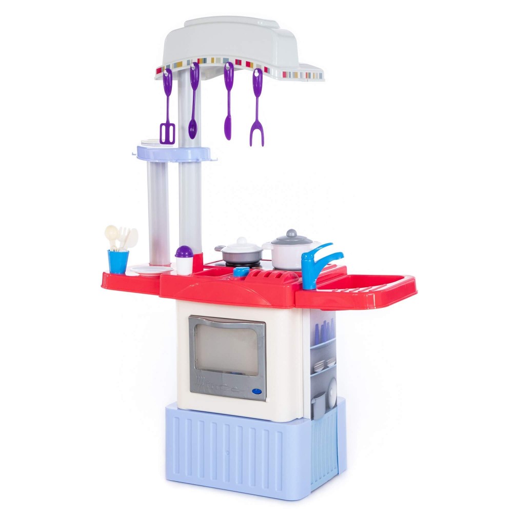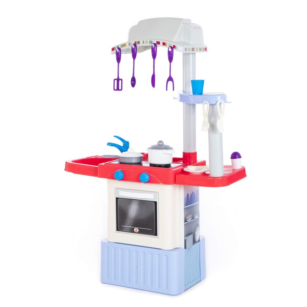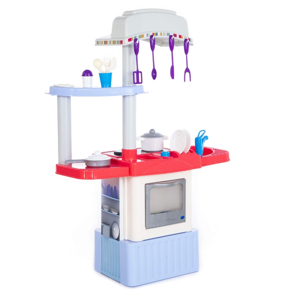 У кухни 2 электронных элемента: озвученная плита и посудомоечная машина. Плита начинает издавать звук "жарки", если поставить на неё сковороду или кастрюлю. В дверку посудомоечной машинки заливается вода, а при нажатии кнопки включения моторчик в дверке создает брызги и издает звук. В комплект посуды входят:
