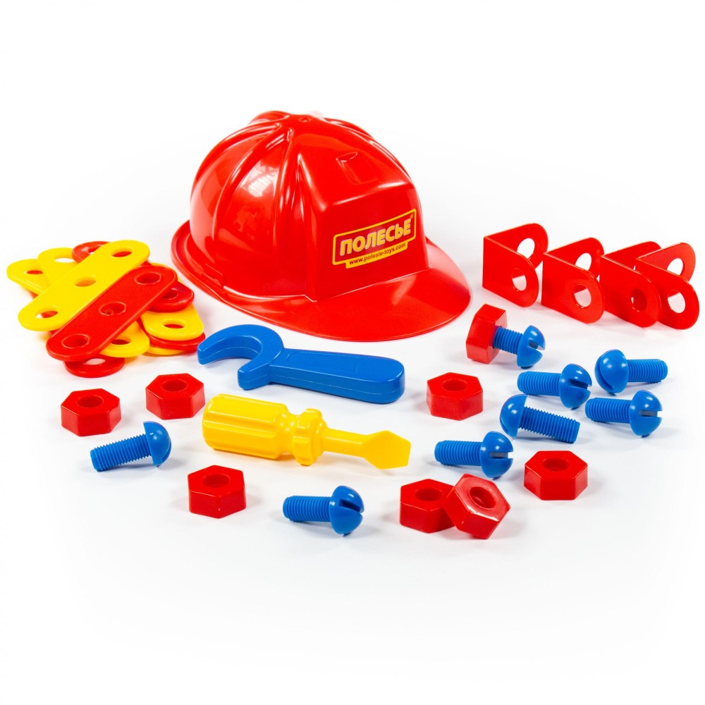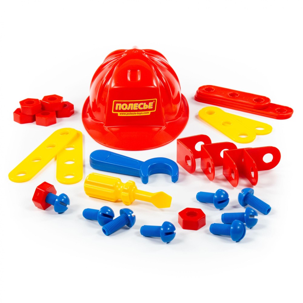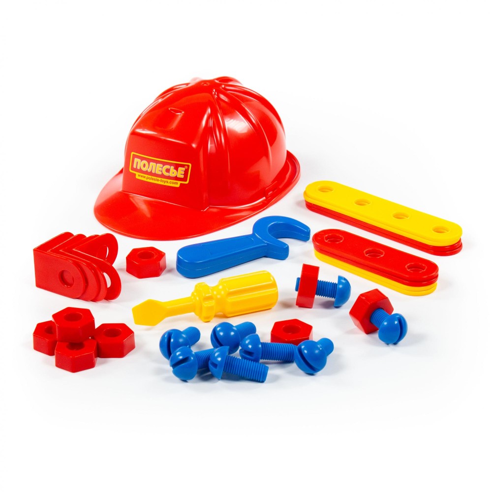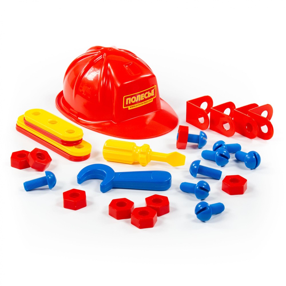 Набор для мальчиков, состоящий из отвертки, гаечного ключа, а также соединительных пластин, уголков, винтов, гаек и самого главного атрибута слесаря - каски. Набор отлично подойдет для первого знакомства мальчика со слесарным инструментом, его назначением, принципами работы.