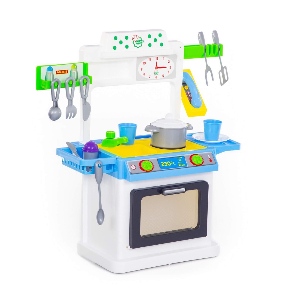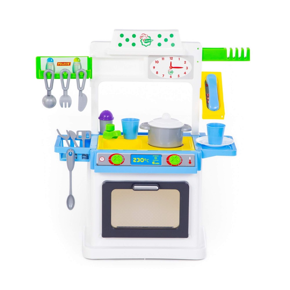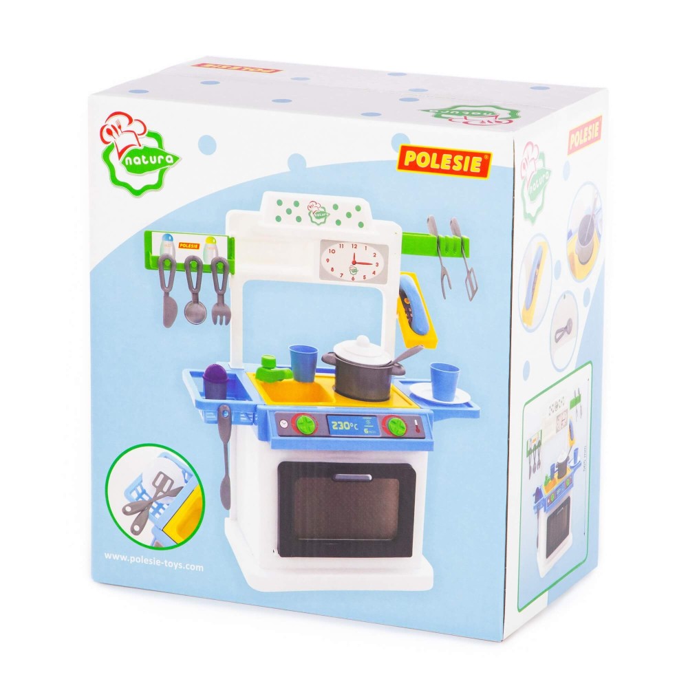Благодаря компактному размеру данный набор без труда разместится в детской комнате. "NATALI" №4 – это небольшая кухня с плитой, мойкой и духовым шкафом. На верхней панели комплекса расположены сушилка для игрушечной посуды, полочка для хранения предметов игры и телефон. Набор "NATALI" №4 дополняют: