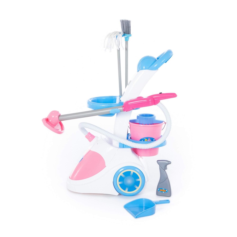 Игровой набор «Помощница» выполнен в нежной цветовой гамме, функционален и имеет звуковое сопровождение. Игрушка состоит из одного модуля : пылесоса на колёсах и аксессуаров. Игрушечный пылесос напоминает атрибут современной хозяйки, имеет подвижную рукоятку, что делает игрушку интересной и функциональной. Пылесос «говорящий», то есть, имеет звуковое сопровождение-имитацию работающего прибора. Чтобы услышать звук, нужно удерживать кнопку на рукоятке. На передвижной тележке расположены также другие принадлежности для уборки: ведёрко с отжимом, швабра, щётка и совок. В комплект входит и флакон, имитирующий чистящее средство. С помощью такой игрушки ребёнок учится самостоятельности и в игровой форме приучается к порядку. Набор «Помощница»» станет отличным подарком для детей. С ним можно играть в одиночку или придумать интересные сценарии игр со сверстниками.