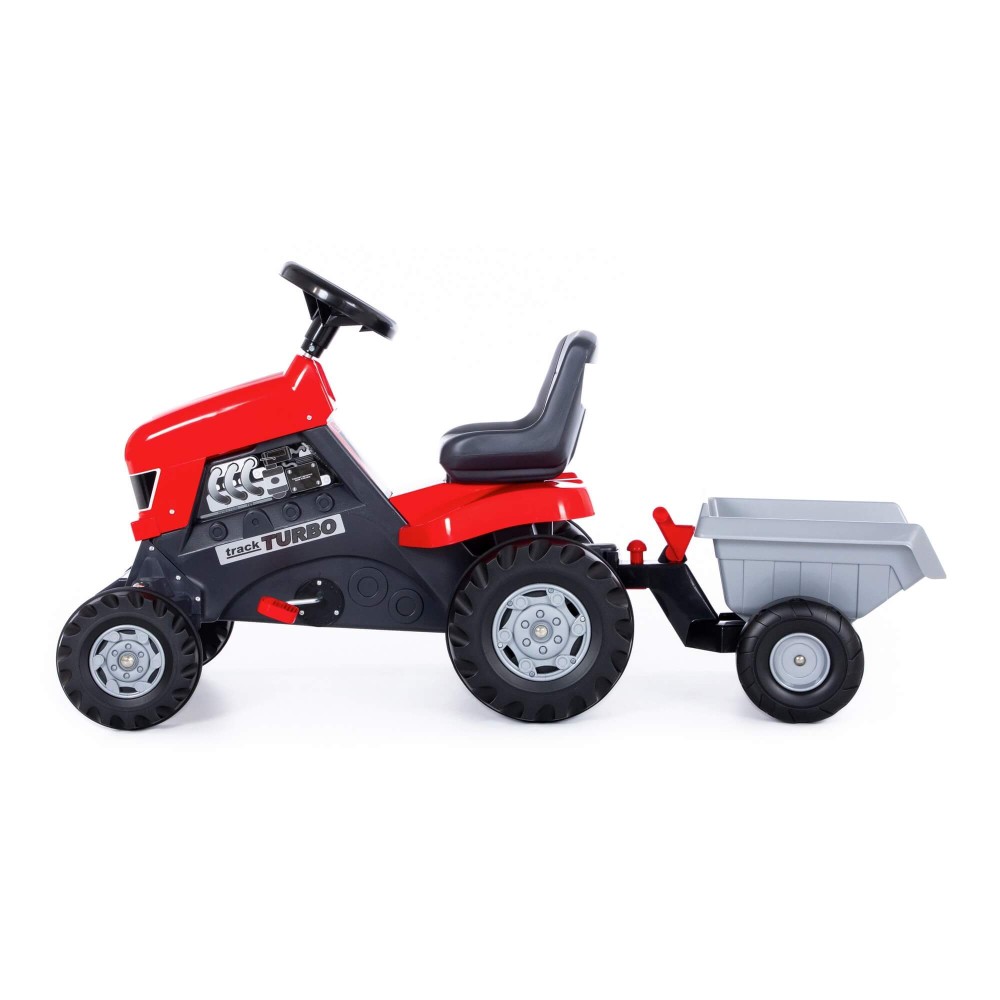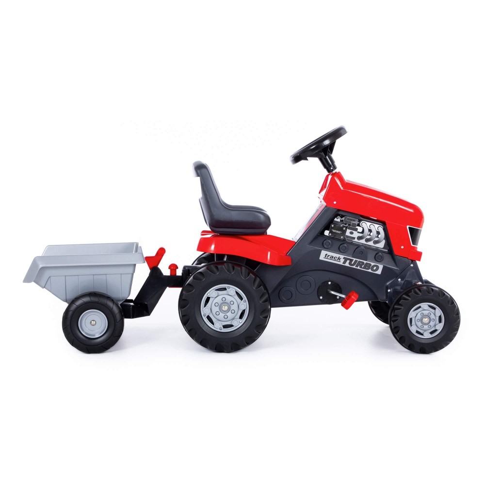 Педальная каталка-трактор с полуприцепом "Turbo" рассчитана на детей от 3-х лет и весом не более 50 кг. В комплекте с трактором поставляется съёмный полуприцеп. Каталка "Turbo" отлично подходит для игры дома и за его пределами. Такая игрушка придётся по душе юному фермеру или просто любителю техники. Механизм, приводящий каталку в движение, - цепь. Колёса пластиковые, на задних колёсах - резиновые накладки для лучшей амортизации. Так же к мини-трактору можно присоединить полуприцеп, который поставляется в комплекте с каталкой «Turbo». Ребёнок самостоятельно сможет присоединить или отсоединить прицеп. Полуприцеп мини-трактора можно использовать для перевозки урожая, различных грузов или материалов, инструментов. Высота посадки - 410 мм. Катание на педальных каталках и велосипедах способствуют развитию координации движений, первоначального движения и восприятия, а так же помогают развиваться физически.