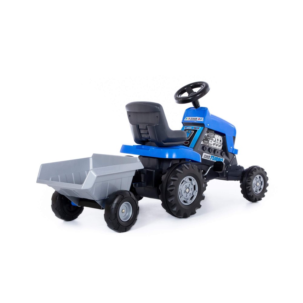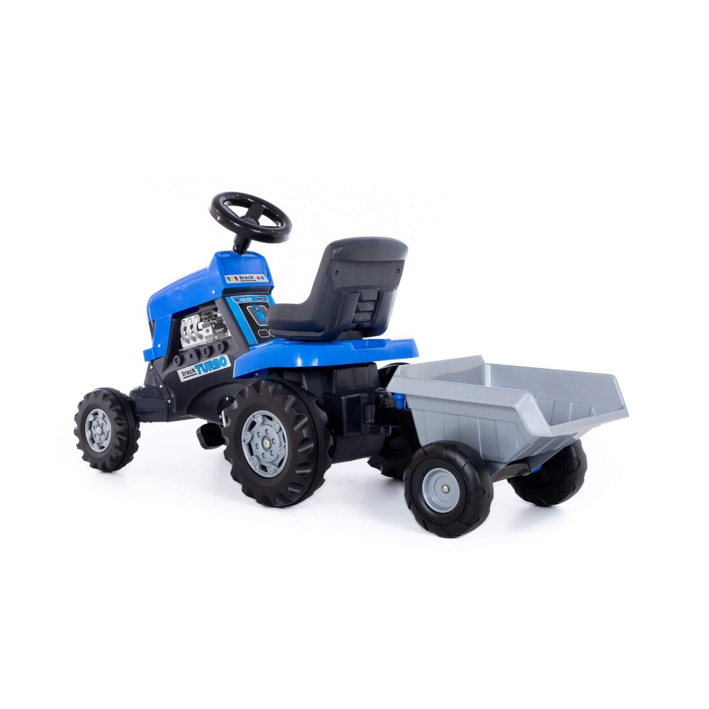 Каталка-трактор с педалями "Turbo" (синяя) с полуприцепом