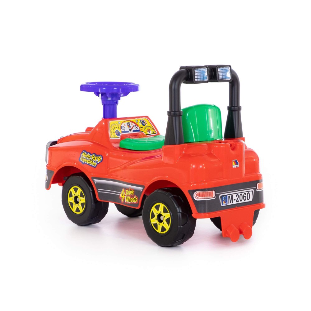 Яркий красочный автомобиль Джип-каталка понравится и мальчикам и девочкам. Удобную посадку, наличие багажника и руля малыш оценит по достоинству. Катание на таком автомобиле подразумевает отталкивание ножками, что в свою очередь развивает мышцы спины, рук, ног. Также езда на каталке улучшает общую координацию движений малыша, приобщает к активному времяпрепровождению. Выполнен джип из качественных материалов, имеет яркую расцветку и наклейки, которые дополняют дизайн.