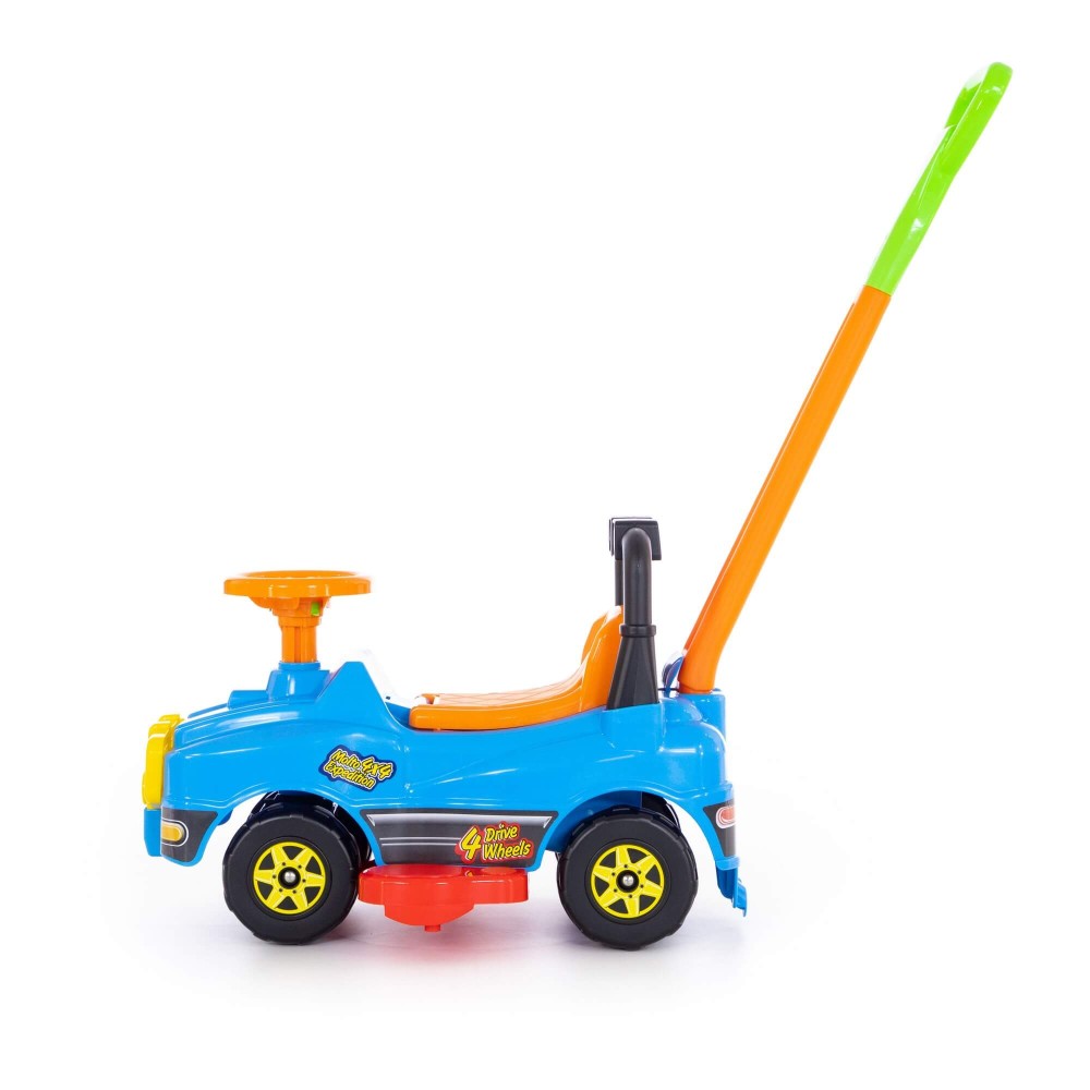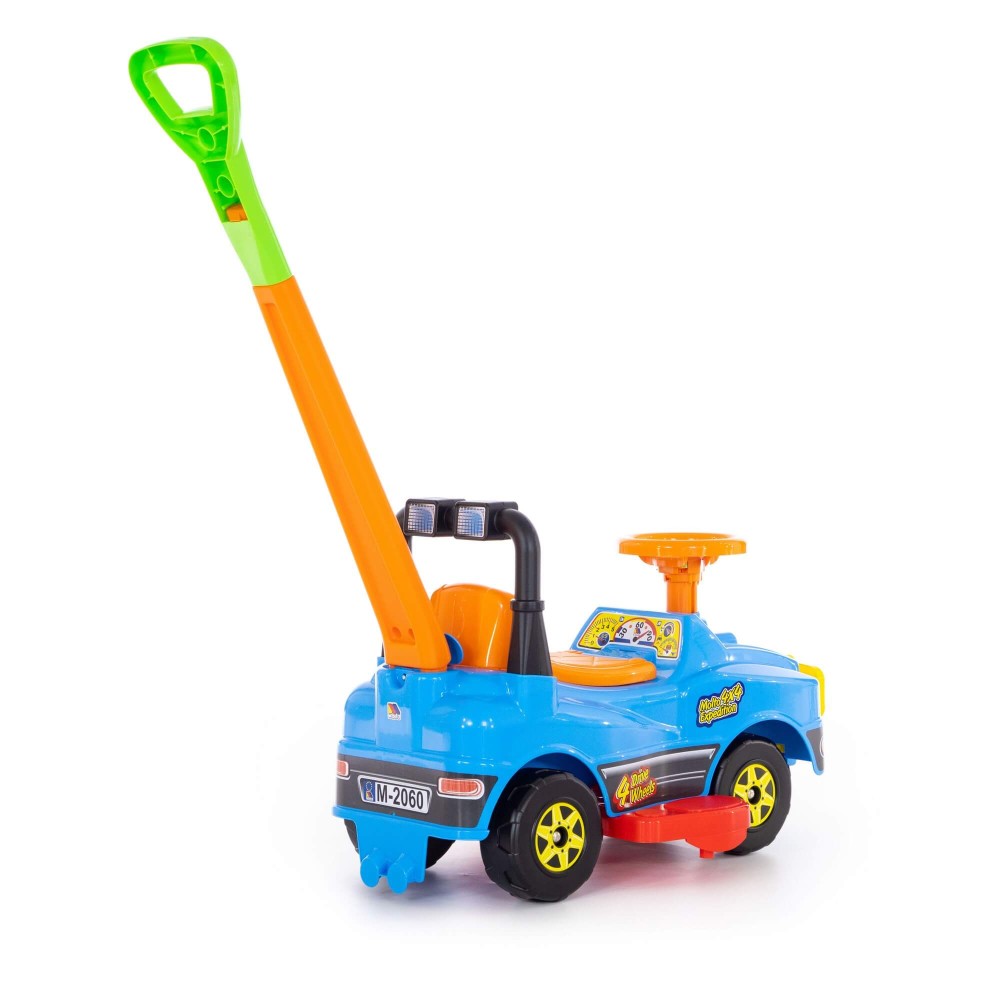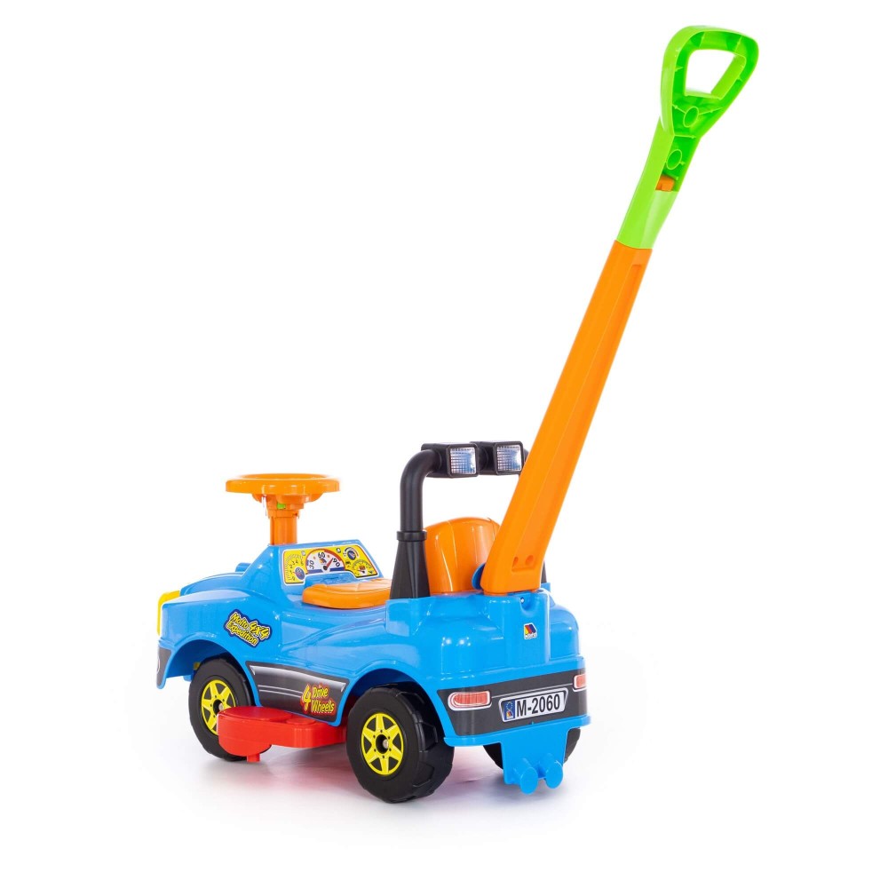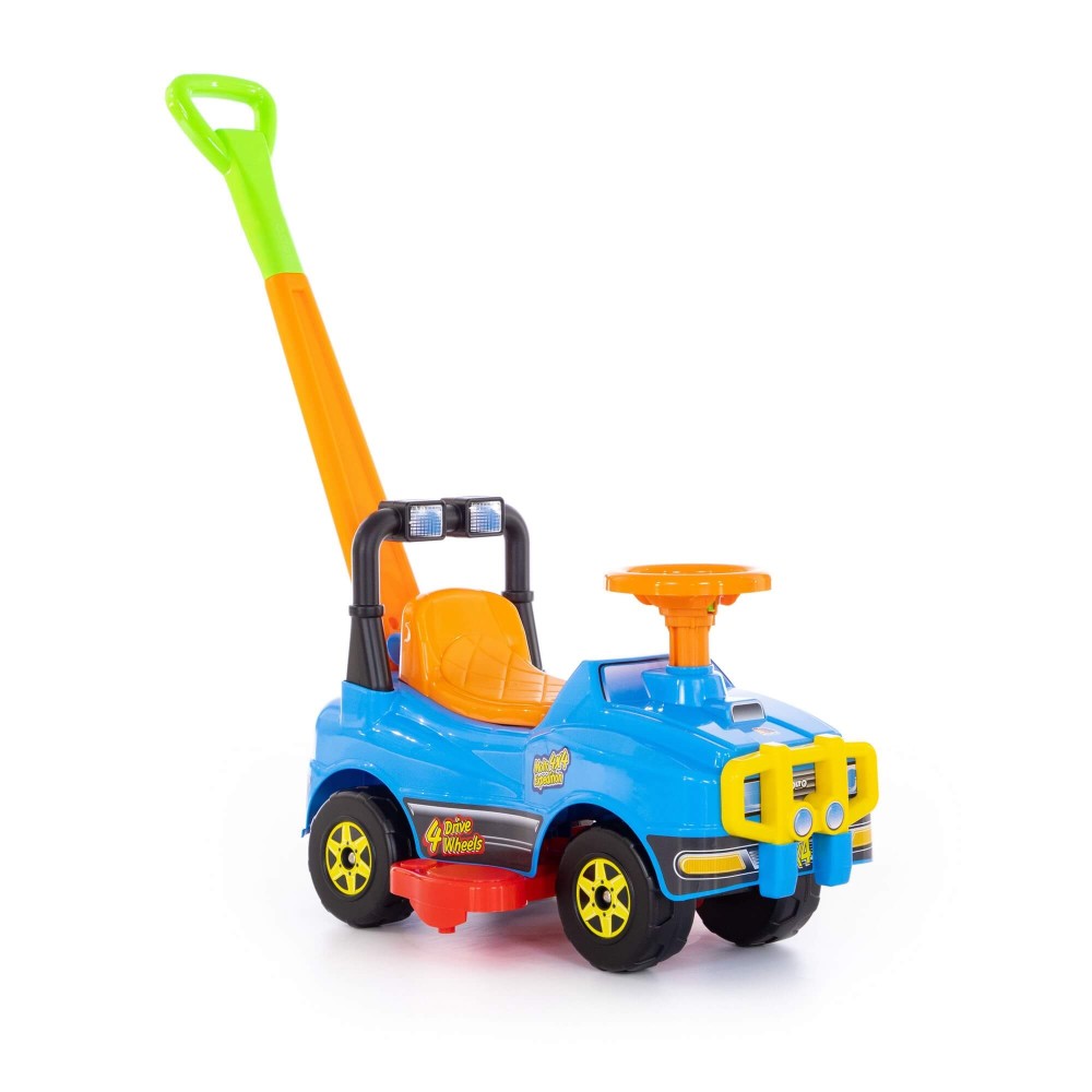 Автомобиль Джип-каталка с ручкой - это автомобиль 2 в 1, оснащенный ручкой и подножками, которые легко крепятся и снимаются, служат для катания малыша взрослыми. Ребенок может толкать автомобиль перед собой, держась за спинку каталки, совершенствуя навыки ходьбы. Также автомобиль отлично подойдёт для самостоятельного катания ребенка, путём отталкивания ножками. Такое катание особенно полезно, так как малыш укрепляет мышцы и развивает общую координацию движений. Разнообразит игру и сделает её ещё интереснее наличие музыкального сигнала на руле.