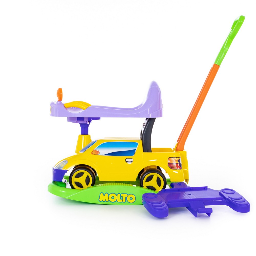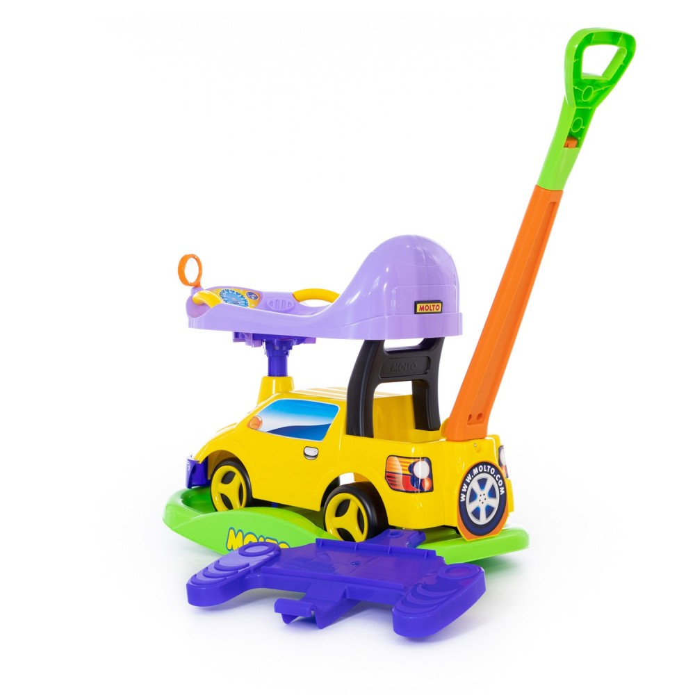 Автомобиль-каталка "Пикап" - это разборный многофункциональный комплекс. Каталка выполнена в виде машины в ярких цветах и имеет оригинальный дизайн. На такой каталке ребенок сможет самостоятельно кататься, отталкиваясь ногами. А если малыш устанет, на каталку всегда можно быстро установить ручку и подножки и кататься при помощи взрослых. Каталку "Пикап" можно использовать и как качалку, для этого на автомобиль следует установить подставку-качалку, которая входит в комплект. Таким образом, многофункциональная каталка "Пикап" прослужит малышу в течение долгого времени. Выполнена игрушка из качественных материалов, имеет прочную конструкцию и продуманный дизайн. Каталка представлена в жёлтом цвете.