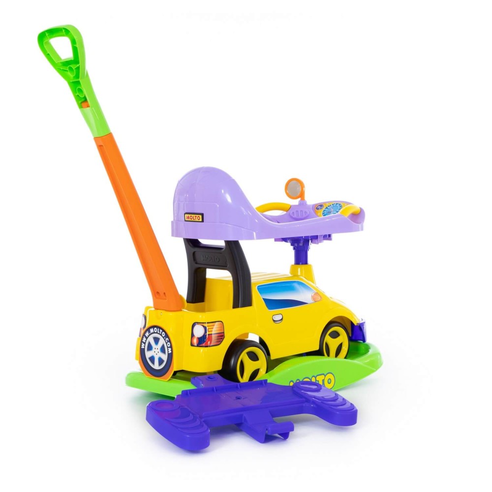 Автомобиль-каталка "Пикап" - это разборный многофункциональный комплекс. Каталка выполнена в виде машины в ярких цветах и имеет оригинальный дизайн. На такой каталке ребенок сможет самостоятельно кататься, отталкиваясь ногами. А если малыш устанет, на каталку всегда можно быстро установить ручку и подножки и кататься при помощи взрослых. Каталку "Пикап" можно использовать и как качалку, для этого на автомобиль следует установить подставку-качалку, которая входит в комплект. Таким образом, многофункциональная каталка "Пикап" прослужит малышу в течение долгого времени. Дополнит игру и сделает её ещё интереснее наличие музыкального сигнала на руле. Выполнена игрушка из качественных материалов, имеет прочную конструкцию и продуманный дизайн. Каталка представлена в жёлтом цвете.