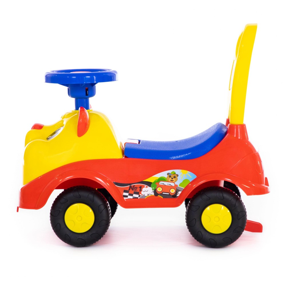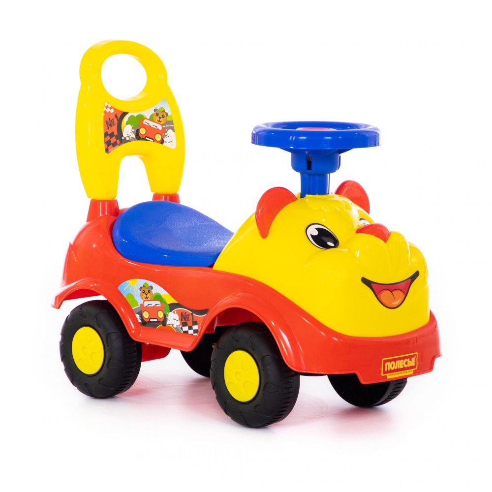 Каталки являются любимыми детскими игрушками, так как лучше других могут развлечь ребёнка. Фабрика «Полесье» представляет каталку "Мишка". Игрушка выполнена в ярких цветах, имеет округлые формы деталей. Чтобы малышу было удобно кататься, конструкция предполагает наличие спинки. Каталка предназначена для самостоятельного катания ребёнка путём отталкивания ножками. Порадует ребёнка и наличие сигнала на руле. Держась за спинку каталки, ребёнок может толкать её перед собой, совершенствуя навыки ходьбы. Катание развивает первоначальные движения и общую координацию малыша, способствует его физическому развитию.