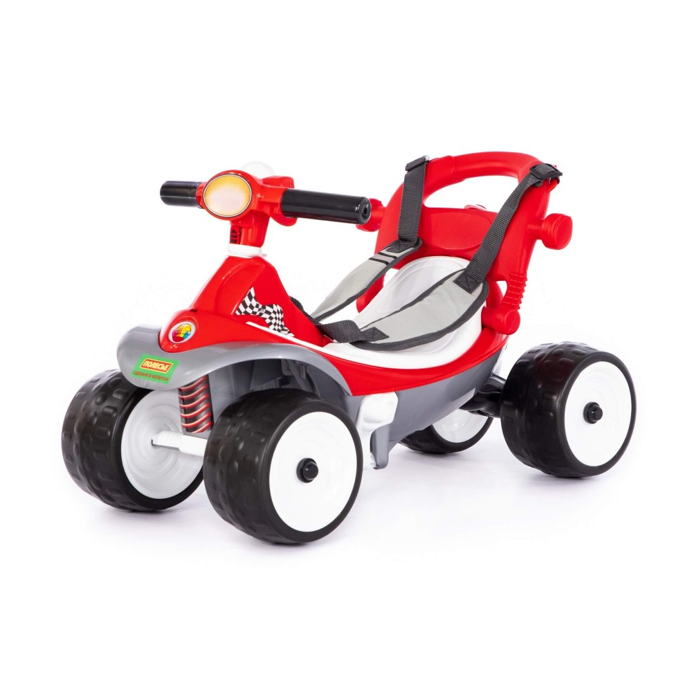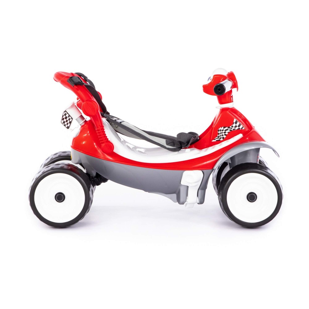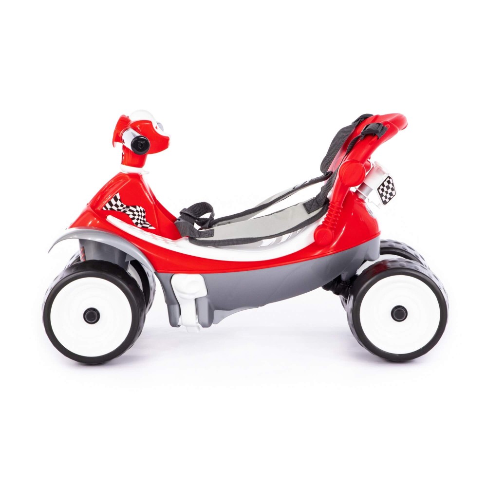 Игрушка обладает реалистичным дизайном. Каталка выполнена из высококачественного пластика, имеет эргономичную форму и низкую посадку, что обеспечивает комфортное перемещение. Дополнительную безопасность обеспечивают съёмные фиксирующие ремни.