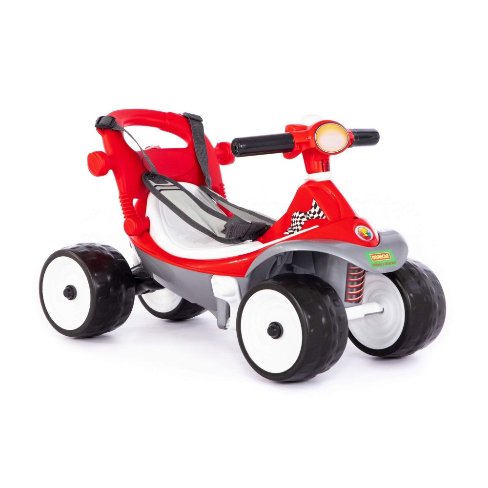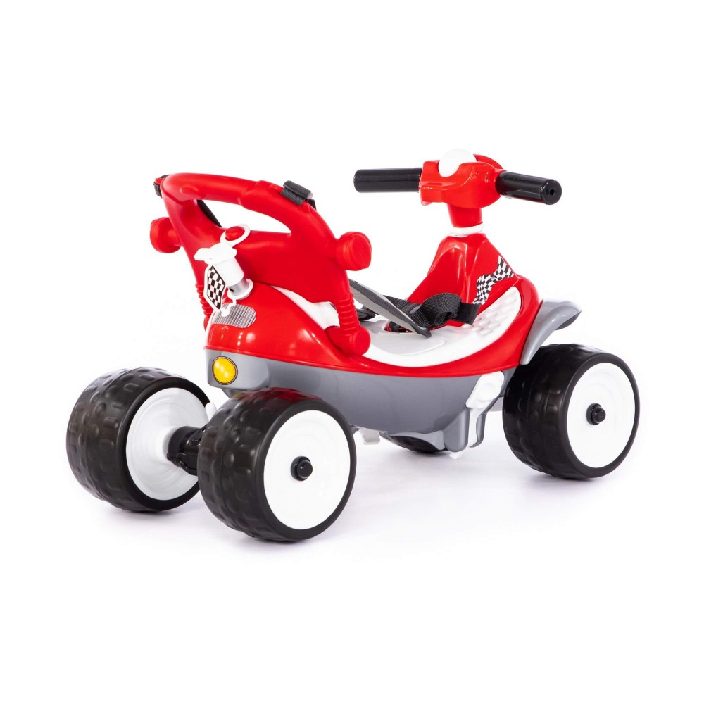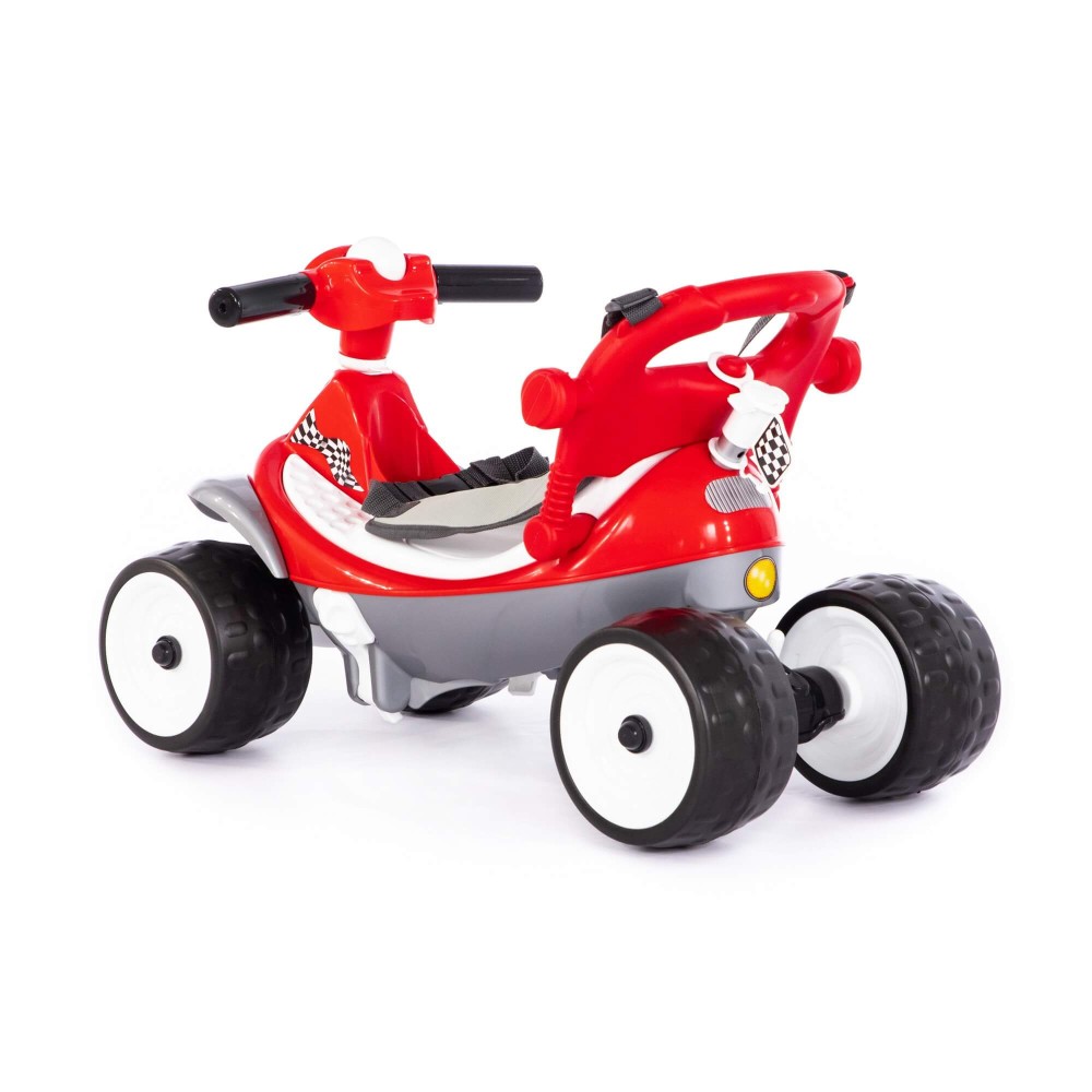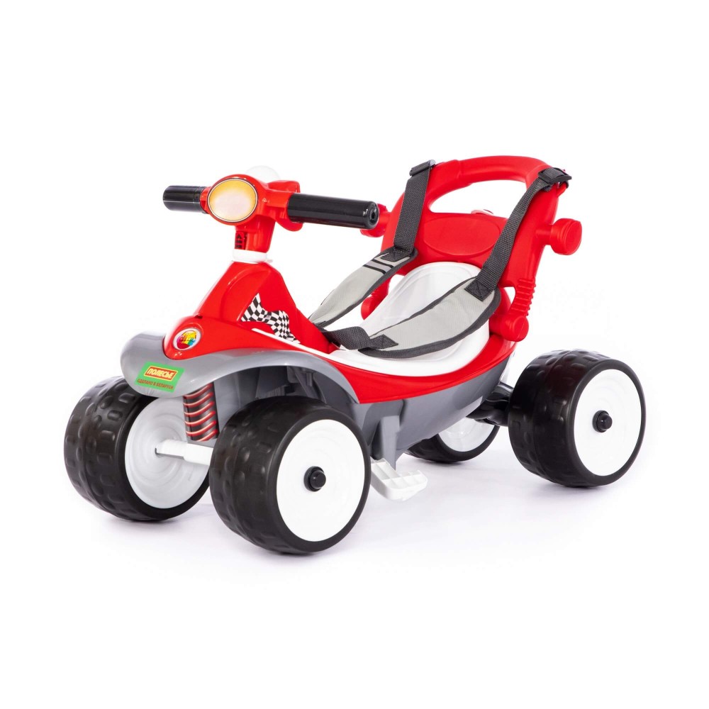 Игрушка обладает реалистичным дизайном. Каталка выполнена из высококачественного пластика, имеет эргономичную форму и низкую посадку, что обеспечивает комфортное перемещение. Дополнительную безопасность обеспечивают съёмные фиксирующие ремни.