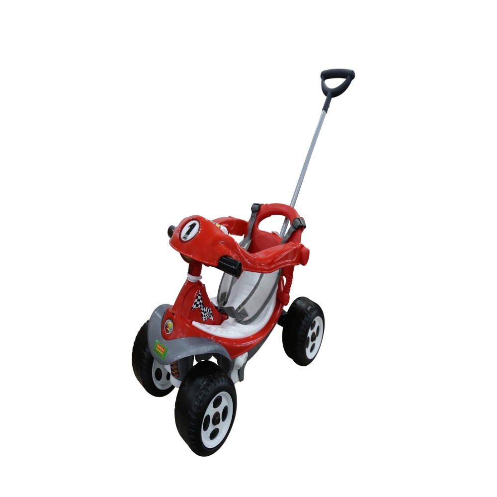 Игрушка оборудована съемной ручкой, помогающей осуществлять контроль направления перемещения ребенка, а также толкать ее родителям перед собой, как коляску.
