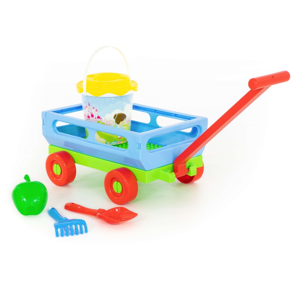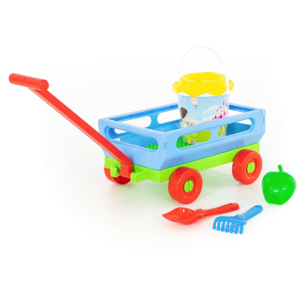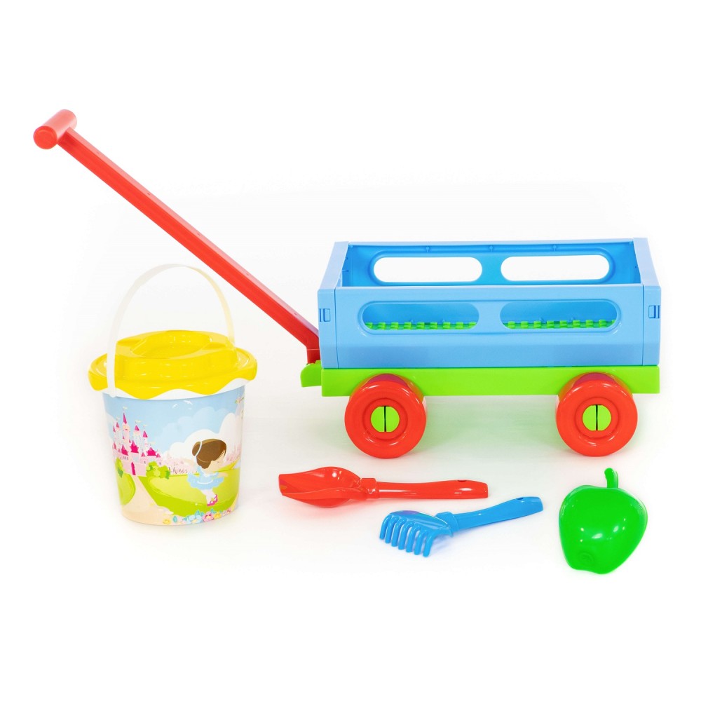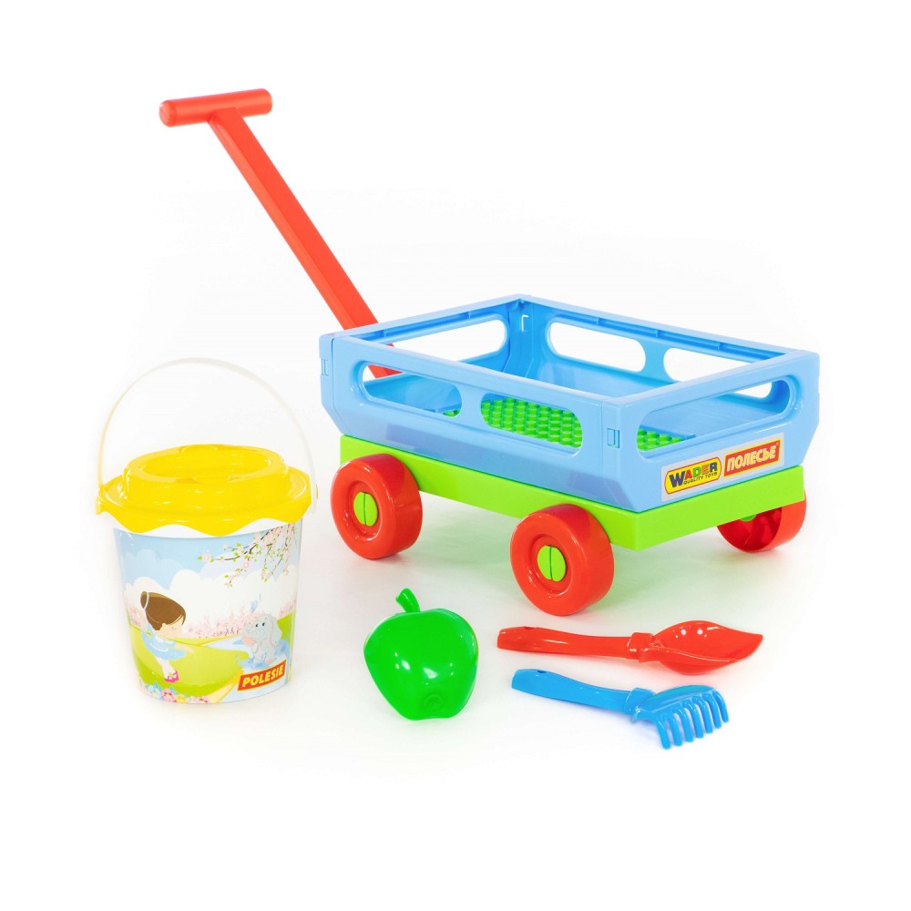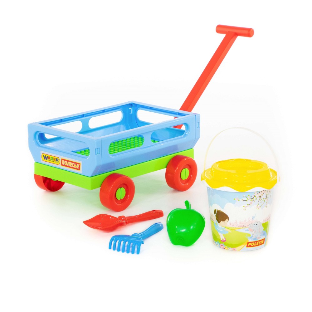 Данный набор от фабрики «Полесье» станет незаменимой игрушкой для весёлого времяпрепровождения малыша на свежем воздухе. Кроме того, тележка, в наборе с которой идёт: ведро с наклейкой, ситечко «Солнышко», лопатка № 5, грабельки № 5 и формочка «Фрукты», отлично подойдёт для игр в песочнице и дома. В ней будет удобно хранить и перевозить другие игрушки. Конструкция тележки предполагает наличие 4- колёс, также для удобства перемещения предусмотрена ручка. Все игрушки представлены в яркой расцветке. Они дополнят игру, сделают её ещё интереснее.