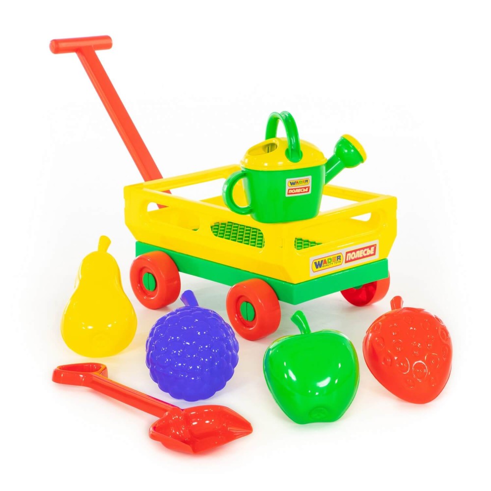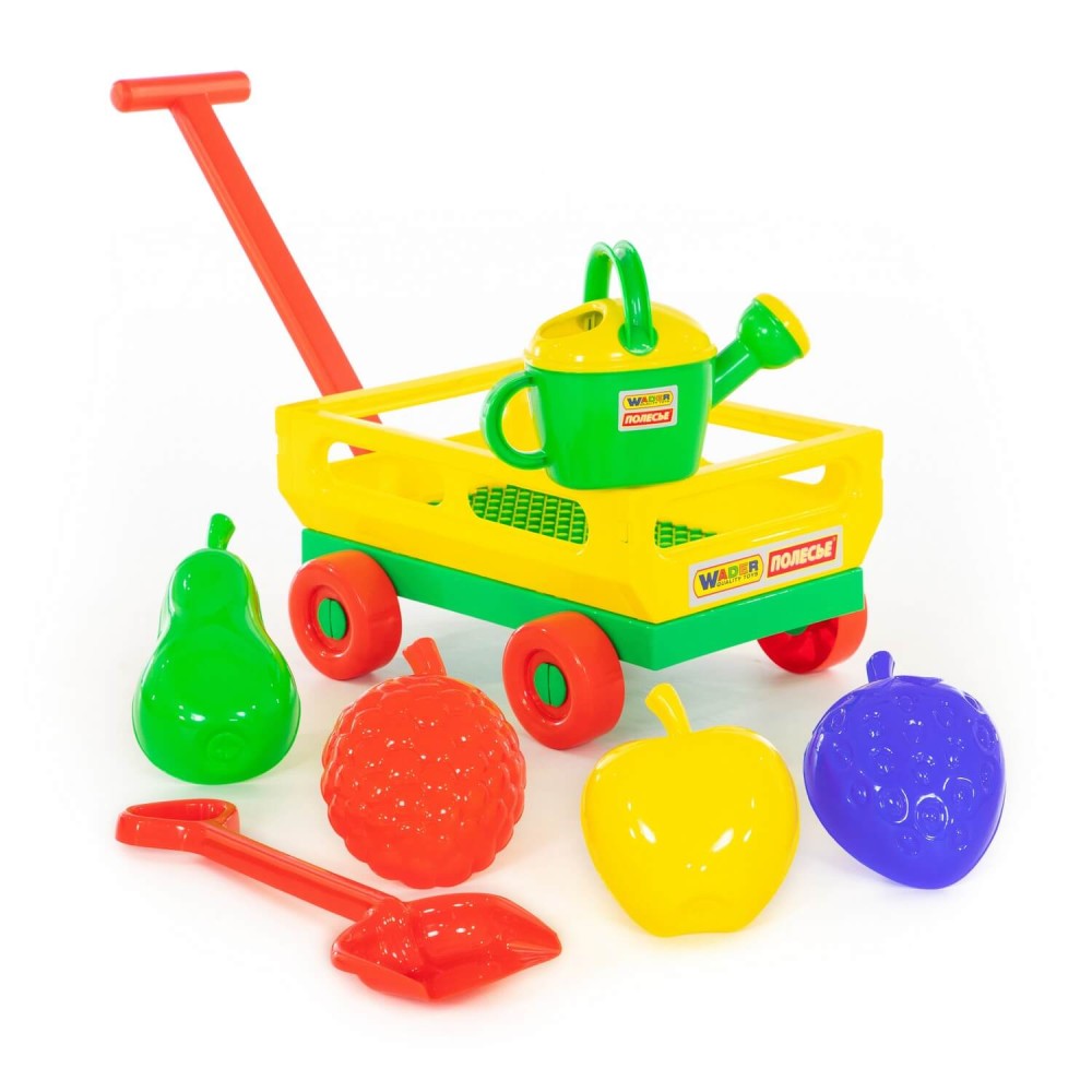 Данный набор от фабрики «Полесье» станет незаменимой игрушкой для весёлого времяпрепровождения малыша на свежем воздухе. Кроме того, тележка, в наборе с которой идёт: лопата средняя, формочки «Фрукты» большие 4 шт., лейка № 8, отлично подойдёт для игр в песочнице и дома. В ней будет удобно хранить и перевозить другие игрушки. Конструкция тележки предполагает наличие 4- колёс, также для удобства перемещения предусмотрена ручка. Все игрушки представлены в яркой расцветке. Они дополнят игру, сделают её ещё интереснее.