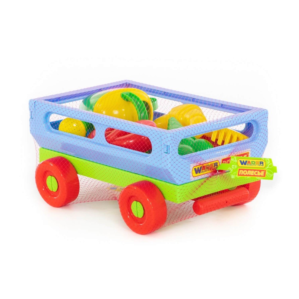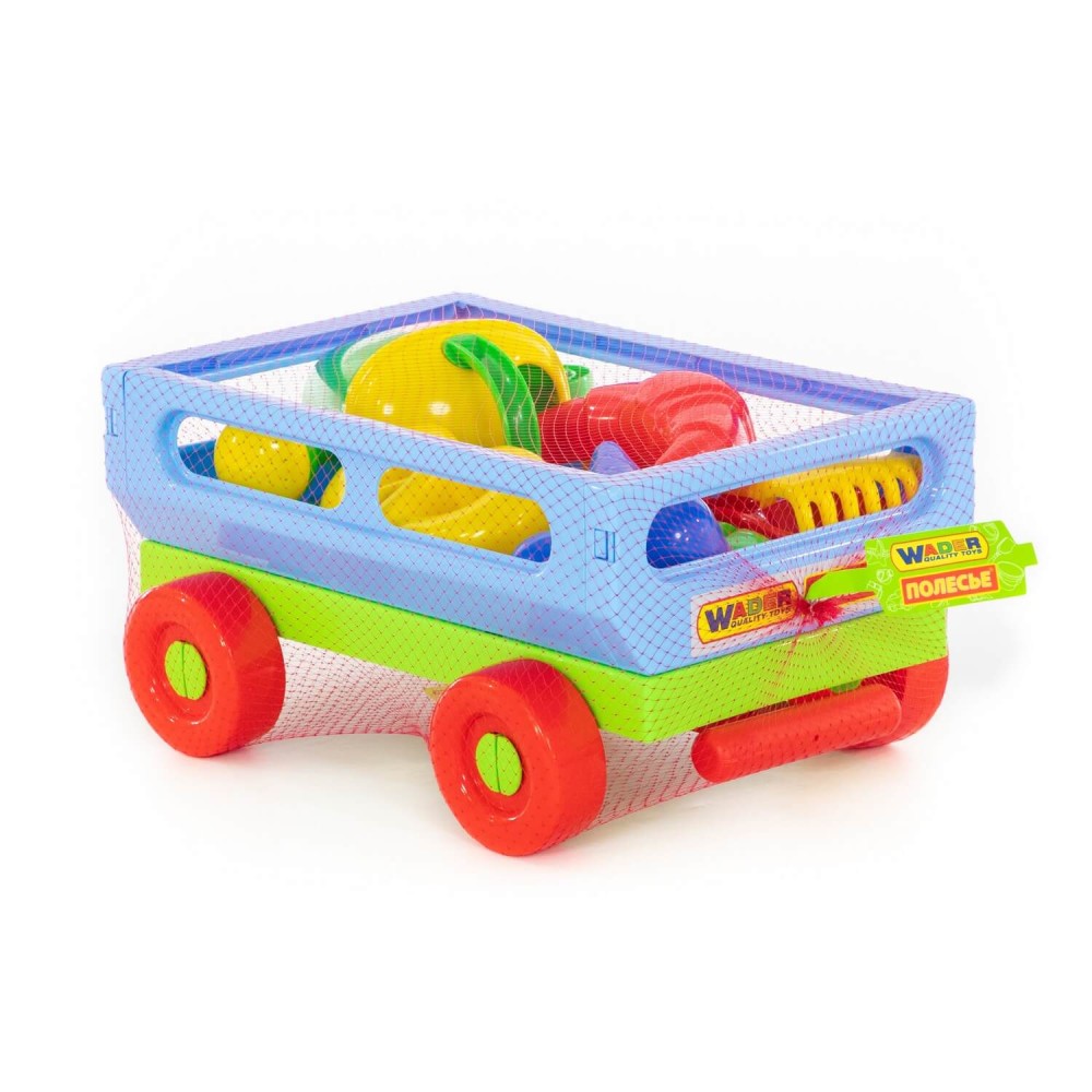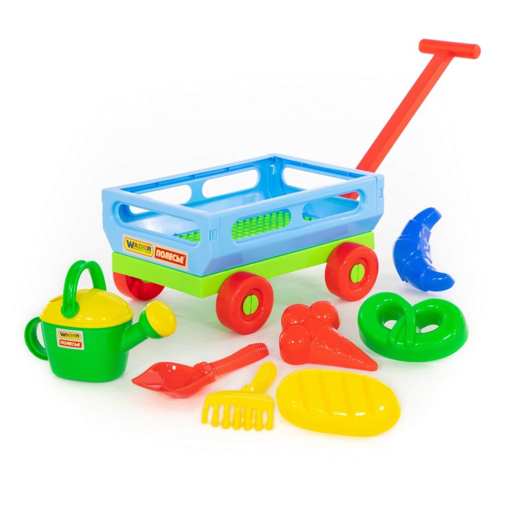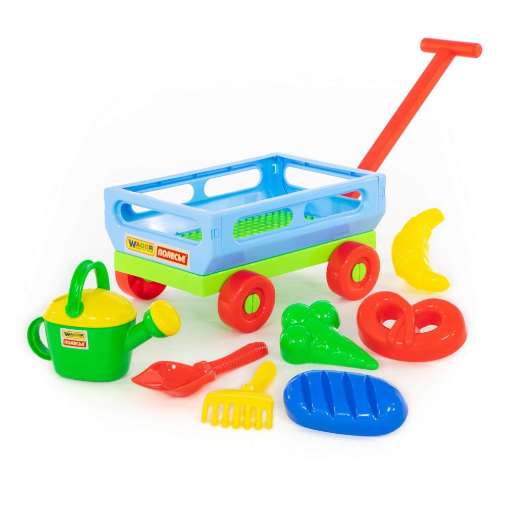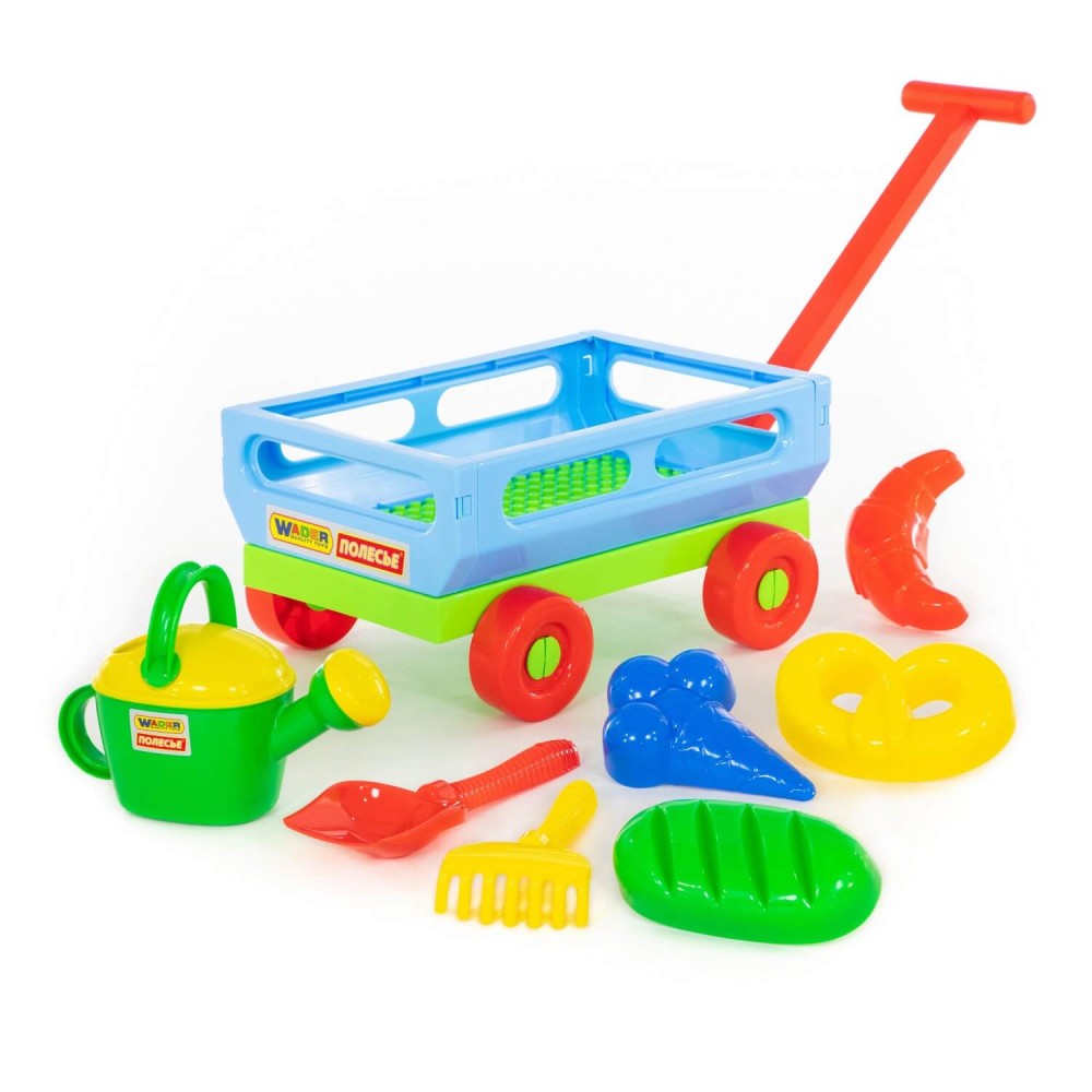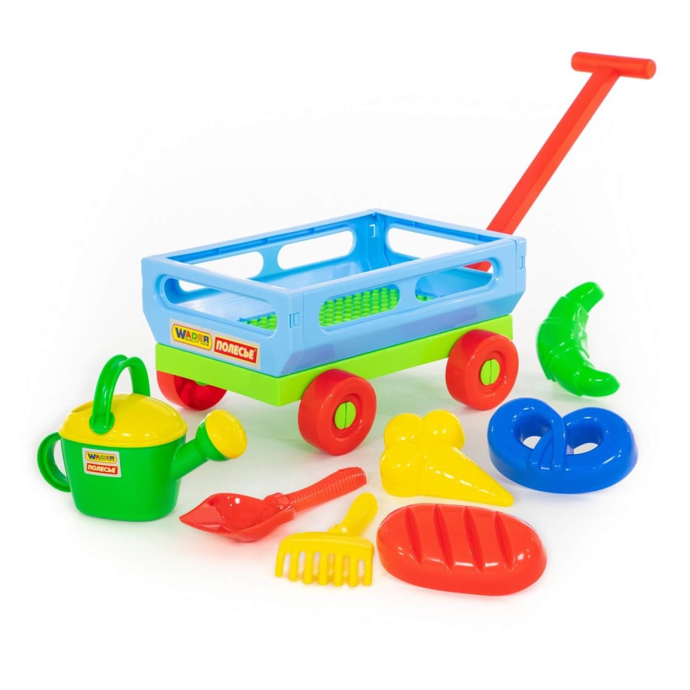 Данный набор от фабрики «Полесье» станет незаменимой игрушкой для весёлого времяпрепровождения малыша на свежем воздухе. Кроме того, тележка, в наборе с которой идёт: лопата № 6, грабли № 6, формочки (мороженое + пирожок + крендель + рогалик), лейка № 8, отлично подойдёт для игр в песочнице и дома. В ней будет удобно хранить и перевозить другие игрушки. Конструкция тележки предполагает наличие 4- колёс, также для удобства перемещения предусмотрена ручка. Все игрушки представлены в яркой расцветке. Они дополнят игру, сделают её ещё интереснее.