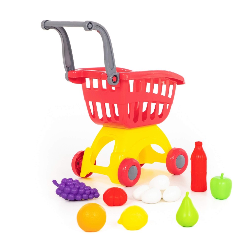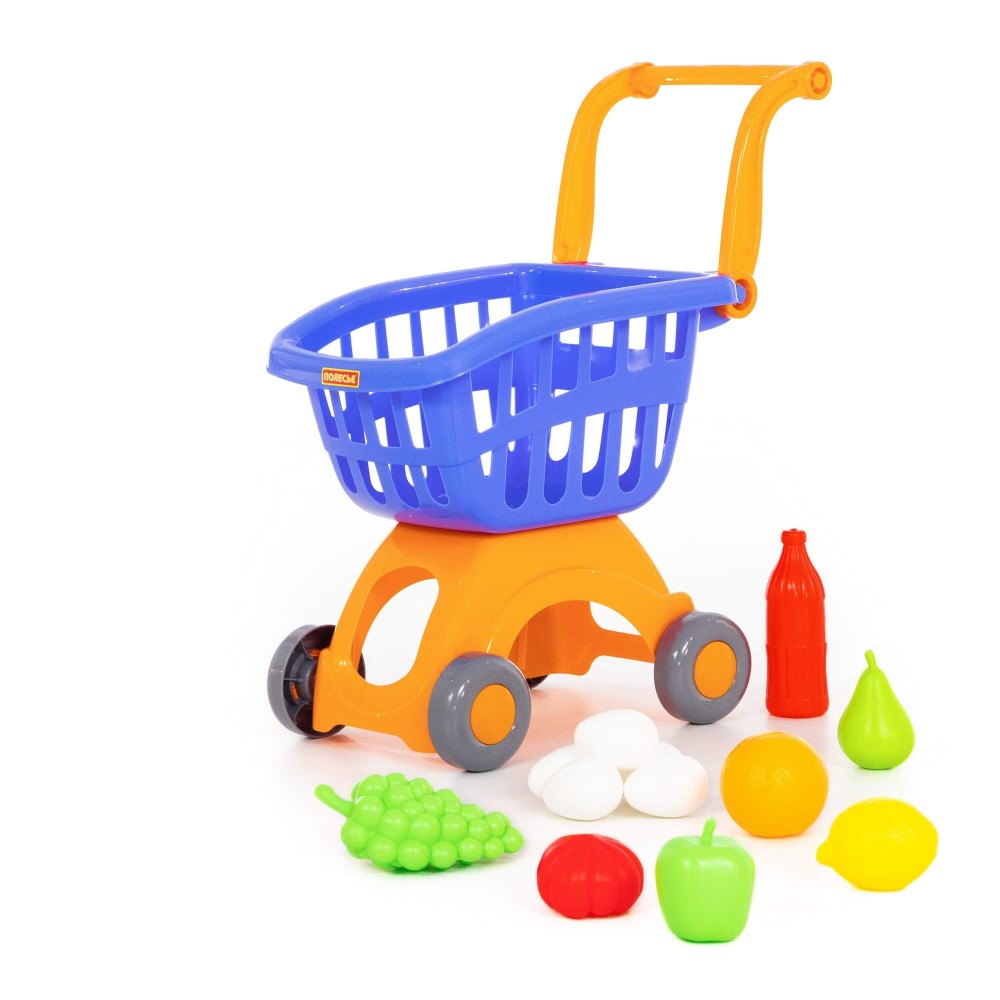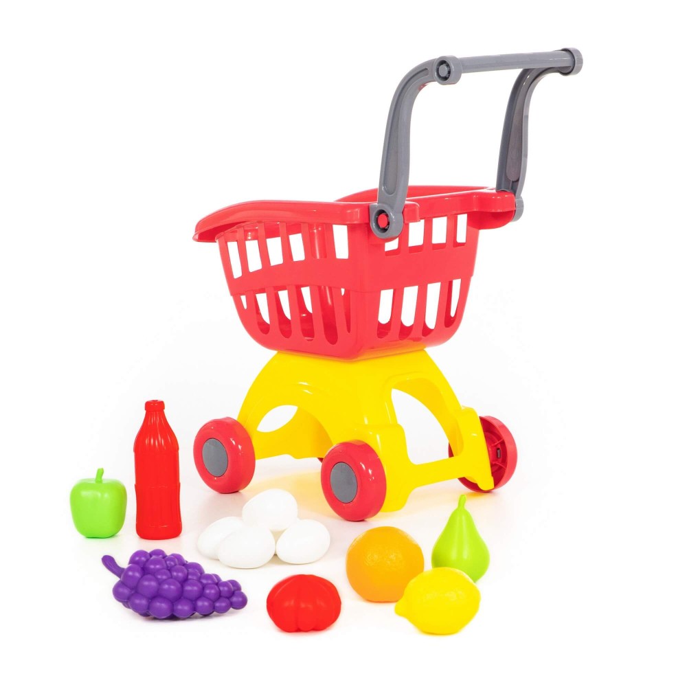 Тележка для маркета "Мини" + набор продуктов №14 (12 элементов) (в сеточке)