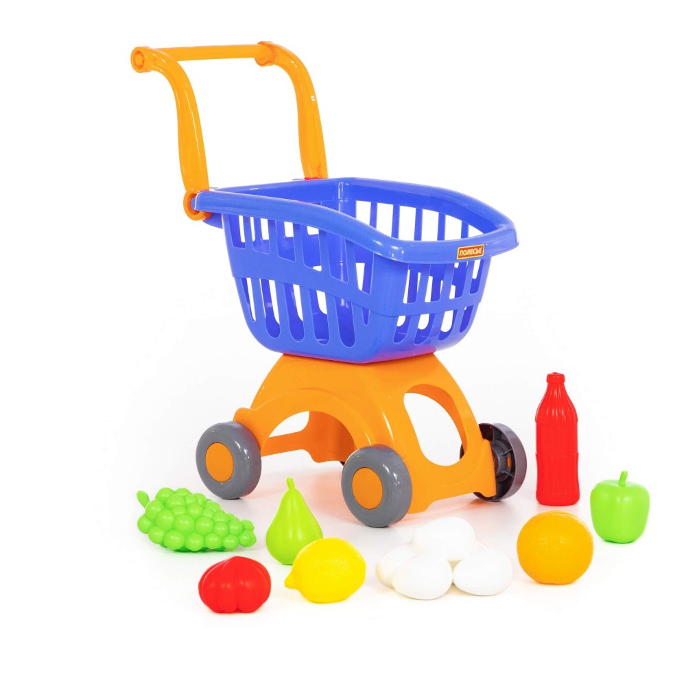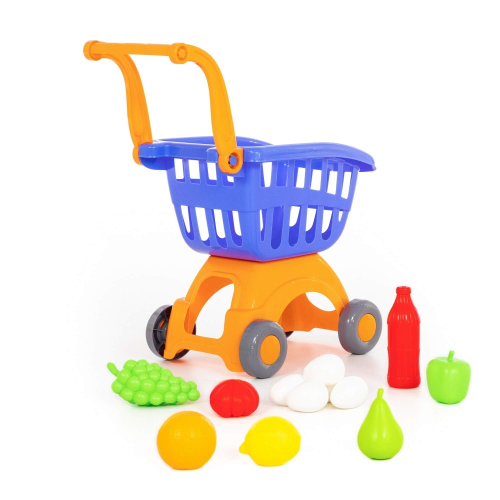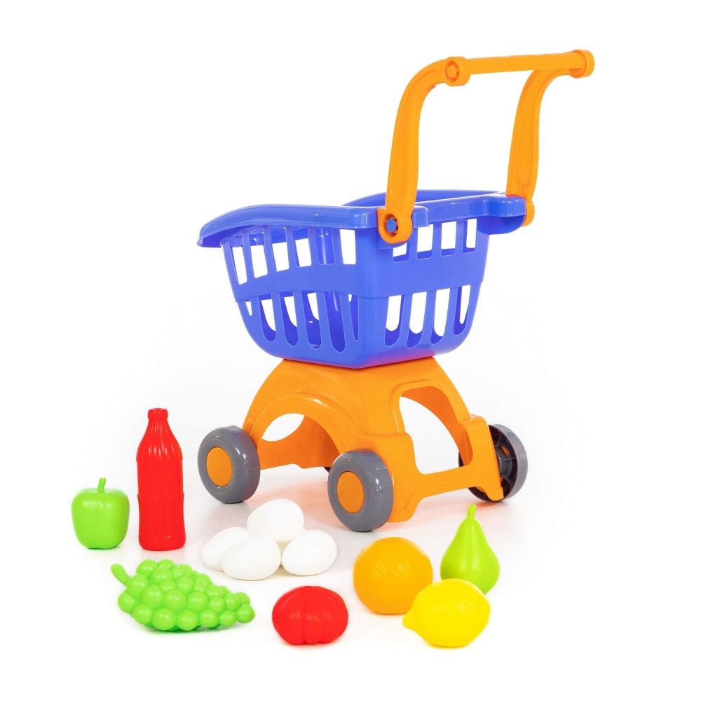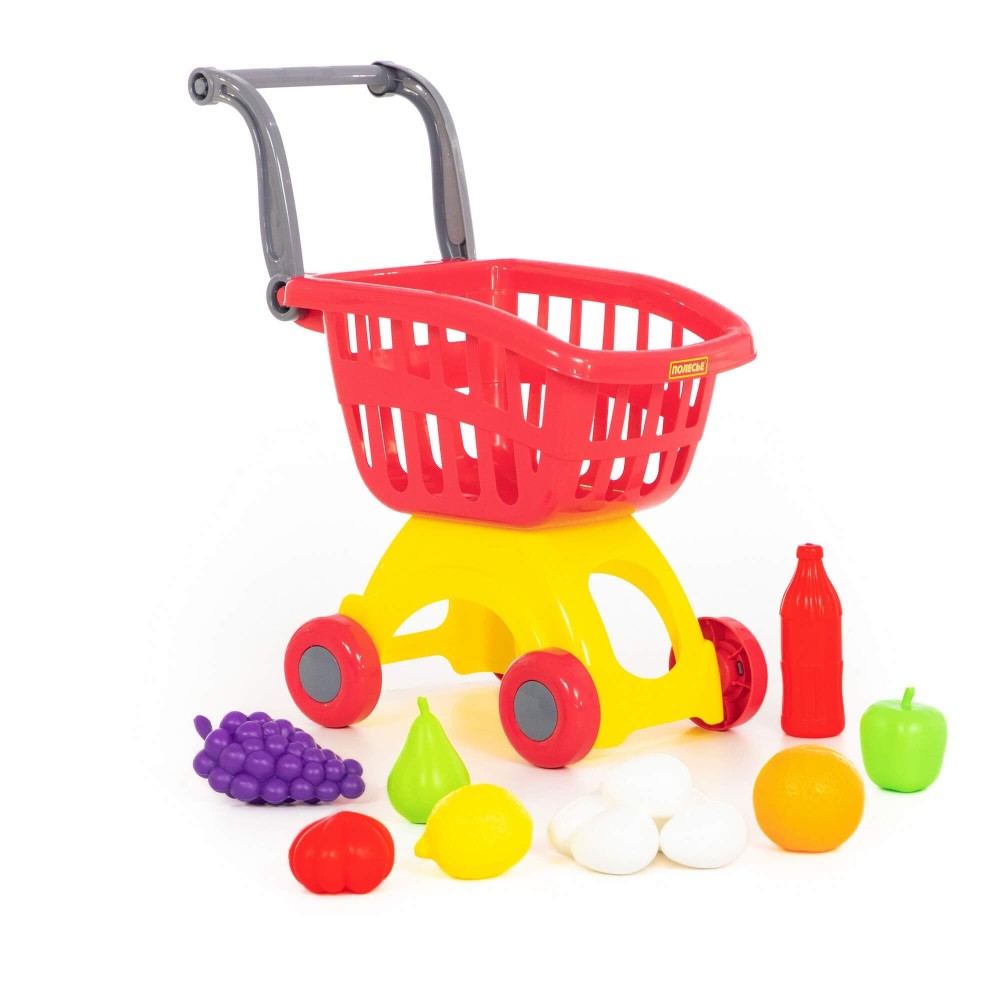 Тележка для маркета "Мини" + набор продуктов №14 (12 элементов) (в сеточке)