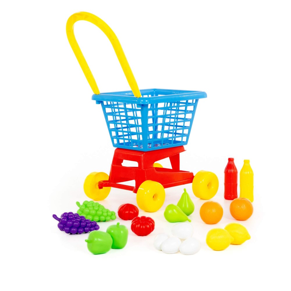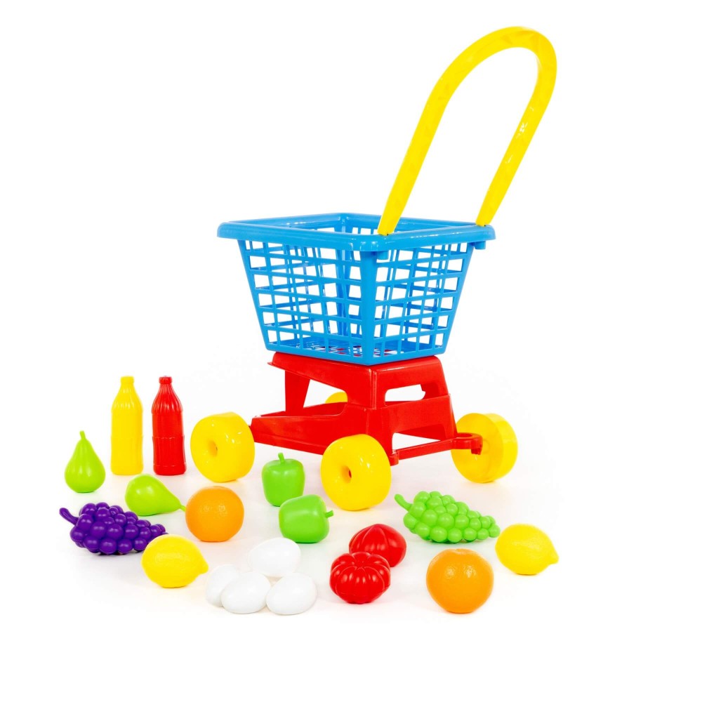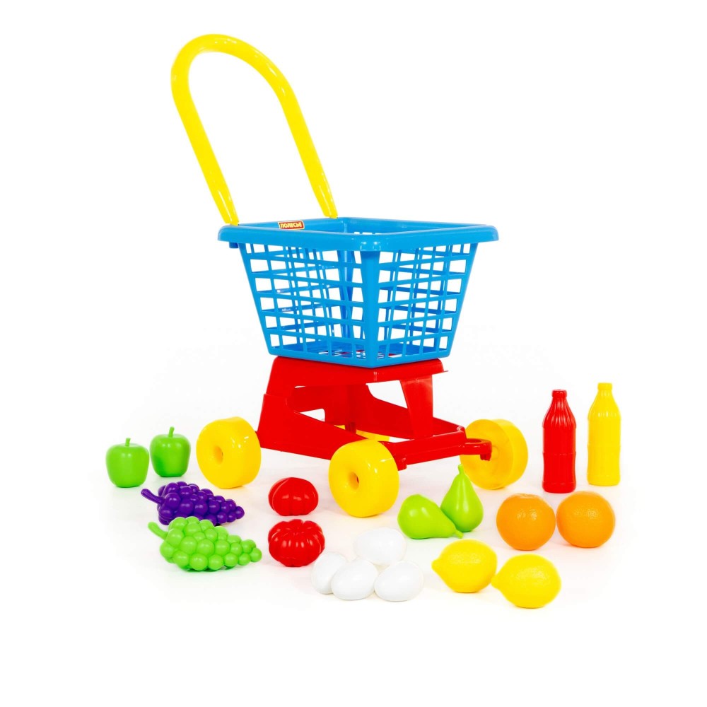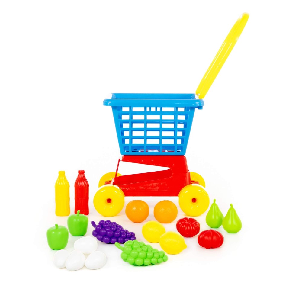 Тележка «Supermarket» № 1- это отличная универсальная тележка, которая подойдёт как мальчикам, так и девочкам. Мальчики с удовольствием загрузят в тележку автомобили, пистолеты, песочные принадлежности, а девочки посадят кукол, мягкие игрушки, посудку, формочки — в общем, все необходимое им для игры на улице, в песочнице, в соседней комнате. Конечно же, с тележкой можно играть в магазин и складывать в нее свои покупки. Для деток поменьше толкание тележки перед собой при ходьбе полезно для совершенствования координации движений, чувства равновесия. Малышам также нравится, как звучит трещотка, установленная на колесе. В набор входят продукты, с которыми игра станет еще интереснее и увлекательнее.