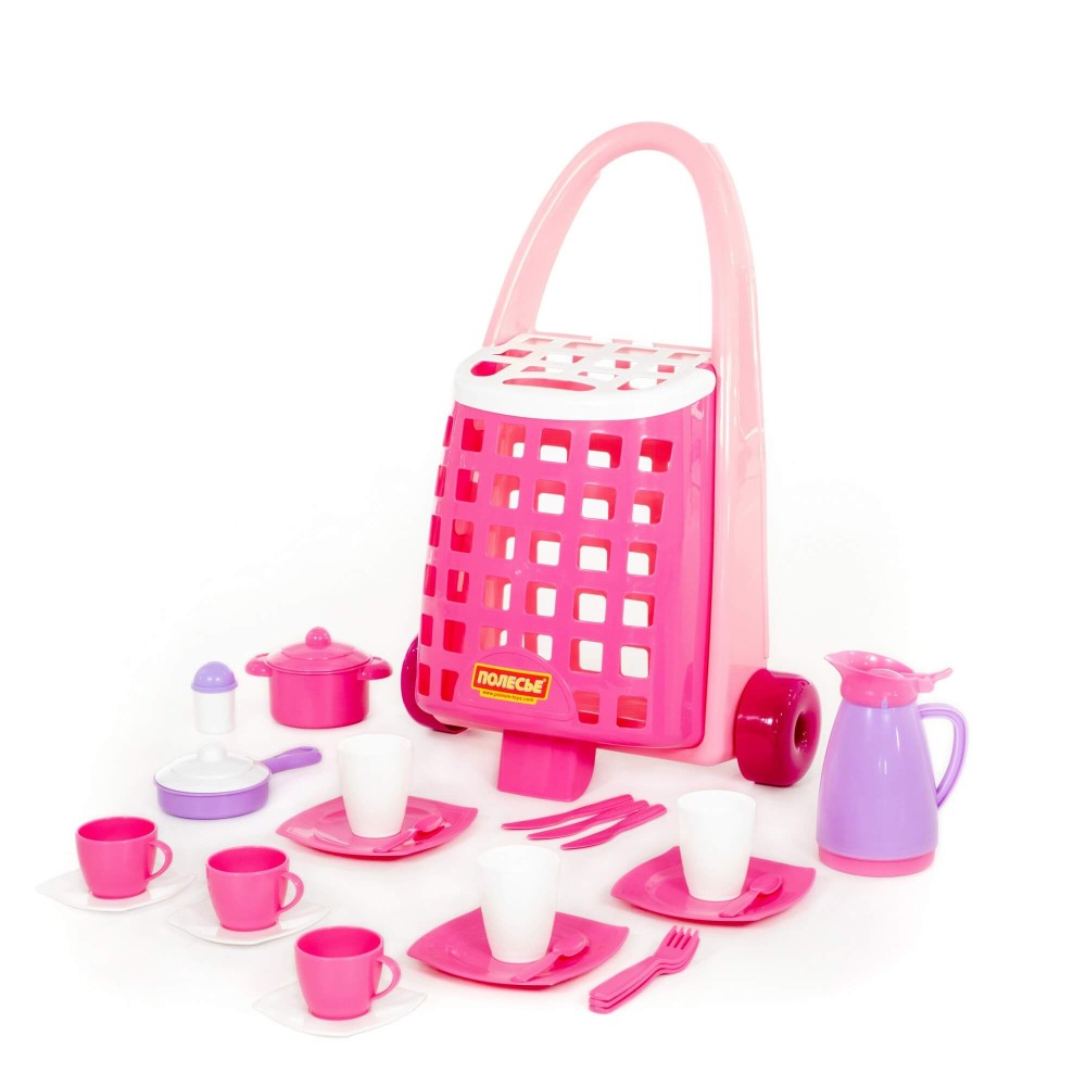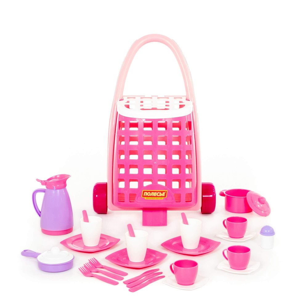 Тележки сегодня являются очень востребованным товаром для детей, ведь многие малыши обожают брать свои игрушки с собой. И тележка позволяет отлично справиться с этой необходимостью. Кроме того, она может служить в качестве места хранения любимых игрушек. В набор с «Забавной тележкой» от фабрики «Полесье» входит набор детской посуды (31 элемент). С ним игра становится ещё интереснее. Стоит отметить, что наличие тележки научит малыша собирать свои игрушки. Это во многом упростит задачу родителям!