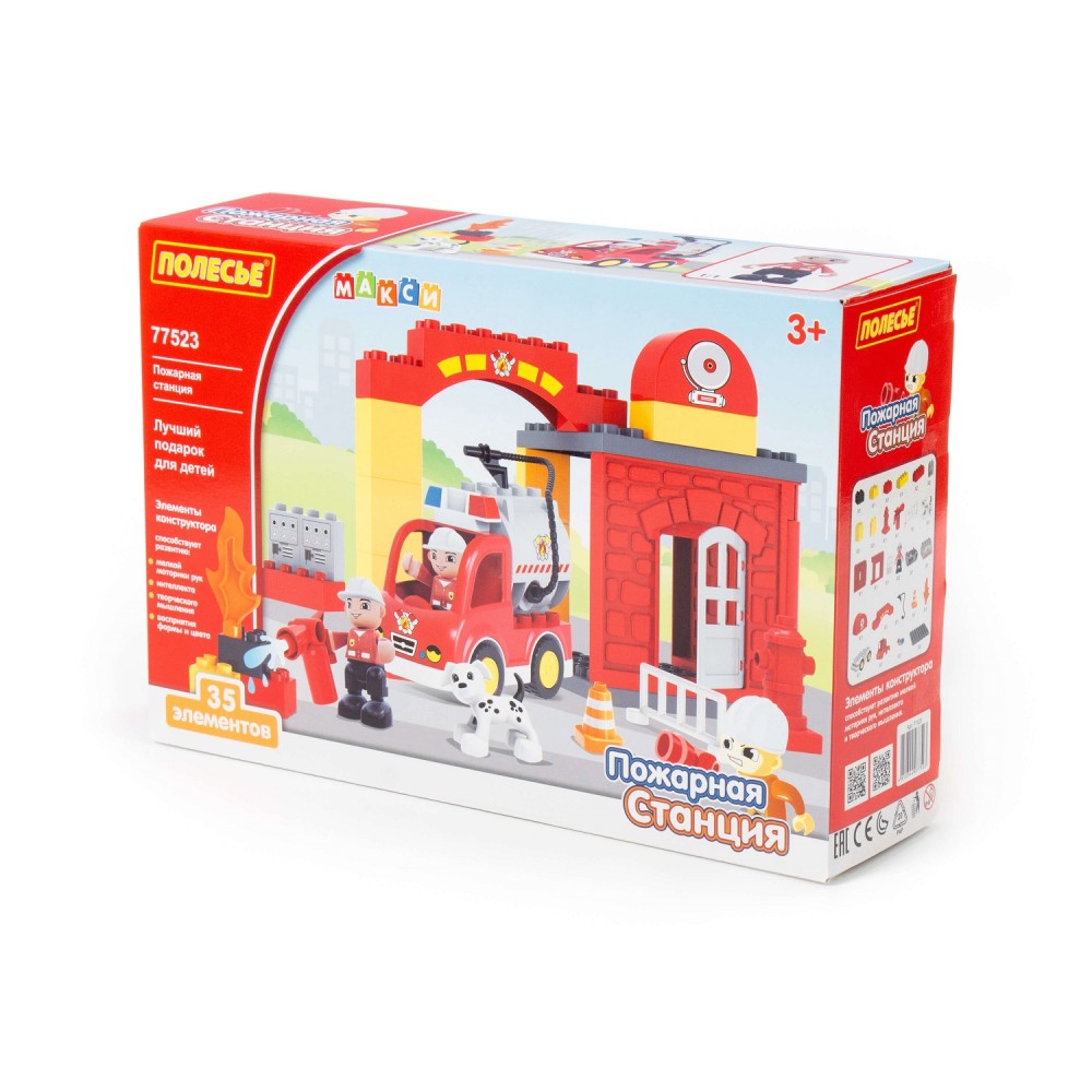 Конструктор "Макси"-"Пожарная станция" познакомит малыша с увлекательной профессией спасателей-пожарных, позволяя придумывать различные сценарии игры. В набор входит 35 элементов конструктора.