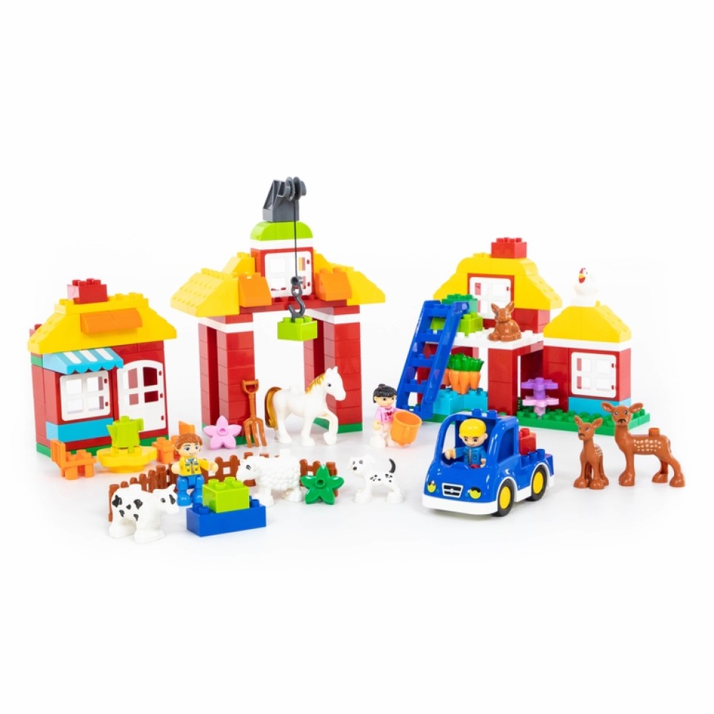 Конструктор "Макси" - "Весёлая ферма" познакомит малыша с увлекательным миром животных и ведением домашнего хозяйства, позволяя придумывать различные игровые сценарии. В набор входит 156 элементов конструктора.