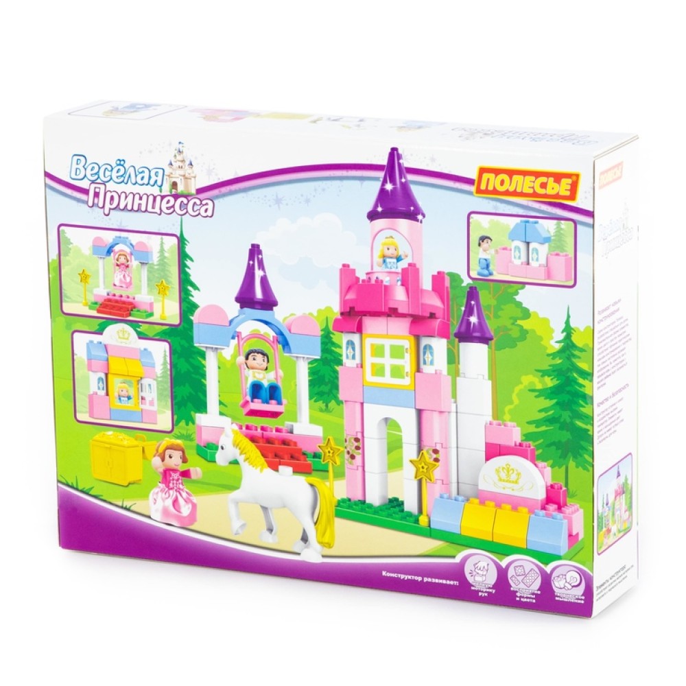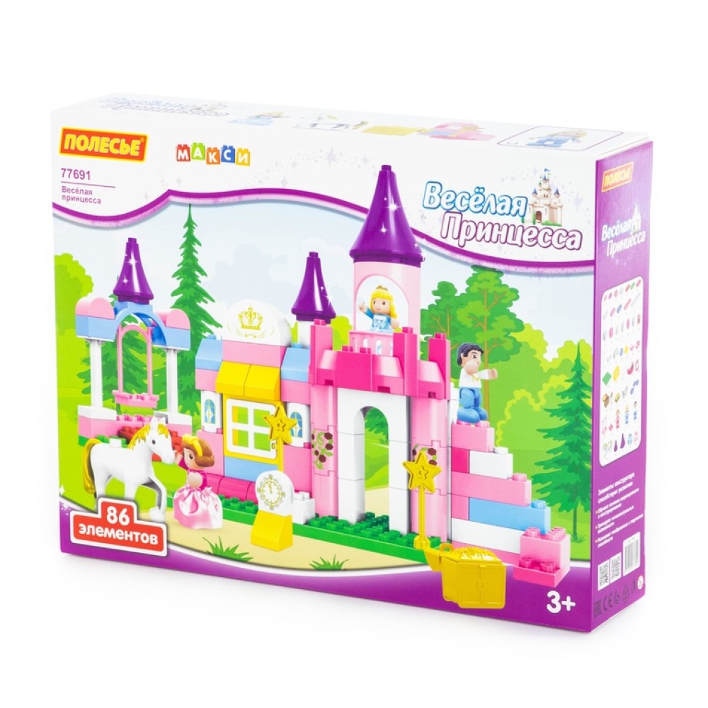 Конструктор "Макси" - "Весёлая принцесса" познакомит малыша со сказочным миром принцесс и принцев, позволяя придумывать различные игровые сценарии. В набор входит 86 элементов конструктора.