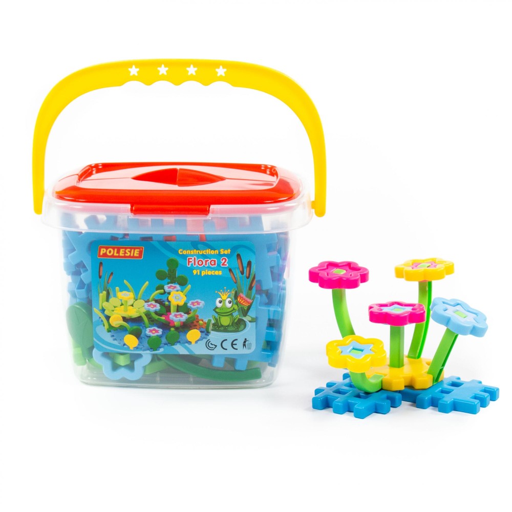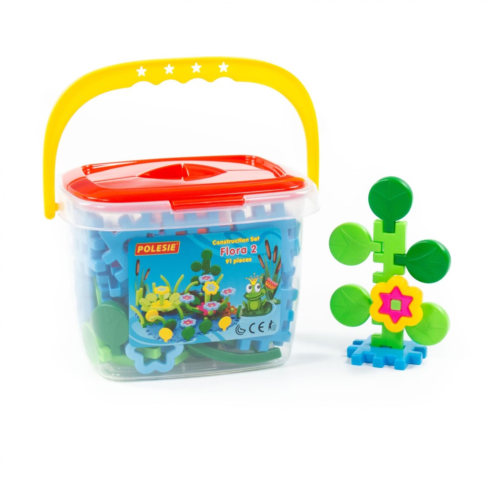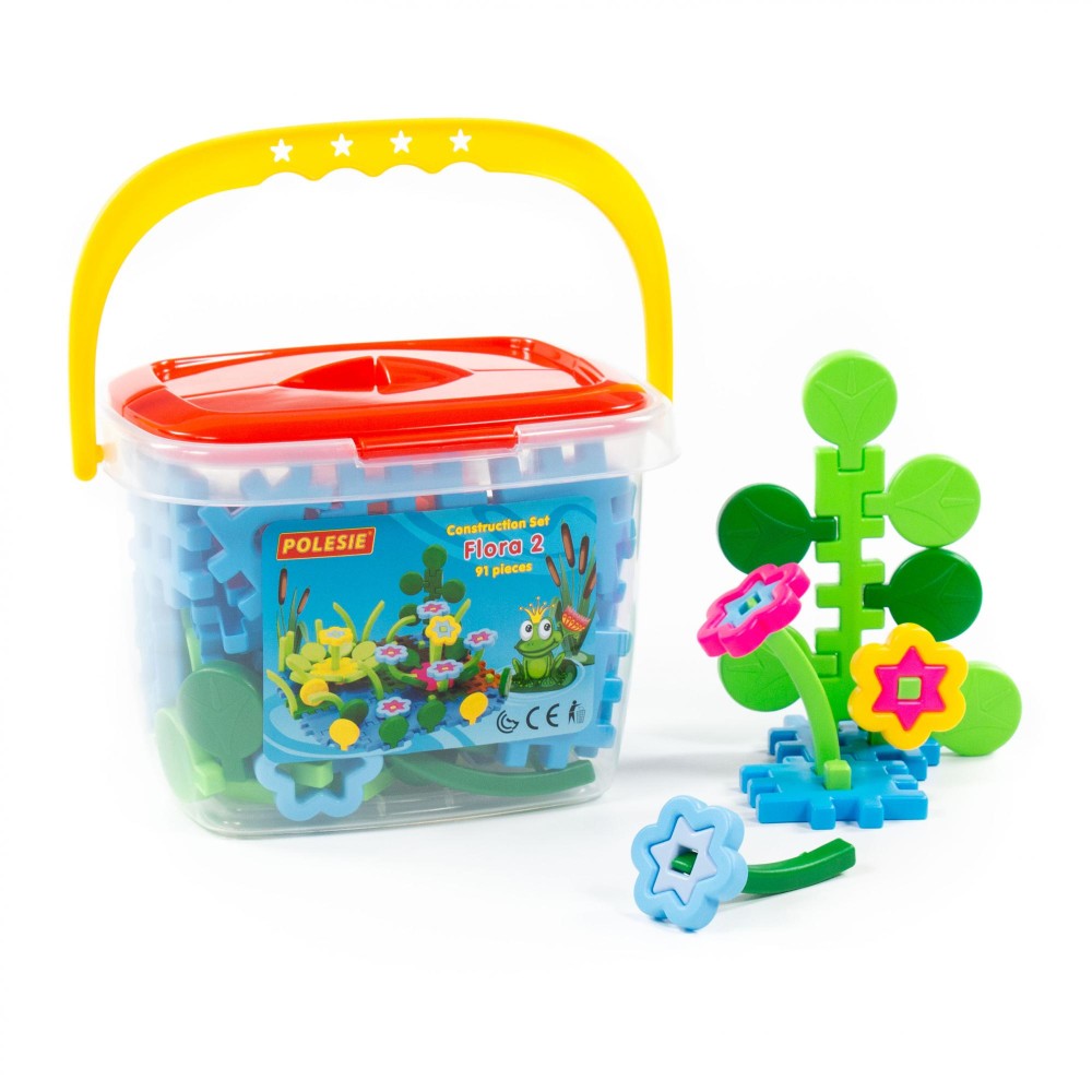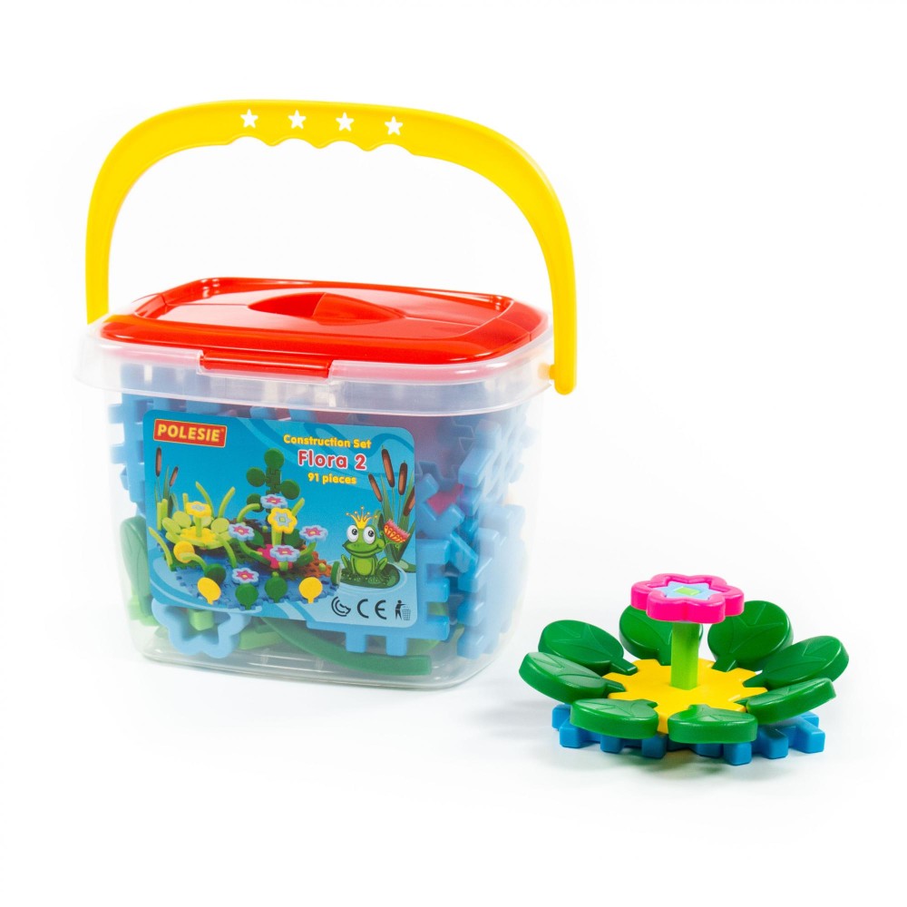 С конструктором «Флора» от фабрики «Полесье» малыш сможет создать своими руками мир цветов и растений. Благодаря ярким деталям (разных форм и размеров), можно составлять разнообразные композиции и панно. Что «выращивать» в импровизированном саду? — подскажет воображение ребёнка. Игра с конструктором развивает мелкую моторику рук, самостоятельность и усидчивость, пробуждает у малыша любопытство к миру растений и раскрывает его творческий потенциал. В комплекте 91 элемент. Конструктор компактно упакован в ведёрко, что удобно для хранения и перемещения элементов. С данной серией совместимы другие серии конструкторов фабрики «Полесье»: Фермер, Семья, Зоопарк, Луна-парк и Смешарики.