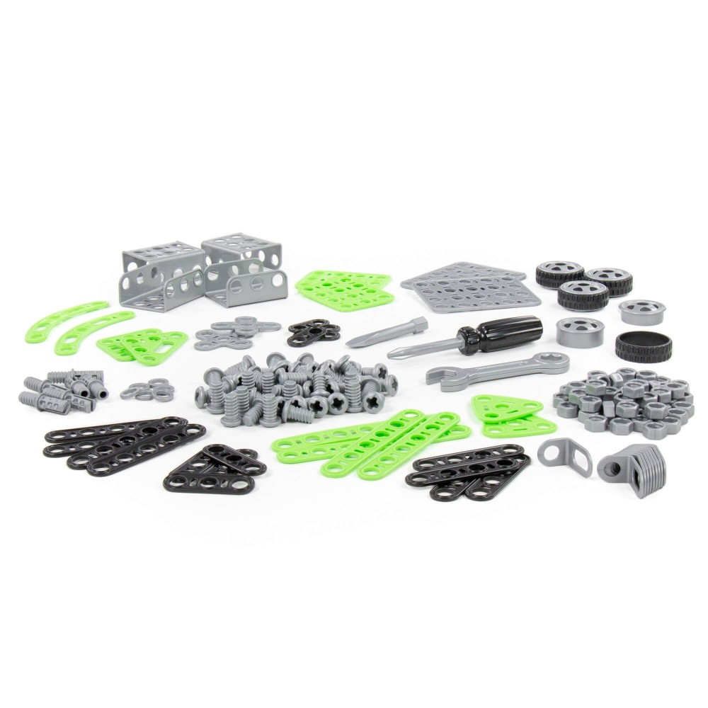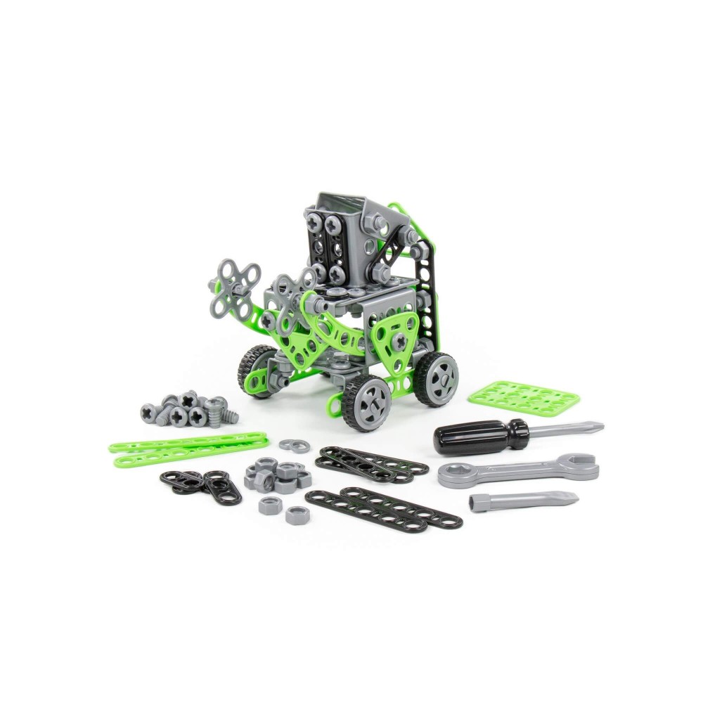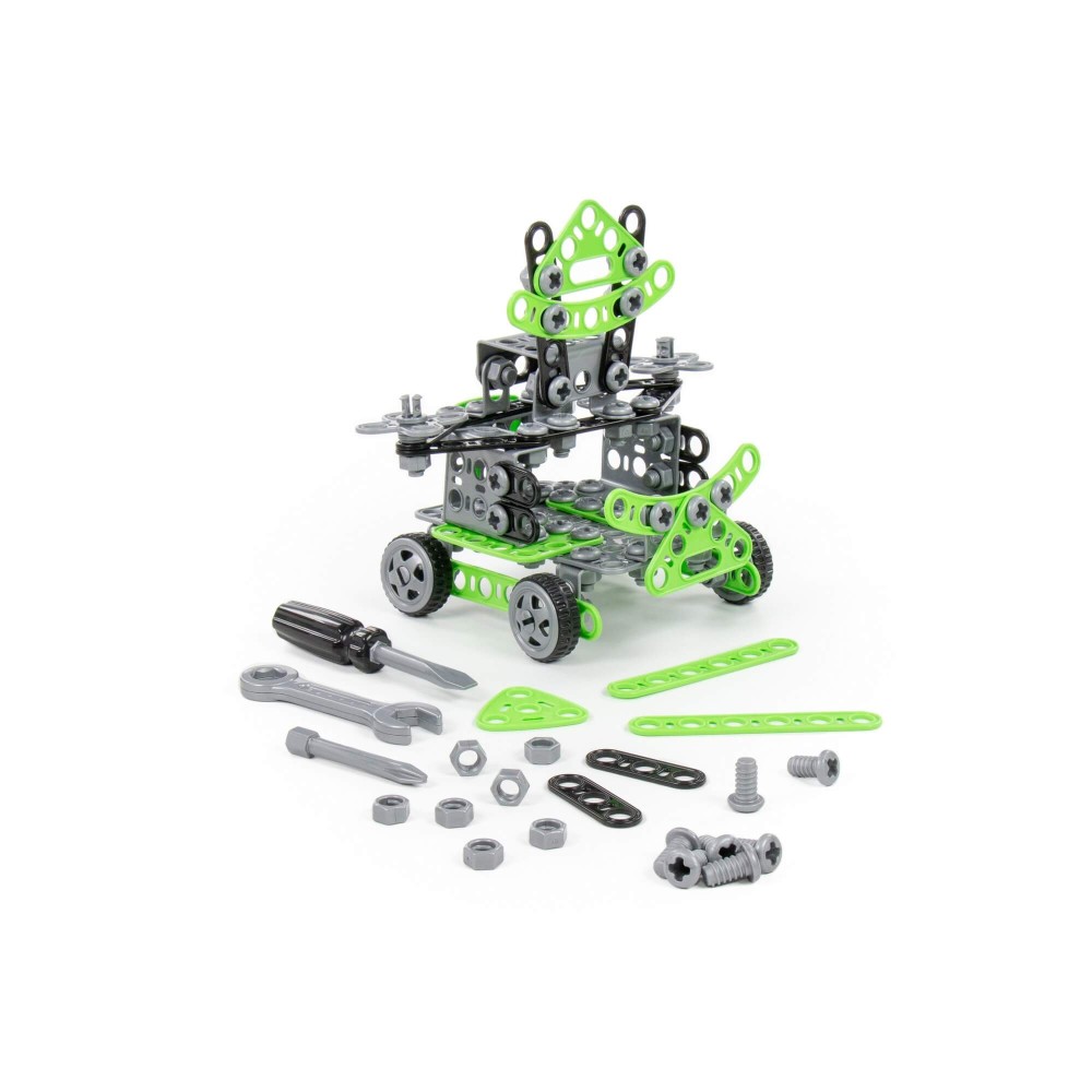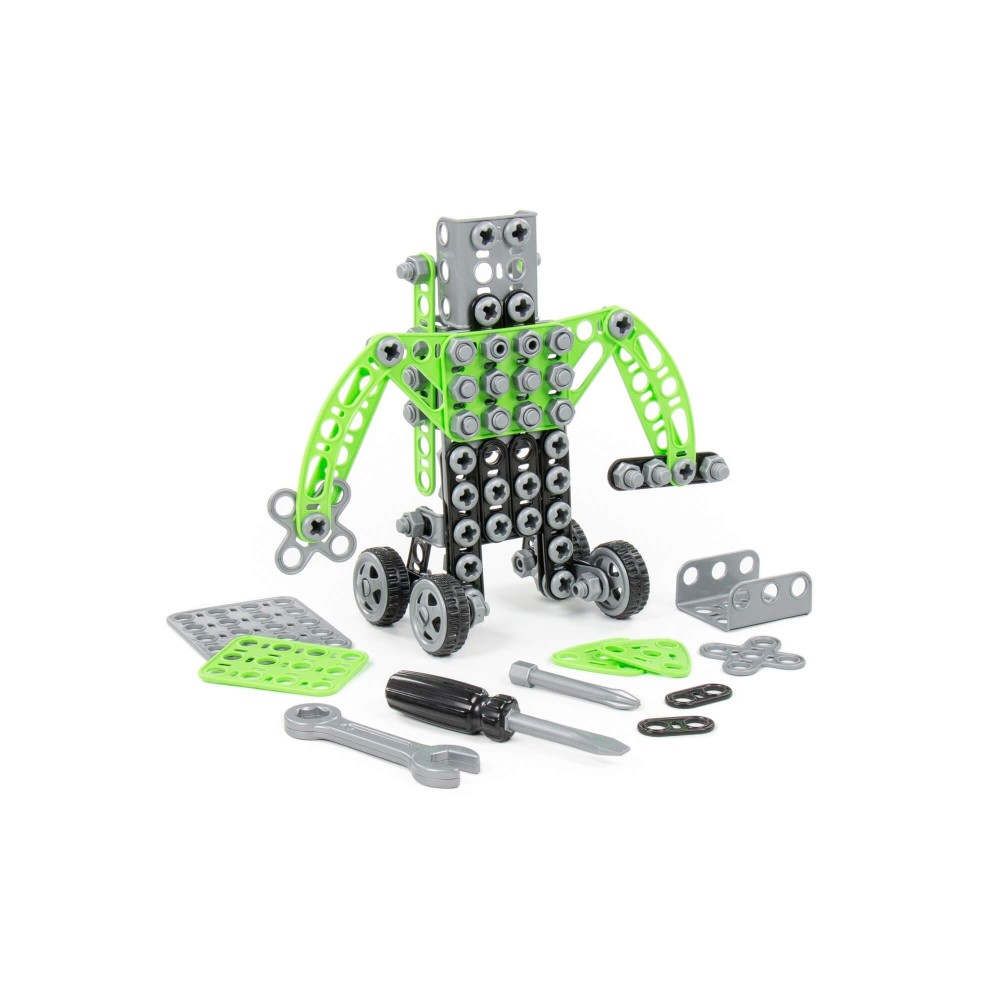 Конструктор «Изобретатель» (182 элемента) (в коробке) от фабрики «Полесье» создан специально для маленьких изобретателей. Элементы выполнены в виде планок с отверстиями. Планки соединяются между собой при помощи болтов и гаек. В комплект входит подробная инструкция, следуя которой можно создать модели, представленные на упаковке игрушки.