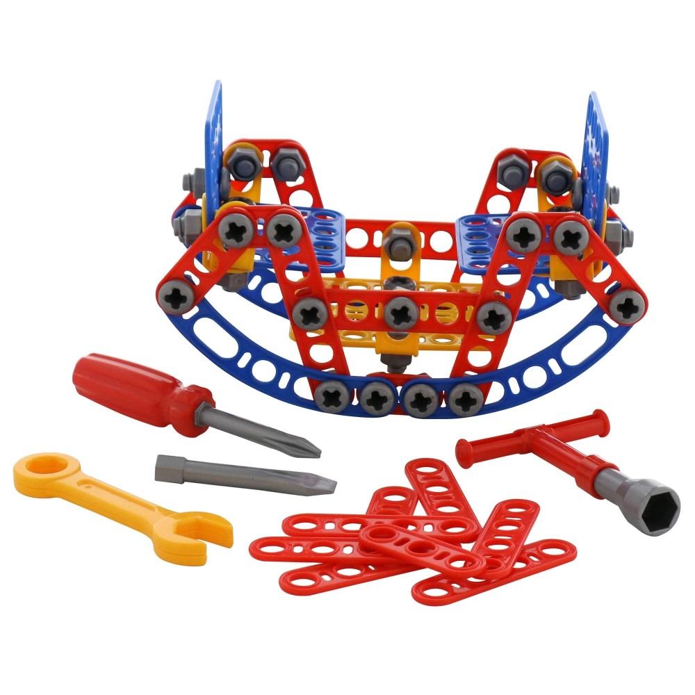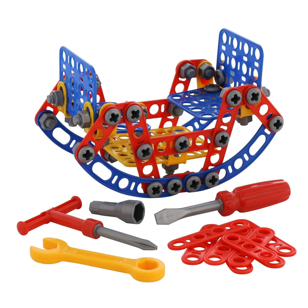 Конструктор «Изобретатель» — «Качели № 2» (121 элемент) от фабрики «Полесье» отличается особым функционалом. Элементы выполнены в виде планок, пазы которых соединяются при помощи болтов и гаек. В комплект конструктора входят подробные инструкции, следуя которым можно собрать модели, представленные на упаковке игрушки. При этом ребёнок будет развивать усидчивость и внимание. Игра с данной серией конструкторов не ограничивается сборкой моделей по инструкции, дети всегда могут попробовать создать что-то новое, используя свою фантазию, пространственное и ассоциативное мышление. Игры с конструктором могут определить будущую профессию малыша, раскрыв в нём творческий потенциал. Все конструкторы серии «Изобретатель» совершенно разные, поэтому из них можно собрать целую коллекцию, которая превратится в творческую мастерскую Вашего ребёнка!