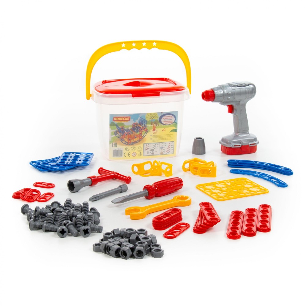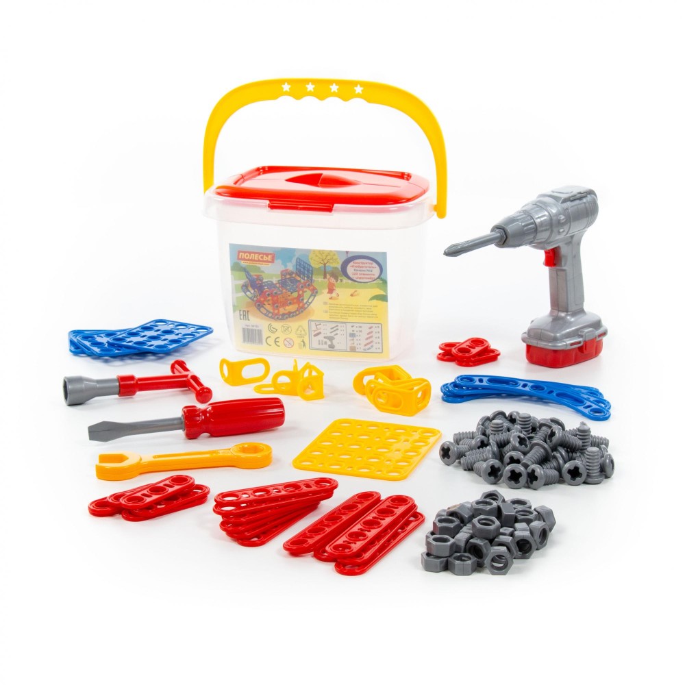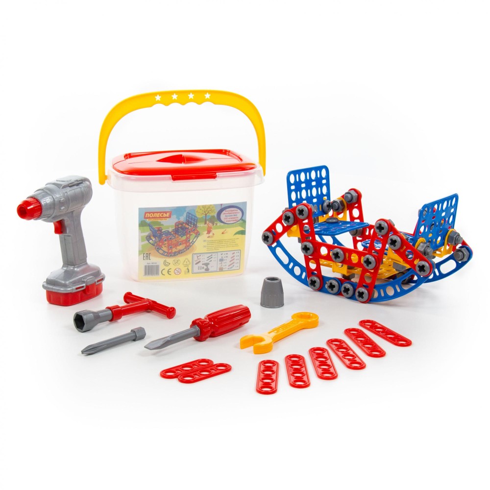 Конструктор "Изобретатель" - "Качели №2" (122 элемента) + шуруповёрт (в ведёрке)