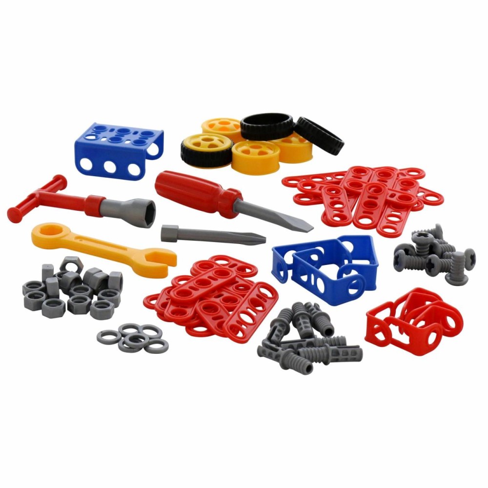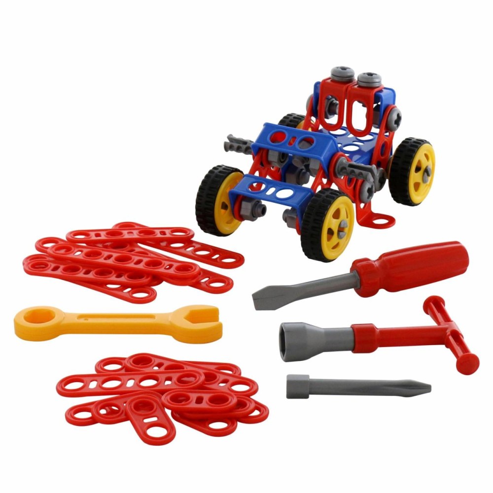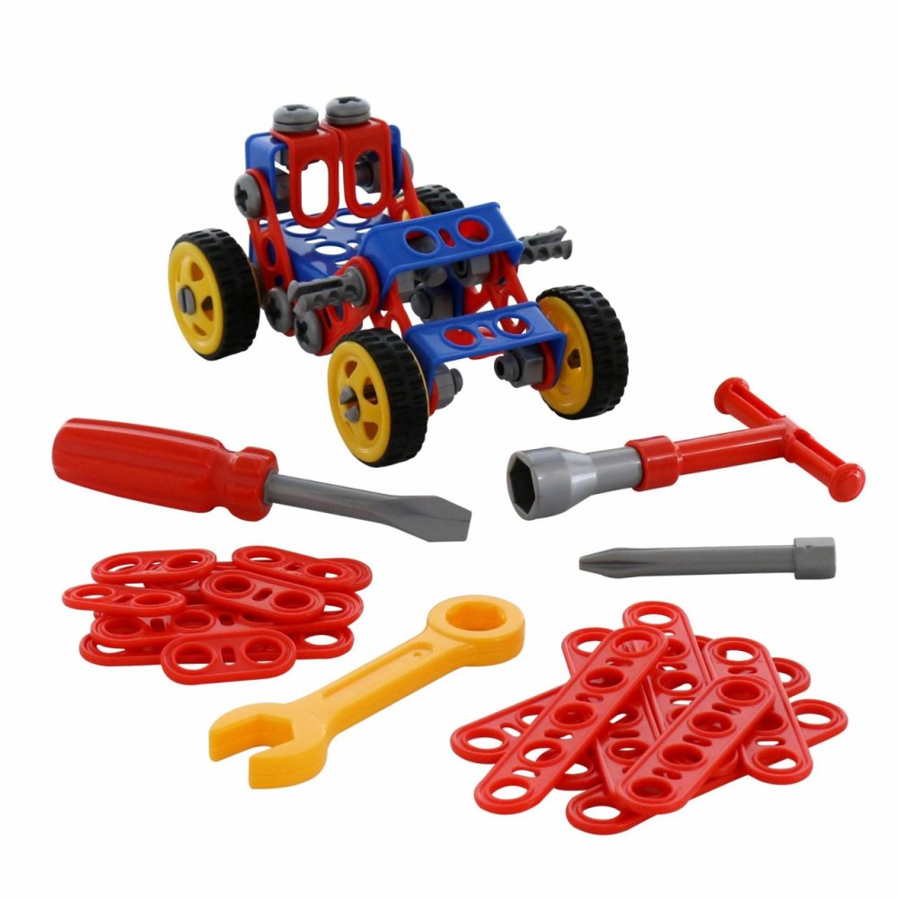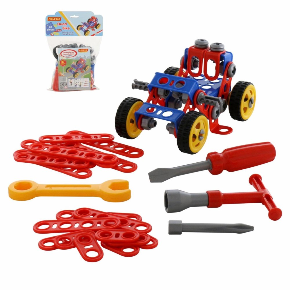 Конструктор «Изобретатель» — «Квадроцикл № 1» (87 элементов) от фабрики «Полесье» отличается особым функционалом. Элементы выполнены в виде планок, пазы которых соединяются при помощи болтов и гаек. В комплект конструктора входят подробные инструкции, следуя которым можно собрать модели, представленные на упаковке игрушки. При этом ребёнок будет развивать усидчивость и внимание. Игра с данной серией конструкторов не ограничивается сборкой моделей по инструкции, дети всегда могут попробовать создать что-то новое, используя свою фантазию, пространственное и ассоциативное мышление. Игры с конструктором могут определить будущую профессию малыша, раскрыв в нём творческий потенциал. Все конструкторы серии «Изобретатель» совершенно разные, поэтому из них можно собрать целую коллекцию, которая превратится в творческую мастерскую Вашего ребёнка!