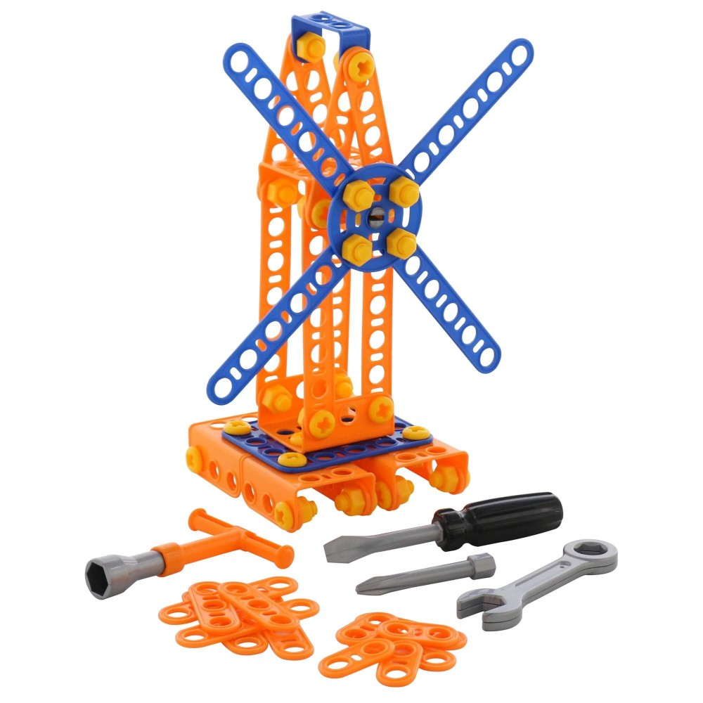 Конструктор «Изобретатель» — «Мельница № 1» (105 элементов) от фабрики «Полесье» отличается особым функционалом. Элементы выполнены в виде планок, пазы которых соединяются при помощи болтов и гаек. В комплект конструктора входят подробные инструкции, следуя которым можно собрать модели, представленные на упаковке игрушки. При этом ребёнок будет развивать усидчивость и внимание. Игра с данной серией конструкторов не ограничивается сборкой моделей по инструкции, дети всегда могут попробовать создать что-то новое, используя свою фантазию, пространственное и ассоциативное мышление. Игры с конструктором могут определить будущую профессию малыша, раскрыв в нём творческий потенциал. Все конструкторы серии «Изобретатель» совершенно разные, поэтому из них можно собрать целую коллекцию, которая превратится в творческую мастерскую Вашего ребёнка!