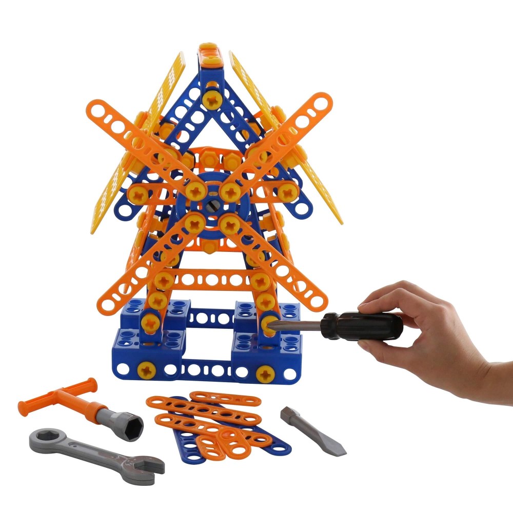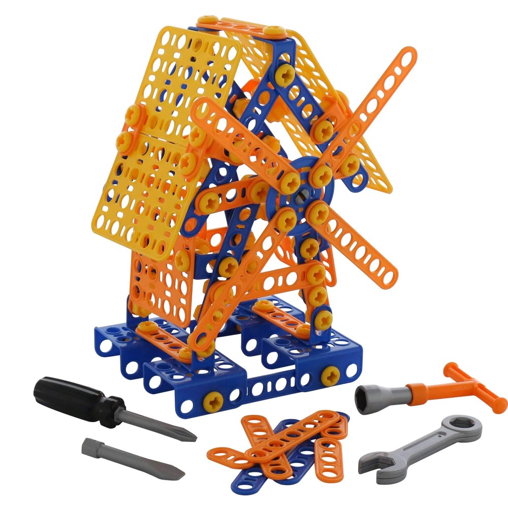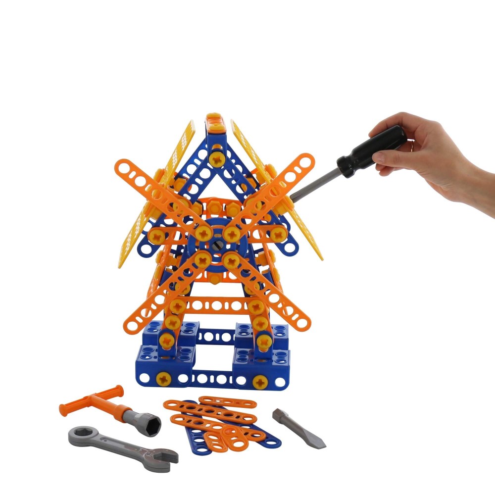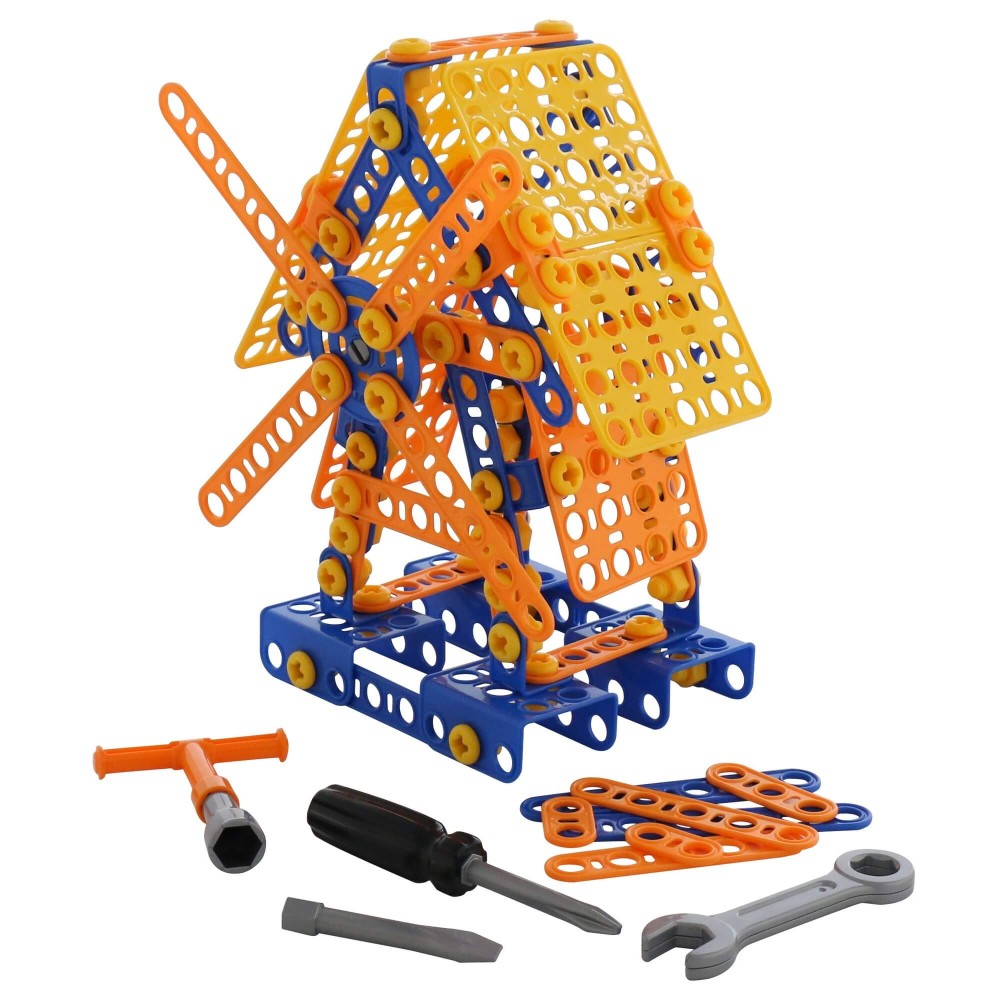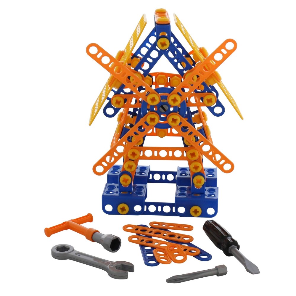 Конструктор «Изобретатель» — «Мельница № 2» (195 элементов) от фабрики «Полесье» отличается особым функционалом. Элементы выполнены в виде планок, пазы которых соединяются при помощи болтов и гаек. В комплект конструктора входят подробные инструкции, следуя которым можно собрать модели, представленные на упаковке игрушки. При этом ребёнок будет развивать усидчивость и внимание. Игра с данной серией конструкторов не ограничивается сборкой моделей по инструкции, дети всегда могут попробовать создать что-то новое, используя свою фантазию, пространственное и ассоциативное мышление. Игры с конструктором могут определить будущую профессию малыша, раскрыв в нём творческий потенциал. Все конструкторы серии «Изобретатель» совершенно разные, поэтому из них можно собрать целую коллекцию, которая превратится в творческую мастерскую Вашего ребёнка!