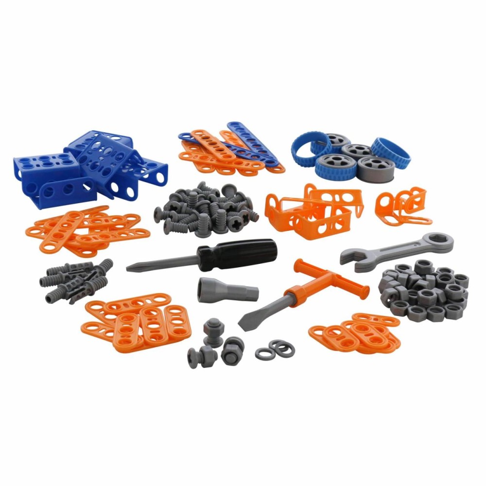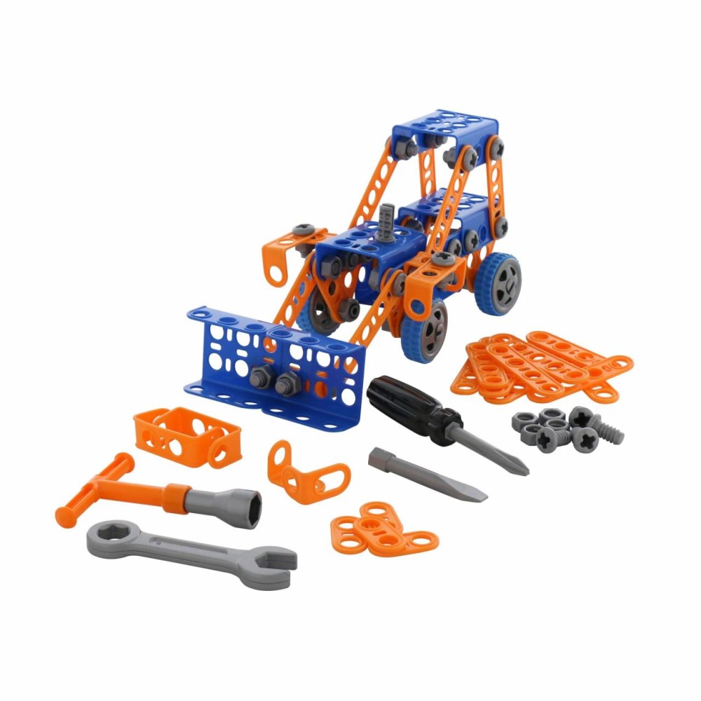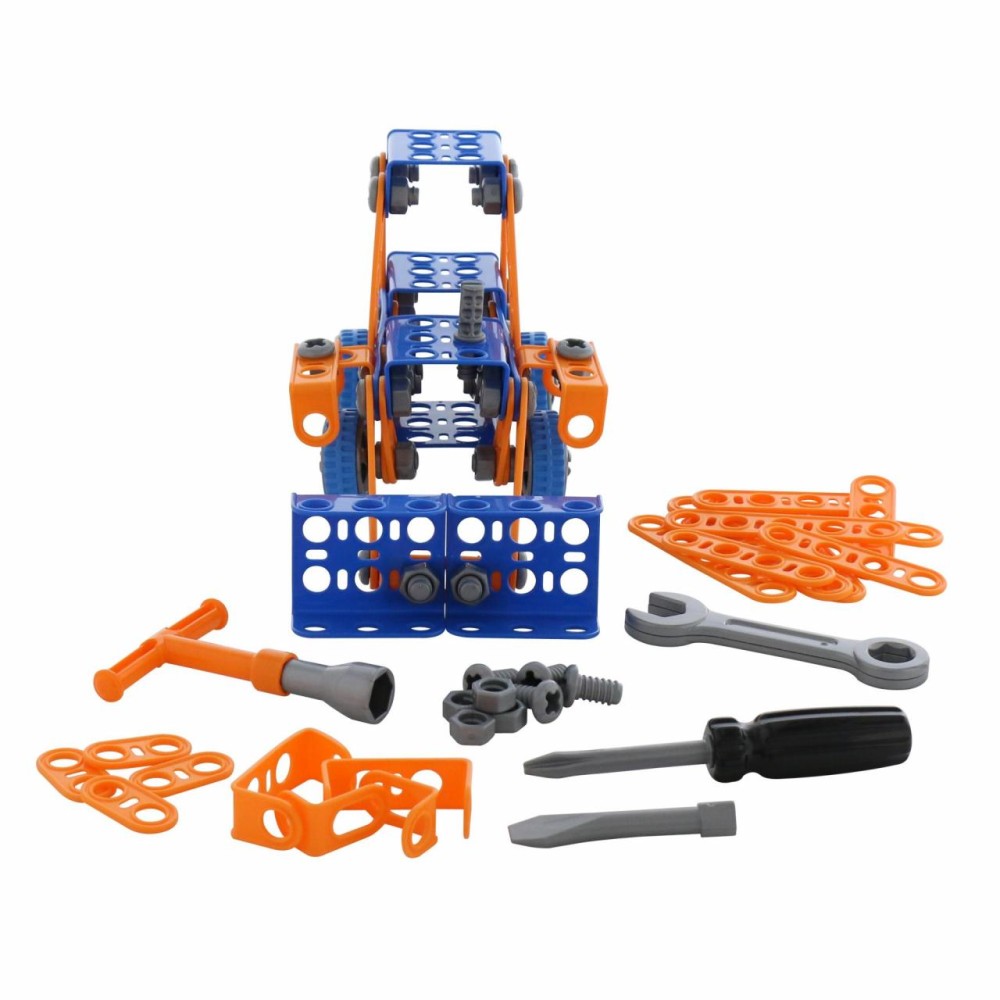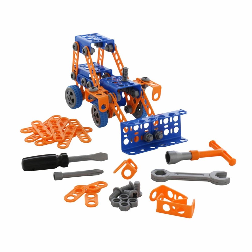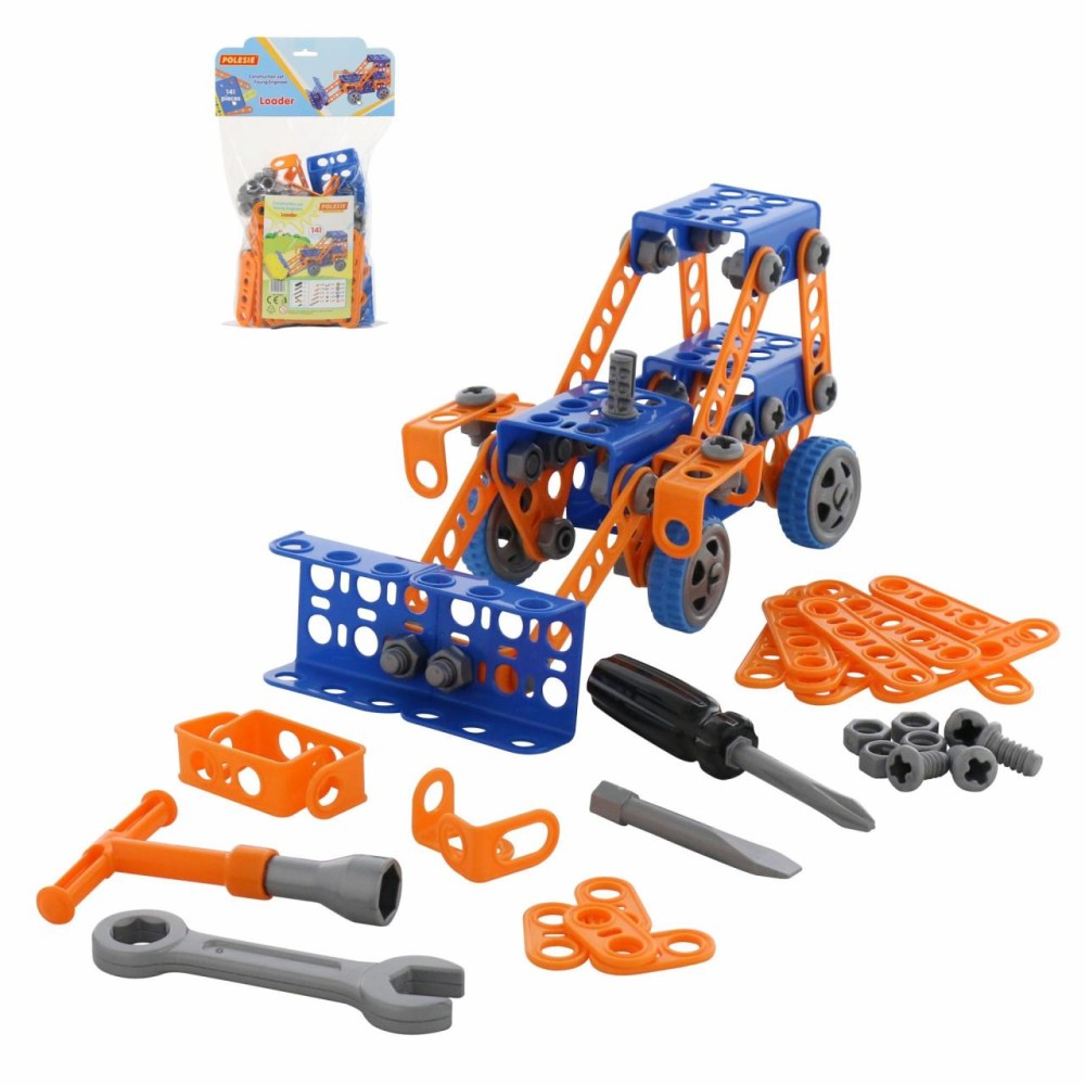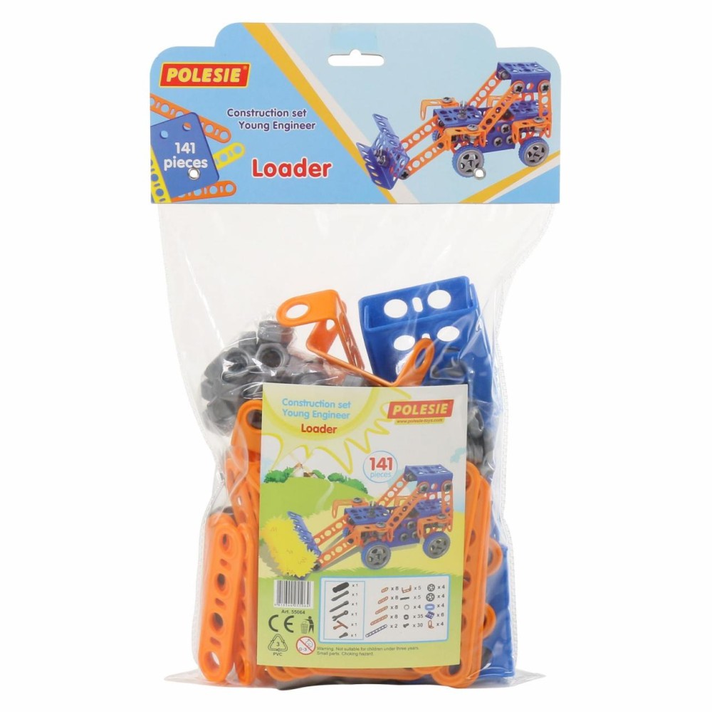 Конструктор «Изобретатель» — " Трактор-погрузчик № 1» (141 элемент) от фабрики «Полесье» отличается особым функционалом. Элементы выполнены в виде планок, пазы которых соединяются при помощи болтов и гаек. В комплект конструктора входят подробные инструкции, следуя которым можно собрать модели, представленные на упаковке игрушки. При этом ребёнок будет развивать усидчивость и внимание. Игра с данной серией конструкторов не ограничивается сборкой моделей по инструкции, дети всегда могут попробовать создать что-то новое, используя свою фантазию, пространственное и ассоциативное мышление. Игры с конструктором могут определить будущую профессию малыша, раскрыв в нём творческий потенциал. Все конструкторы серии «Изобретатель» совершенно разные, поэтому из них можно собрать целую коллекцию, которая превратится в творческую мастерскую Вашего ребёнка!