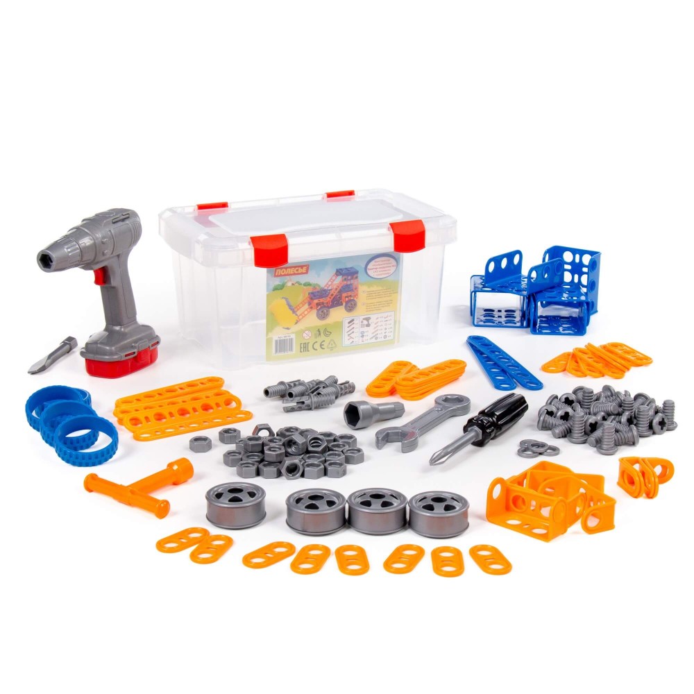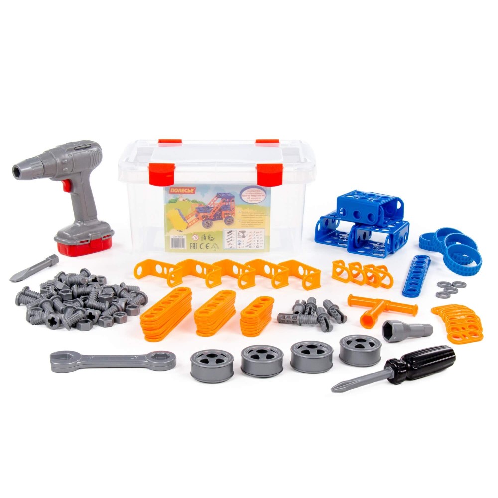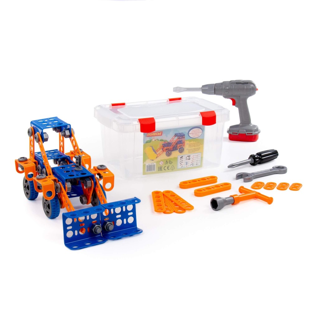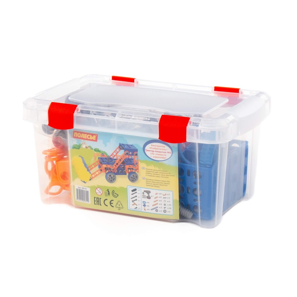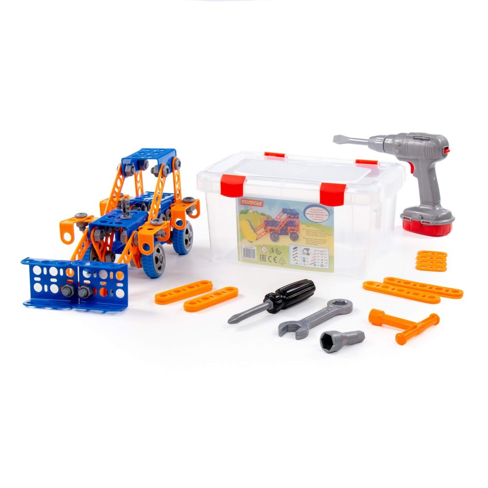 Конструктор "Изобретатель" - "Трактор-погрузчик №1" (142 элемента) + шуруповёрт (в контейнере)
