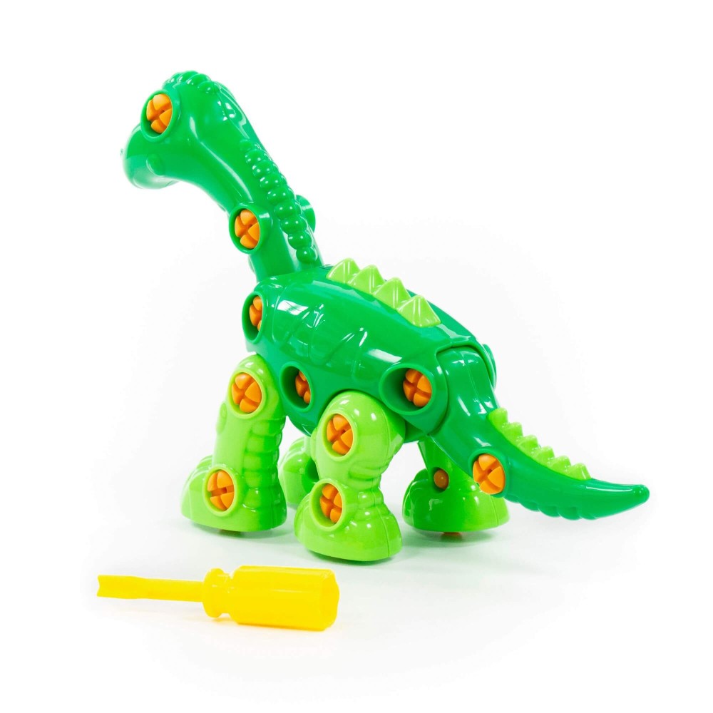 Фабрика «Полесье» предлагает детям стать маленькими палеонтологами и представляет серию конструкторов в виде динозавров. Мальчики и девочки познакомятся с "Тираннозавром", "Стегозавром", "Трицератопсом", "Диплодоком", "Велоцираптором". Игрушка выполнена в ярких цветах, из качественного материала, имеет округлую форму. Все элементы представлены в виде конструктора, который соединяется с помощью пластмассовых шурупов. В набор включена крестообразная отвёртка. Этот инструмент сделает игру интереснее и позволит разбирать\ собирать динозавров. Игра с таким конструктором знакомит ребёнка с древним миром животных. А также развивает фантазию, учит моделированию и конструированию.